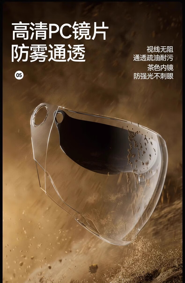 绿源(Luyuan)电动车头盔电瓶车3c认证摩托车头盔女男通用四季盔半盔防晒安全帽 卡其色-大眼精灵-透明短镜 【不带护耳】