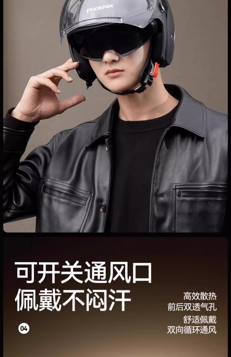 凤凰3C认证电动车头盔男女士电瓶摩托车安全帽四季通用冬季双镜新国标半盔 3C黑【高清双镜】新国标B类