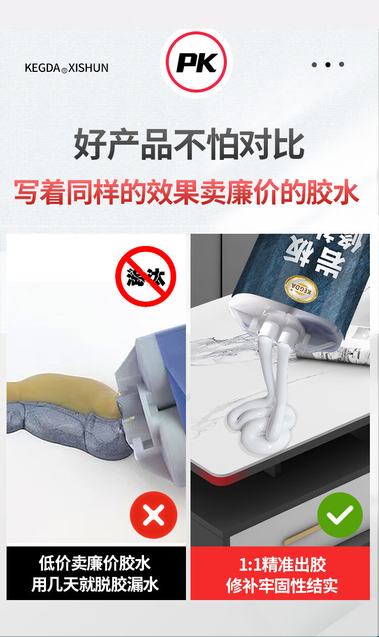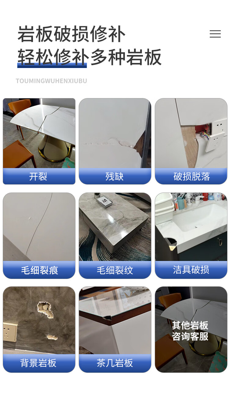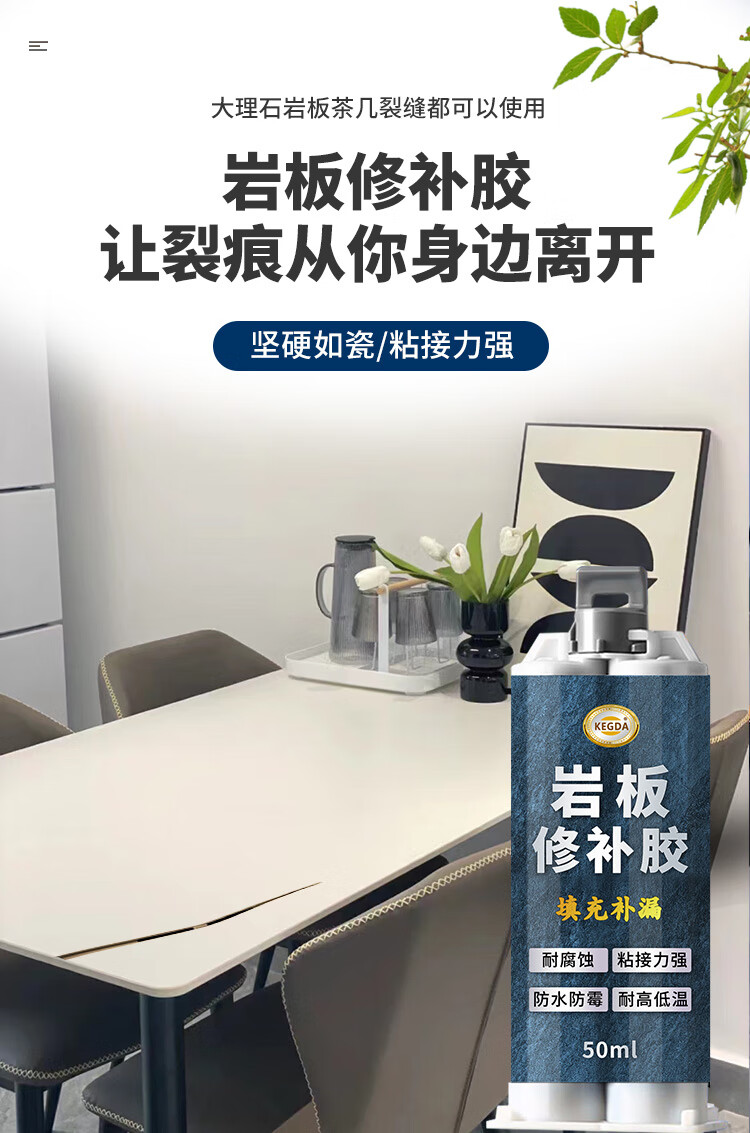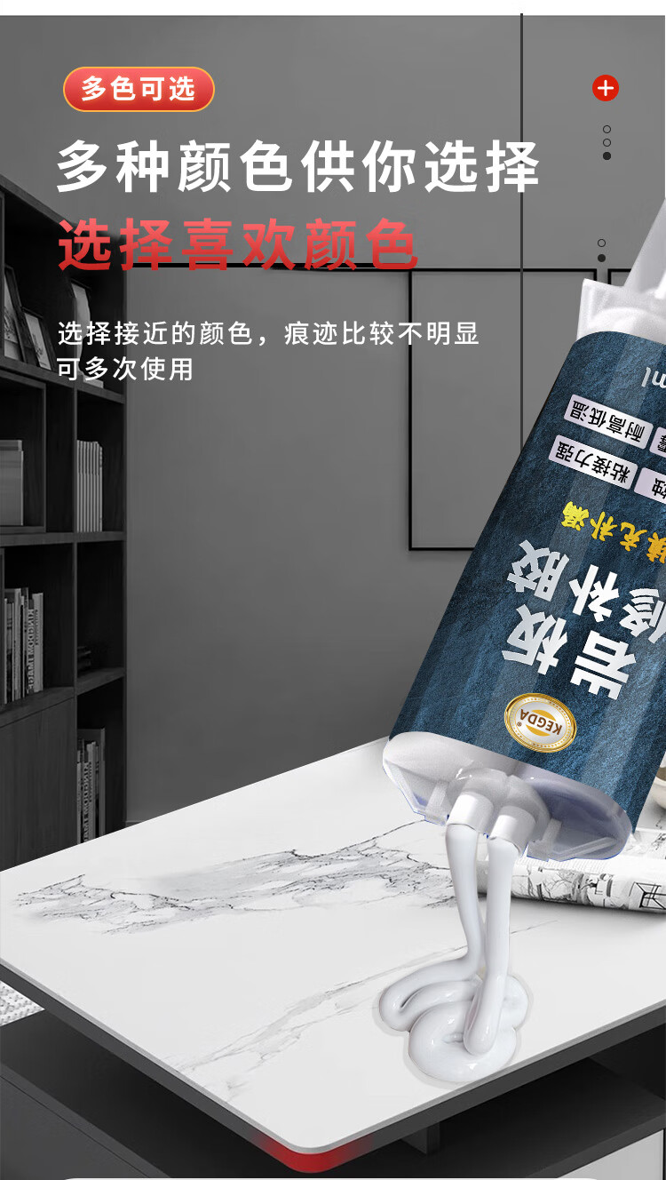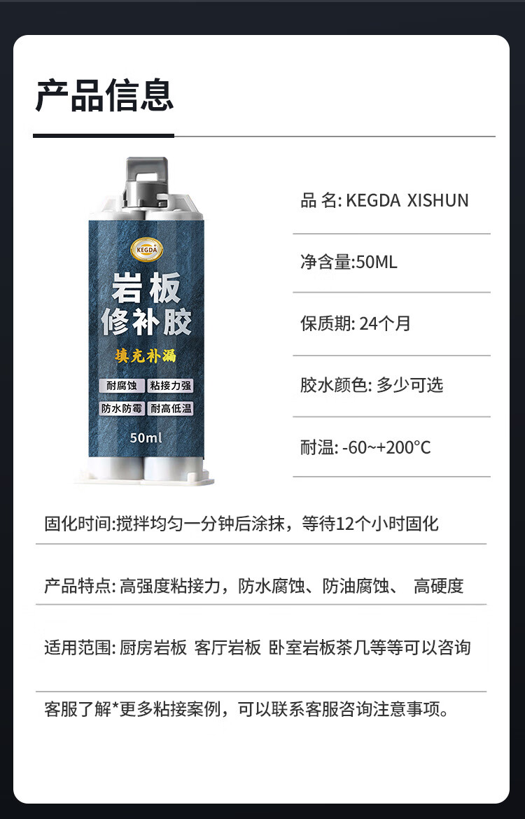 KEGDA岩板修补膏石英石台面裂缝修复茶几桌面坑洞石材补伤膏补缝专用胶 珍珠黑 1支装