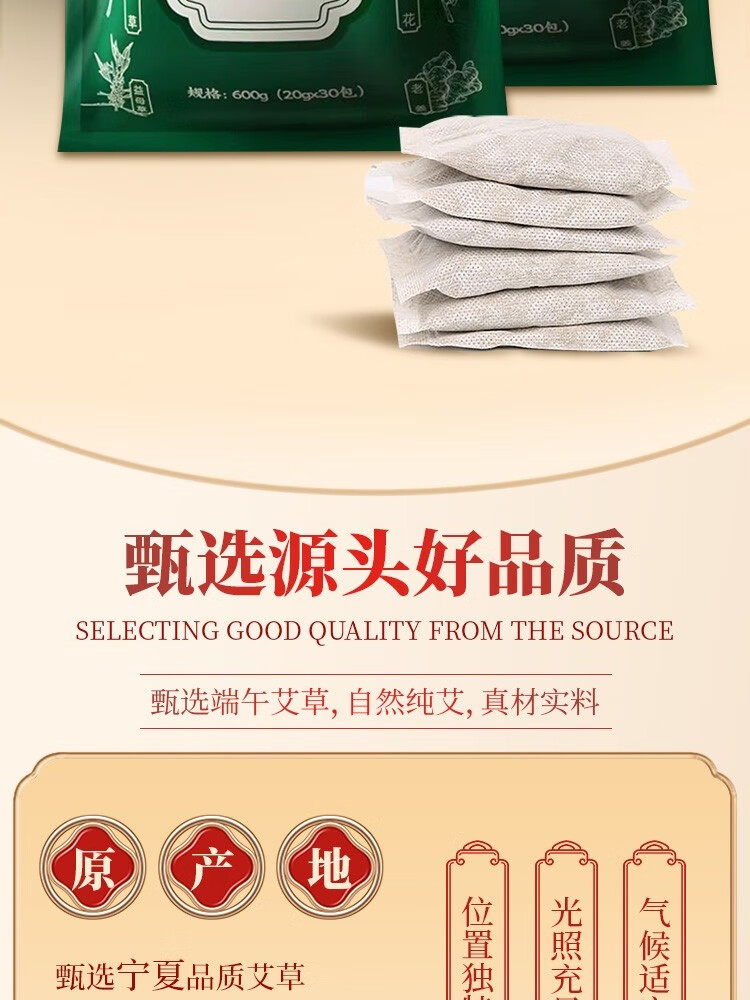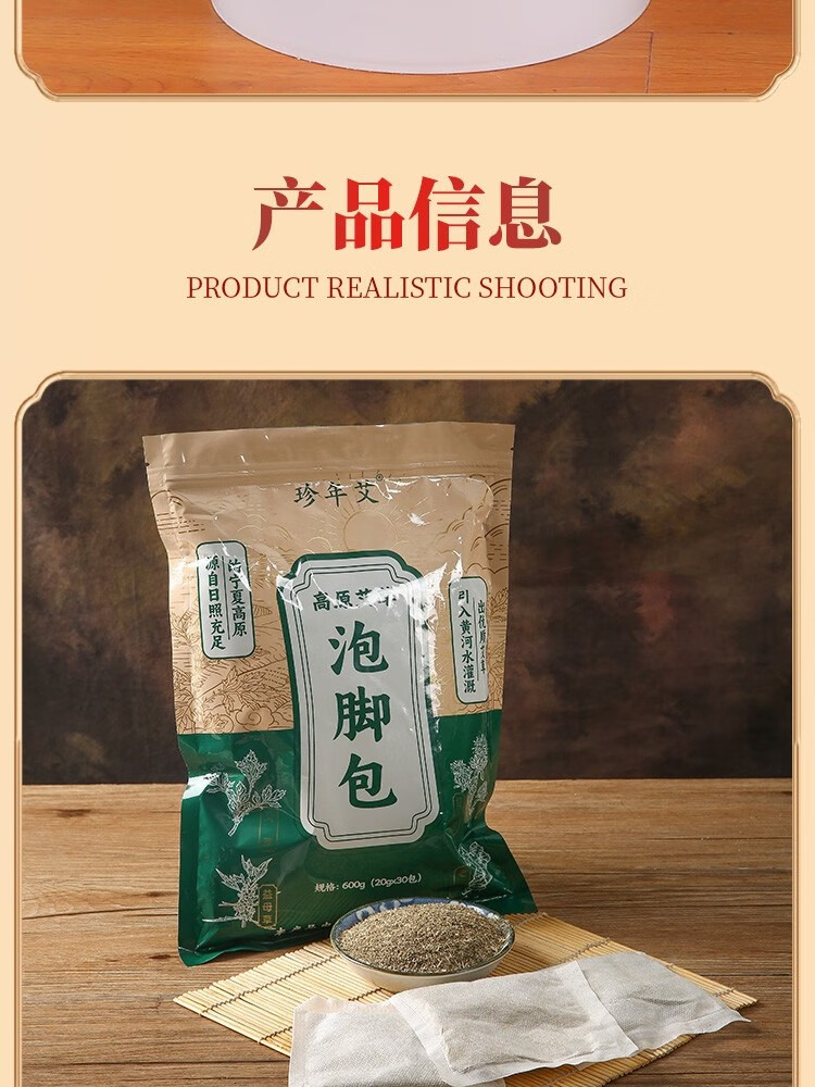 珍年艾艾草泡脚包足浴包湿生姜益母草红花寒沐浴泡澡包 高原艾草足浴包2袋100包(10克/包)