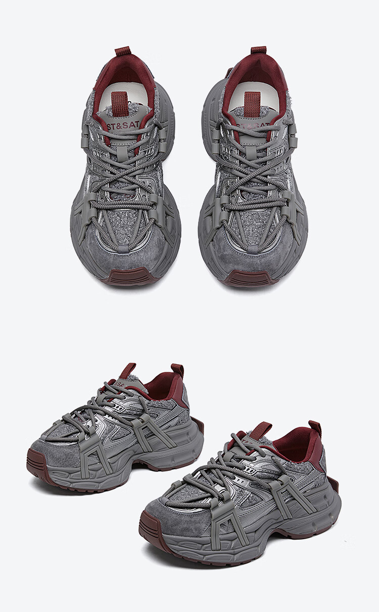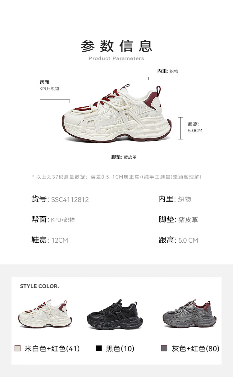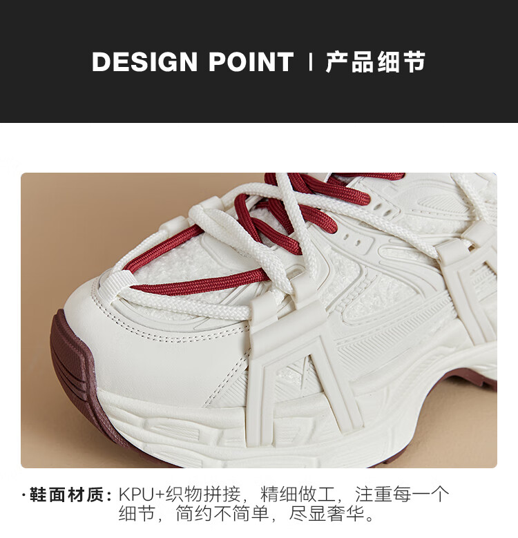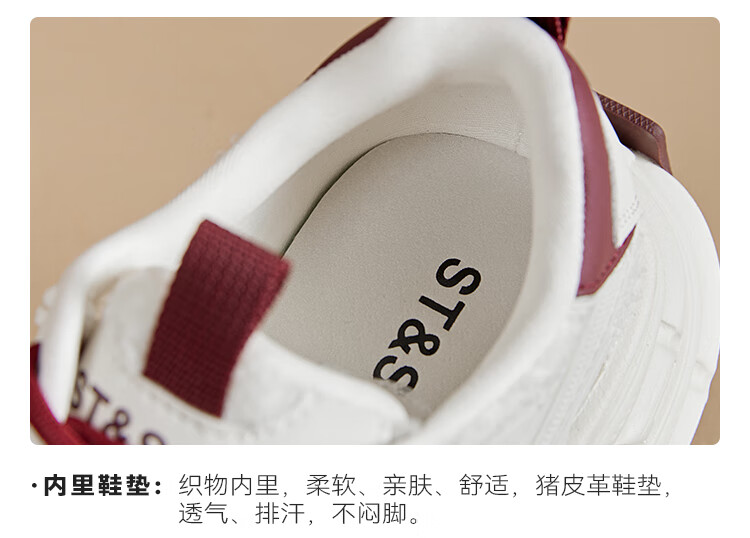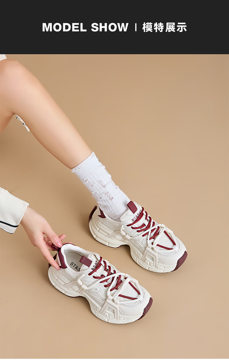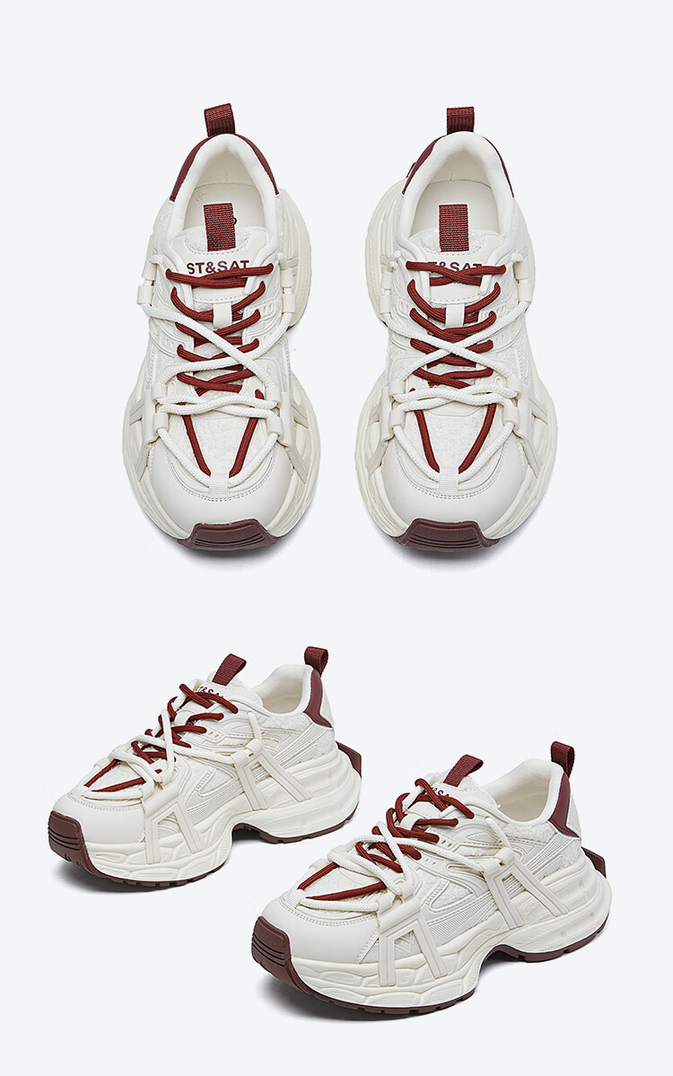 星期六(St&Sat)2025冬季新款复古拼色厚底老爹鞋百搭舒适休闲运动鞋跑步鞋子女鞋 米白色+红色 36