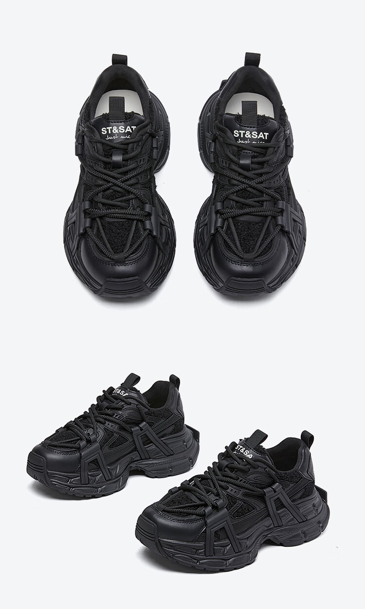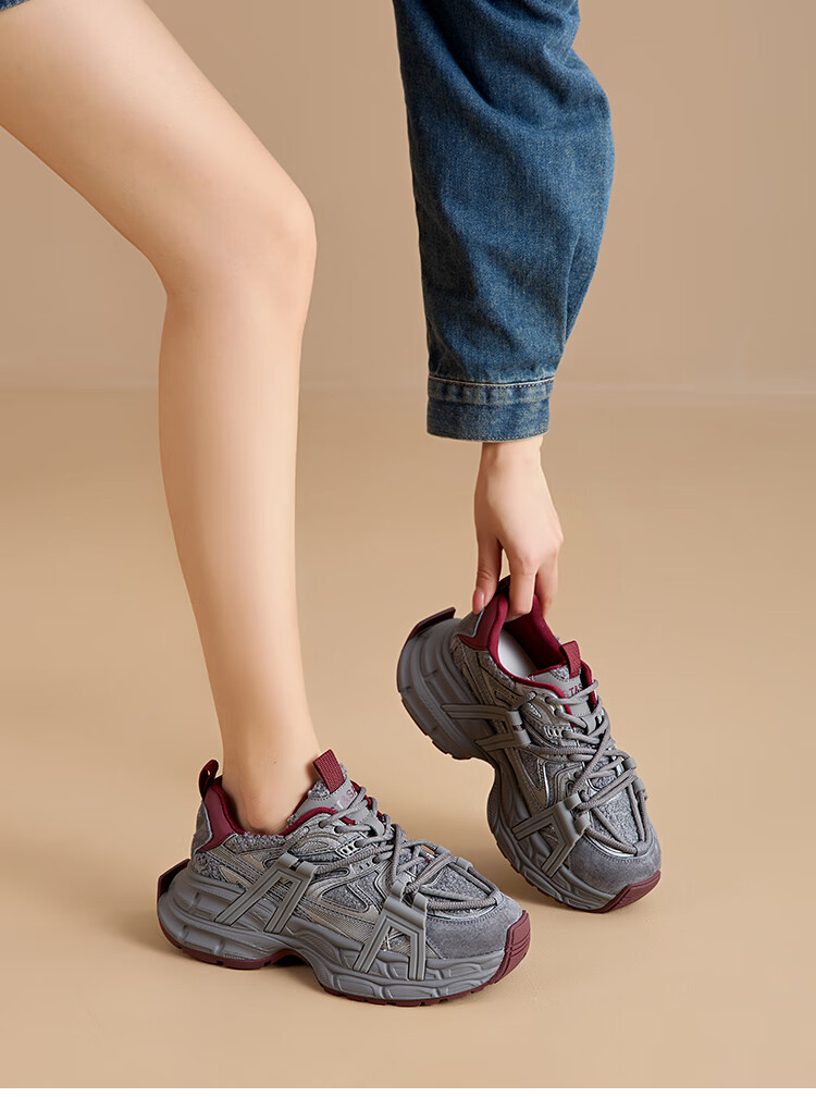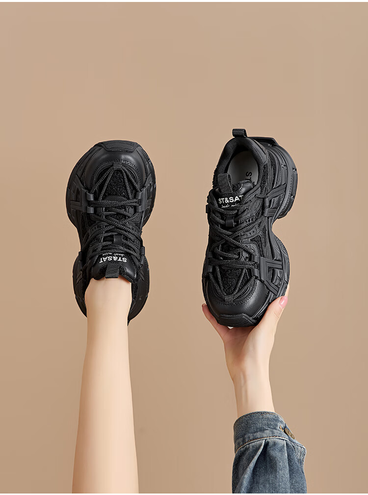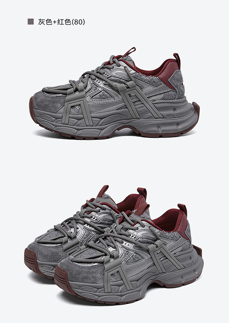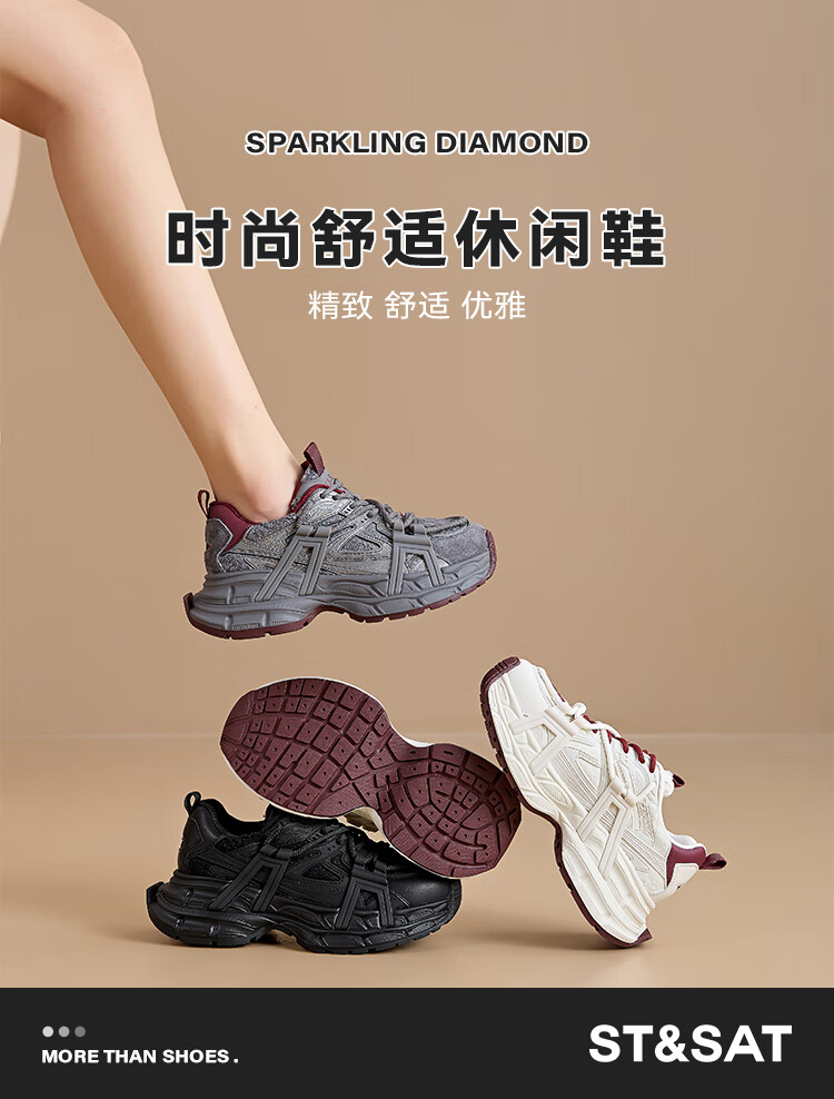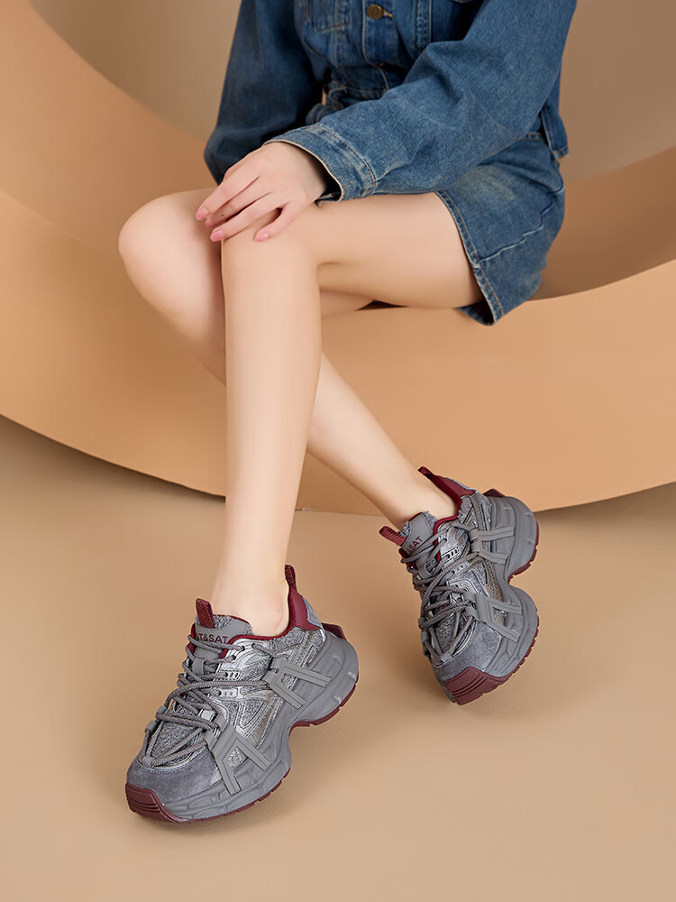 星期六(St&Sat)2025冬季新款复古拼色厚底老爹鞋百搭舒适休闲运动鞋跑步鞋子女鞋 米白色+红色 36