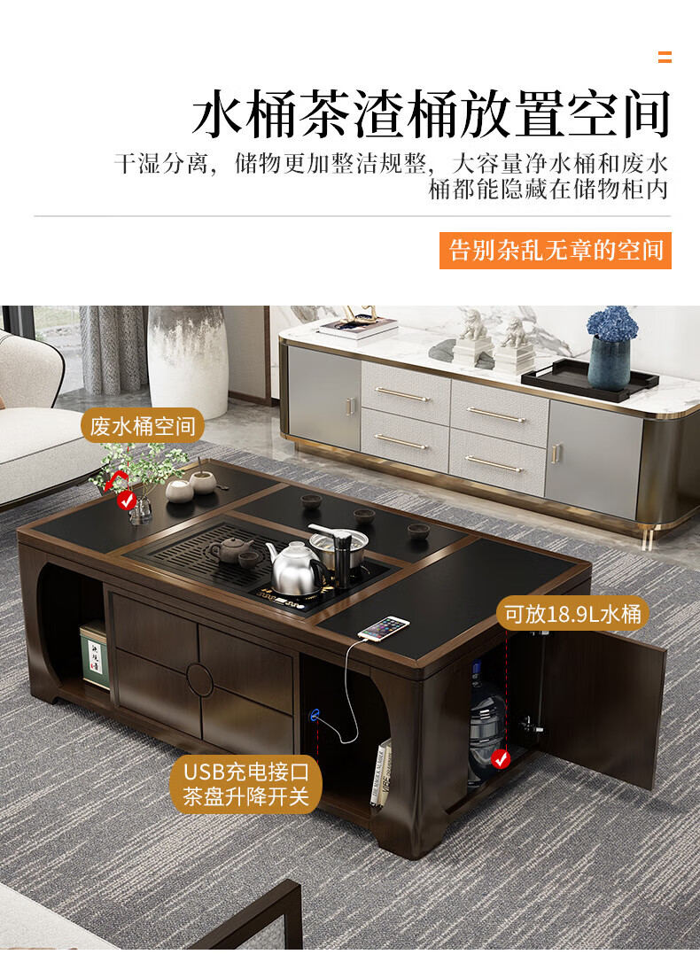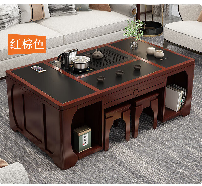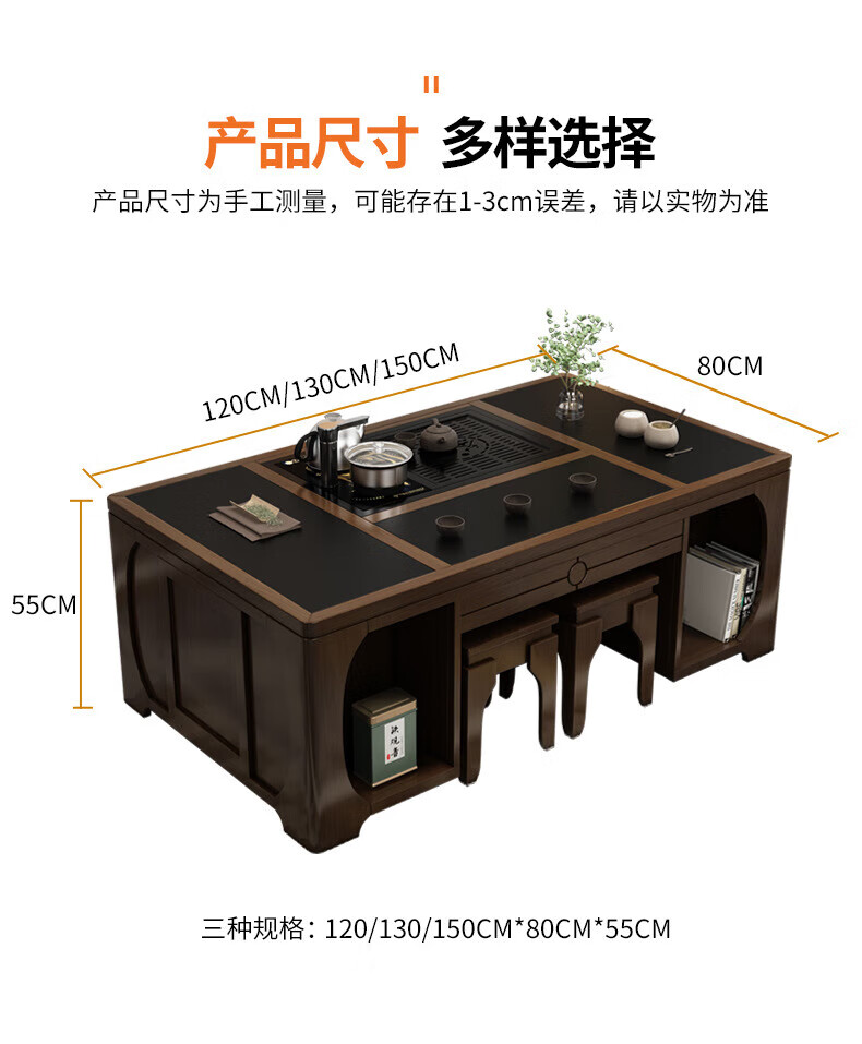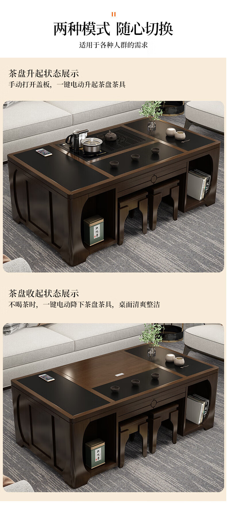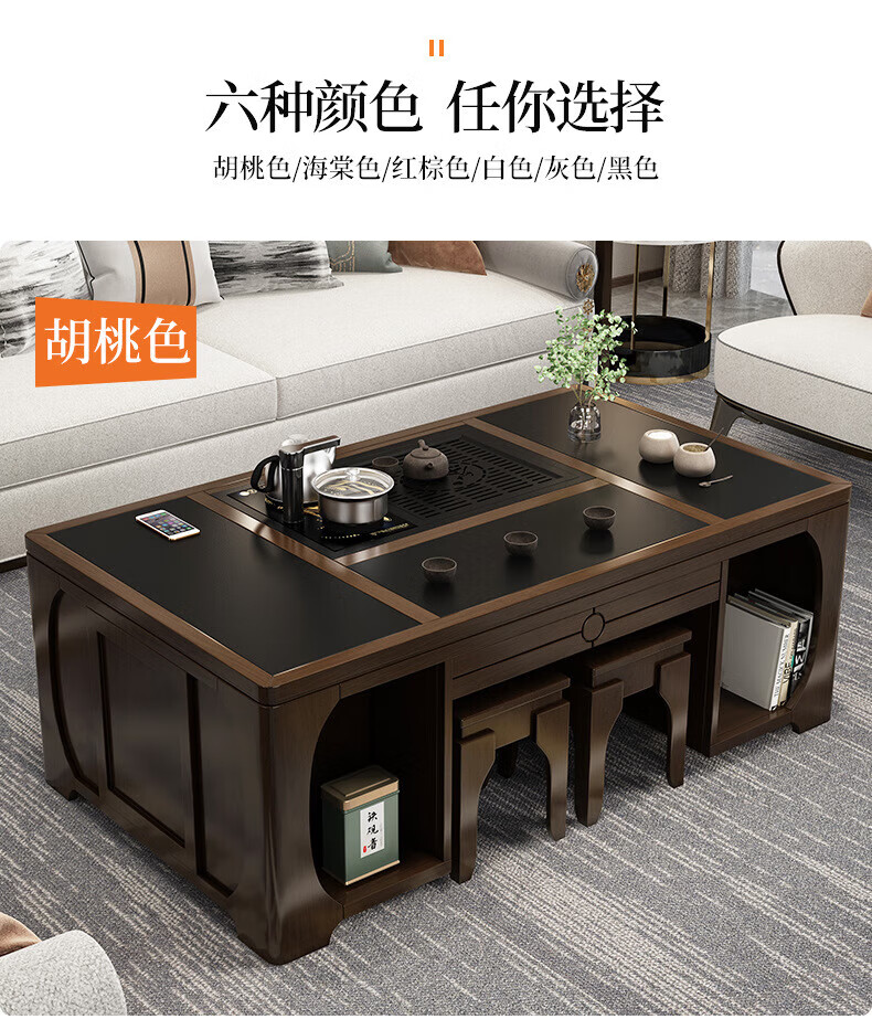 百裕达全自动智能升降功夫茶几客厅餐桌两用多功能泡茶桌办公室茶台一体 胡桃色150-80-55