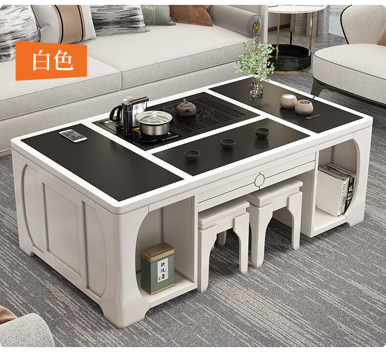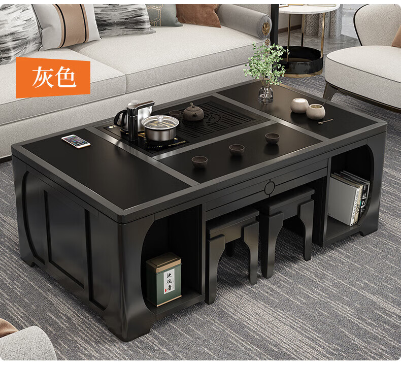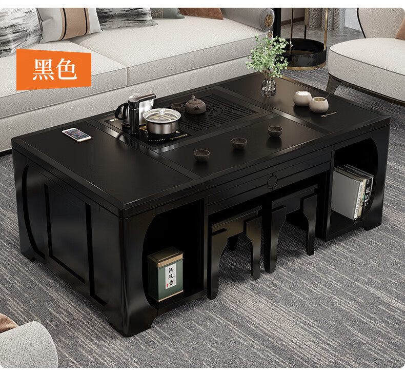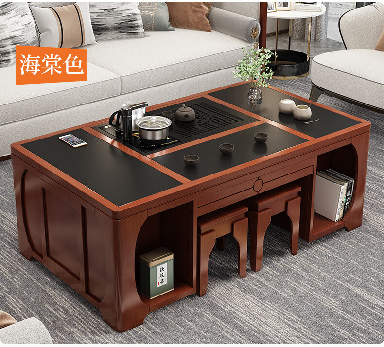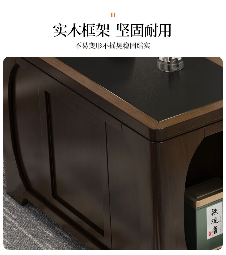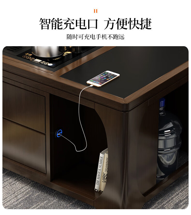 百裕达全自动智能升降功夫茶几客厅餐桌两用多功能泡茶桌办公室茶台一体 胡桃色150-80-55