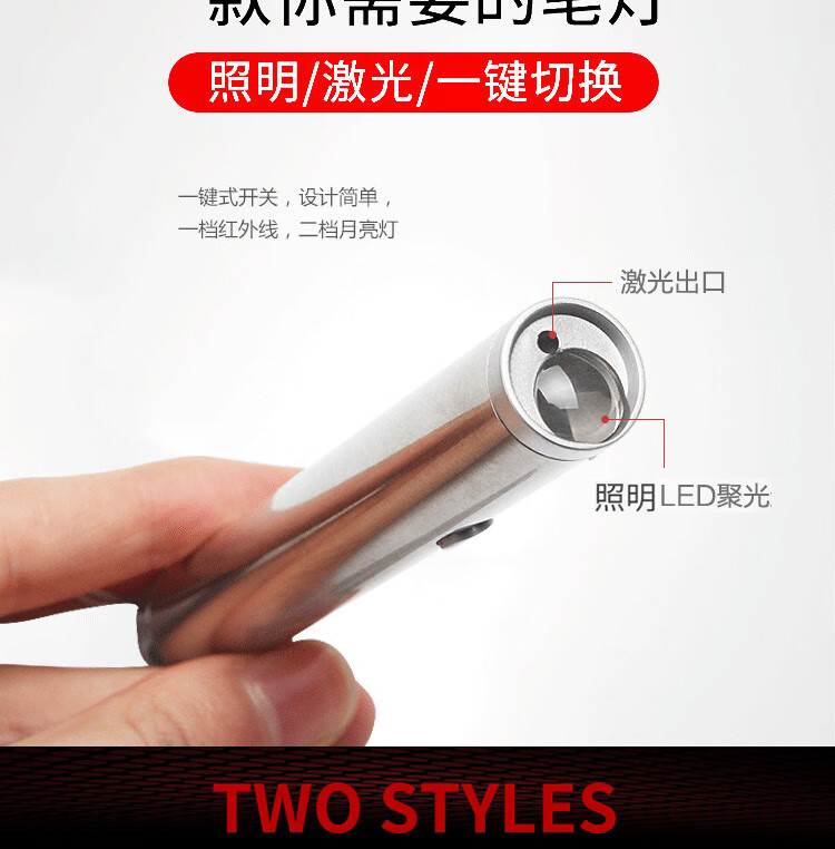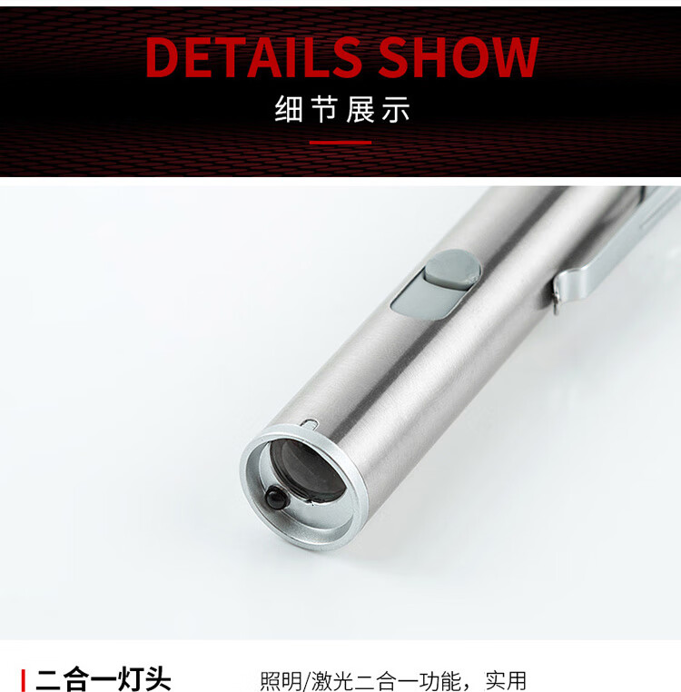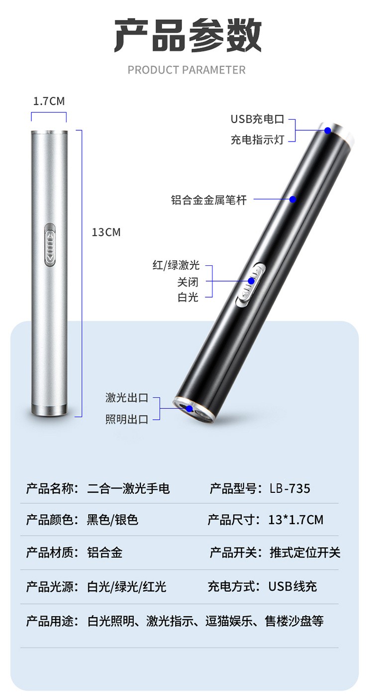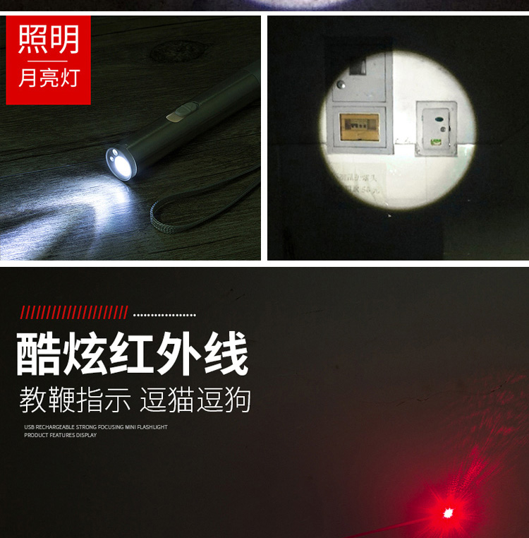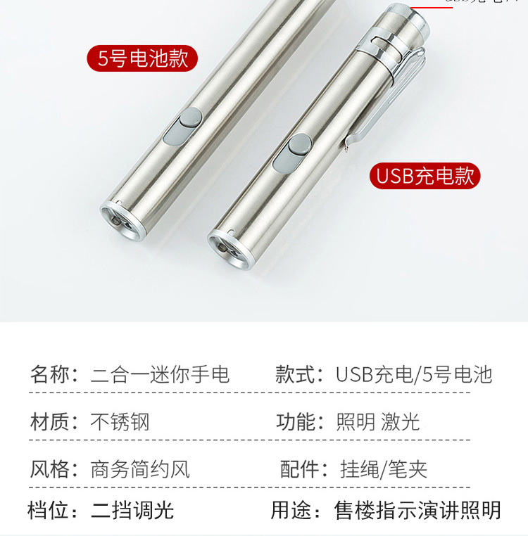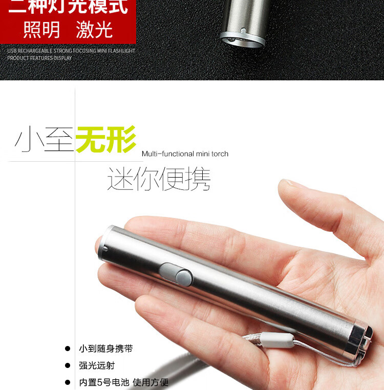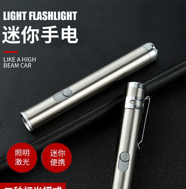 雷佰 红外线激光笔迷你USB充电逗狗猫棒售楼指示射笔二合一照明白光灯 红激光+白光【USB充电版】
