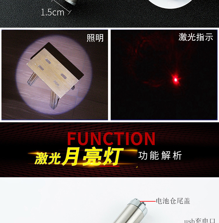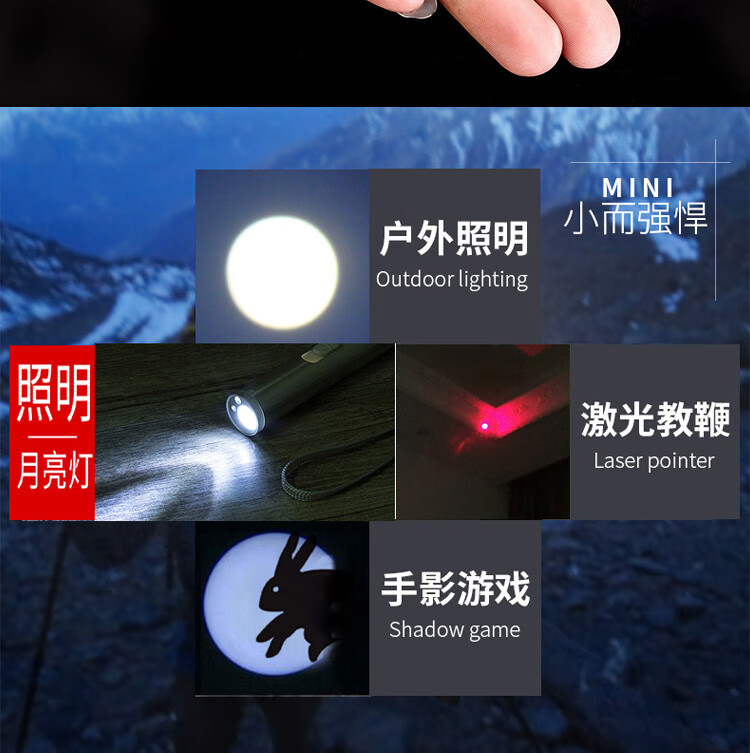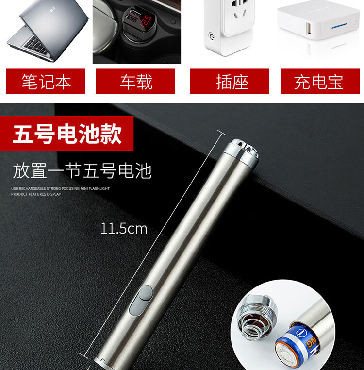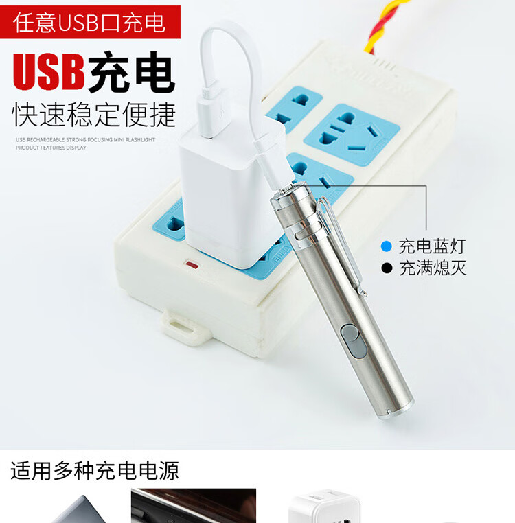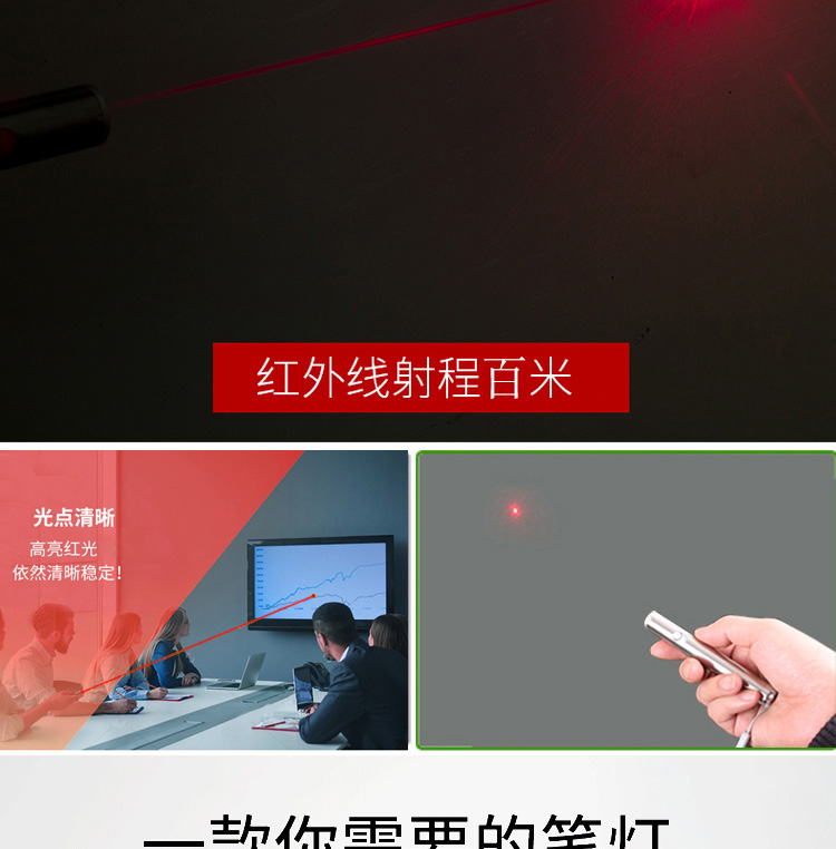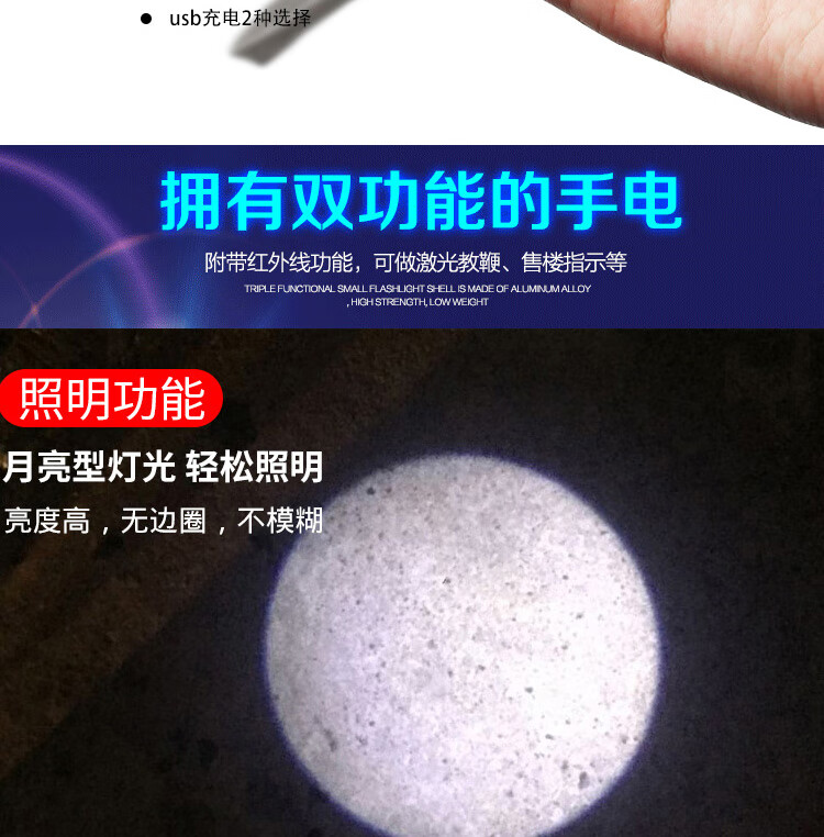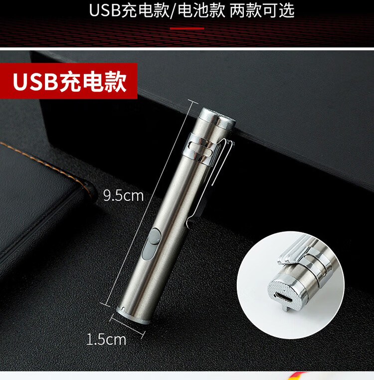 雷佰 红外线激光笔迷你USB充电逗狗猫棒售楼指示射笔二合一照明白光灯 红激光+白光【USB充电版】