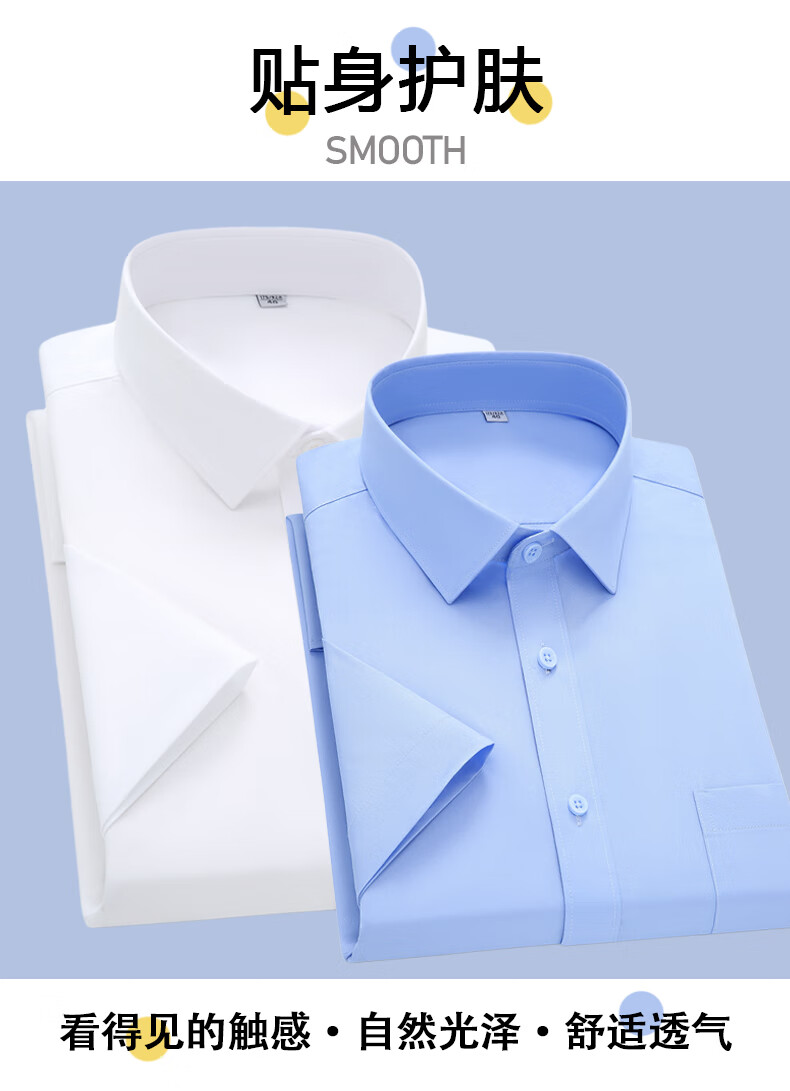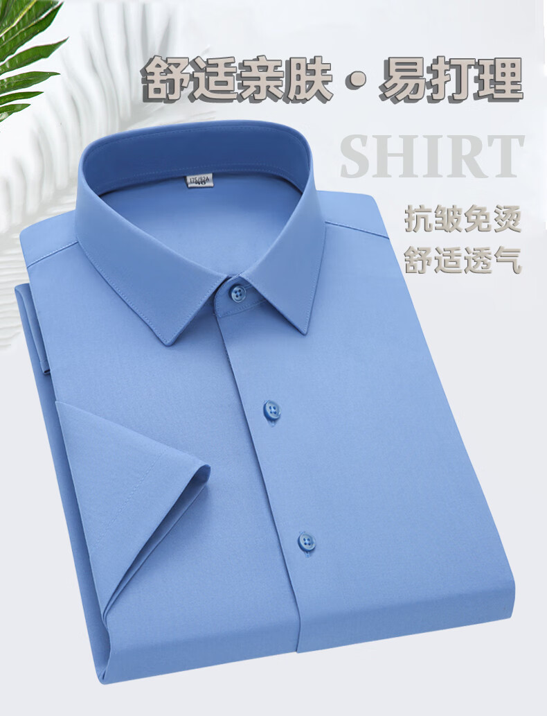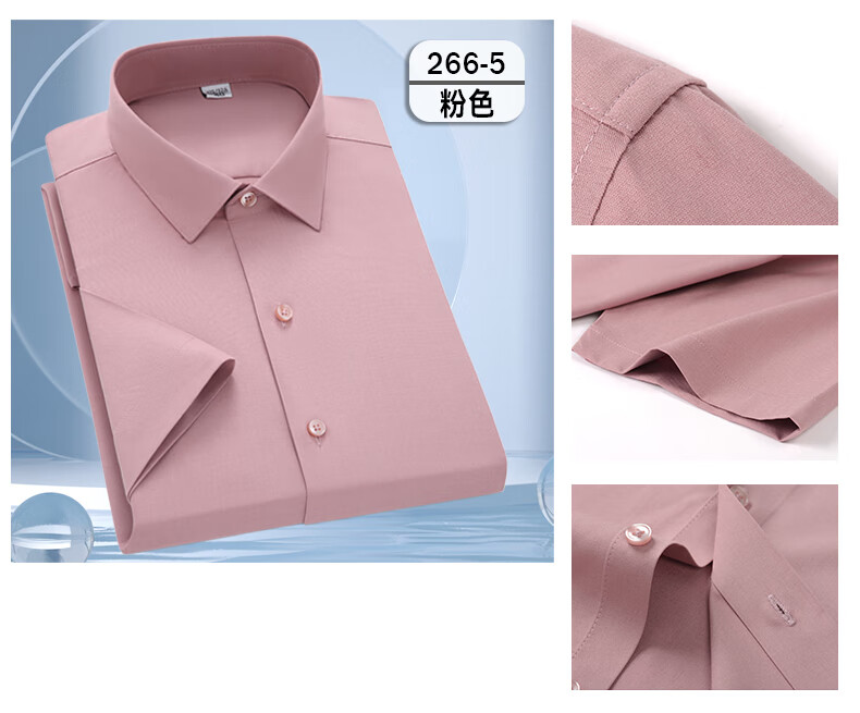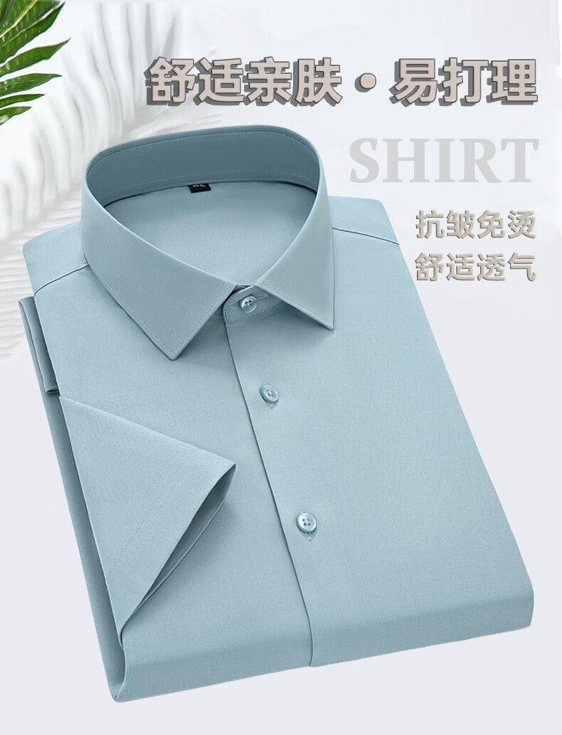 乔亚意大利轻奢品牌男装2025夏季纯色职业正装男士短袖衬衫商务男衬衣 2168-6粉色【亲肤抗皱免烫】 44 码 【建议190-200斤】