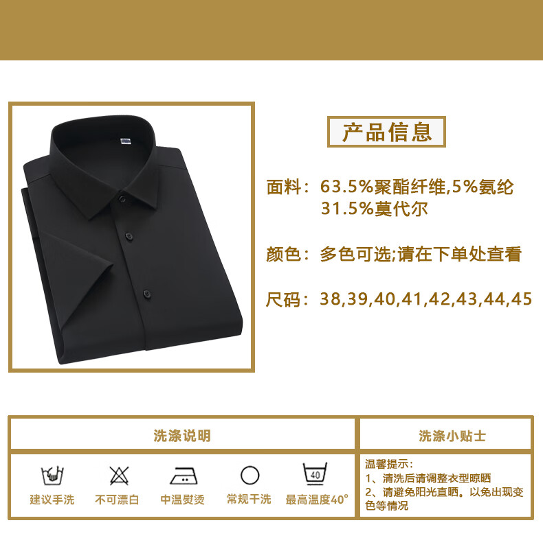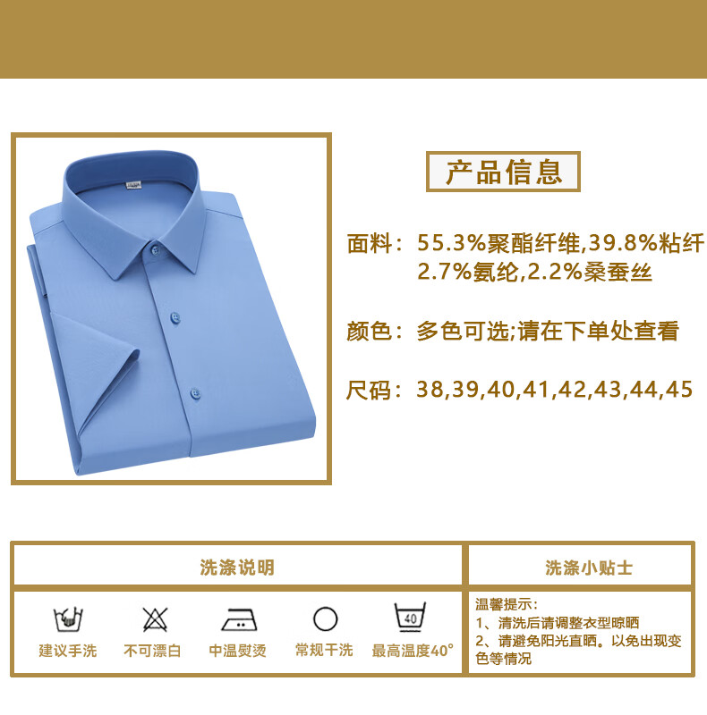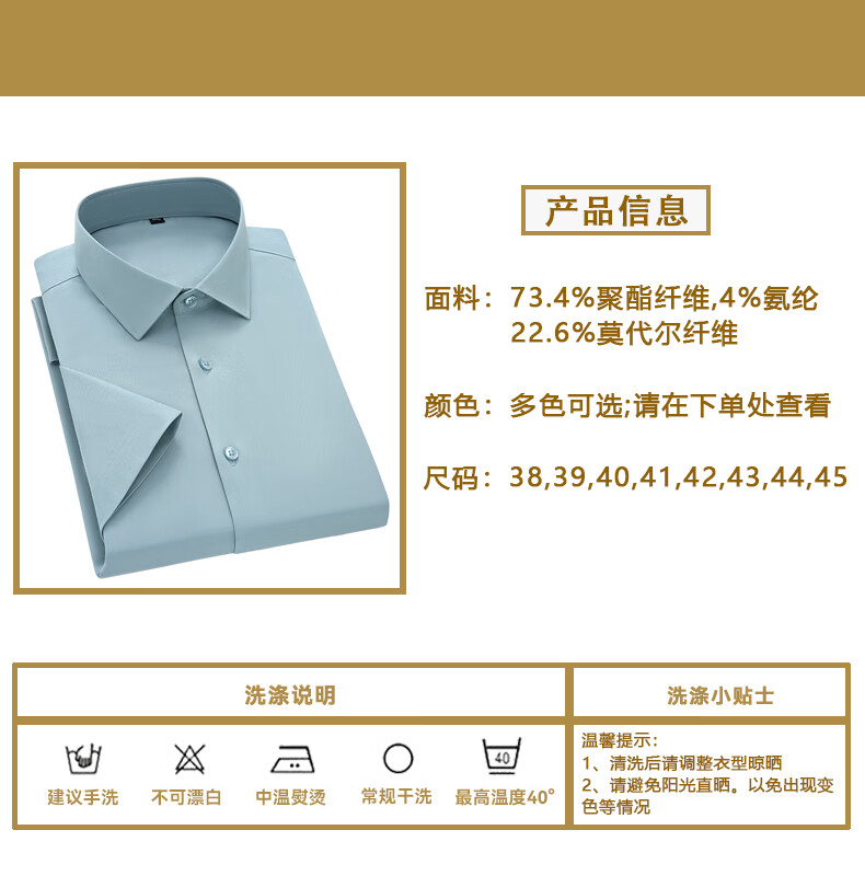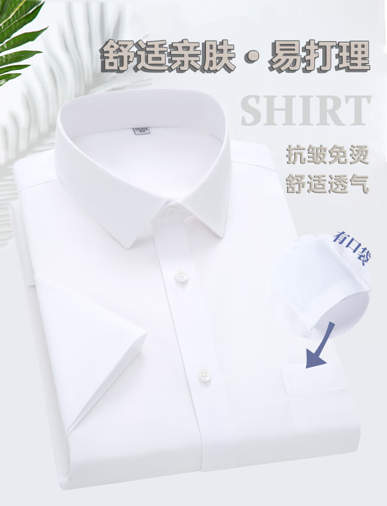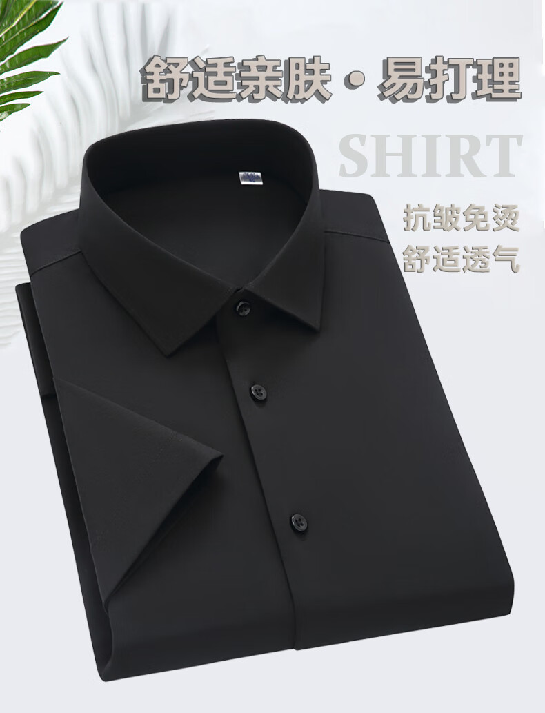 乔亚意大利轻奢品牌男装2025夏季纯色职业正装男士短袖衬衫商务男衬衣 2168-6粉色【亲肤抗皱免烫】 44 码 【建议190-200斤】