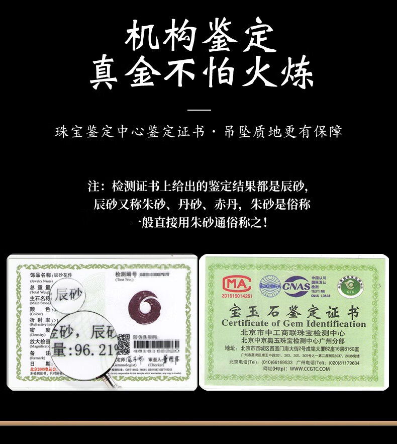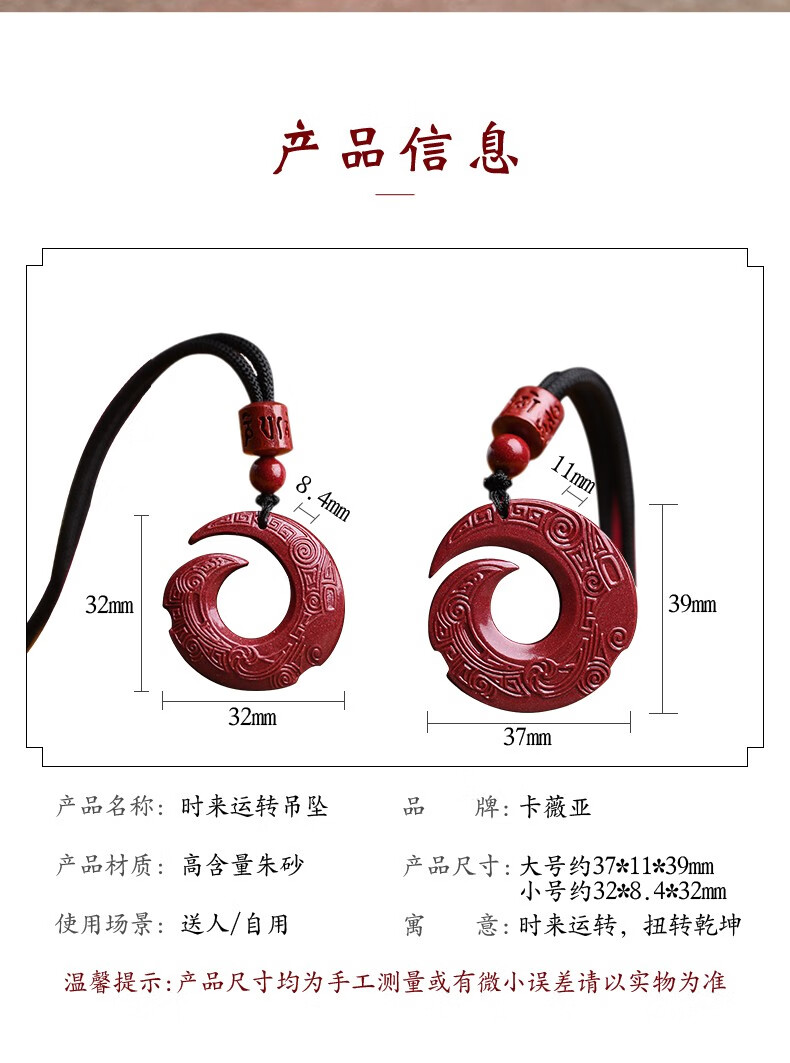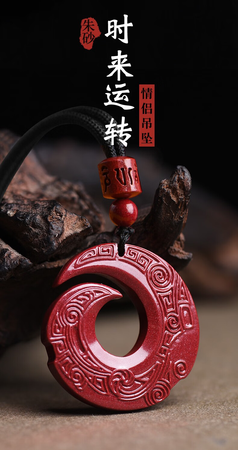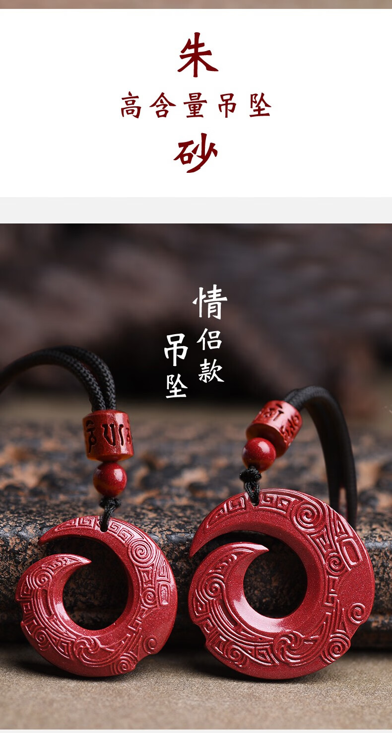 卡薇亚朱砂吊坠男时来运转情侣款紫金砂项链女本命年饰品生日情人节礼物 一大一小情侣款