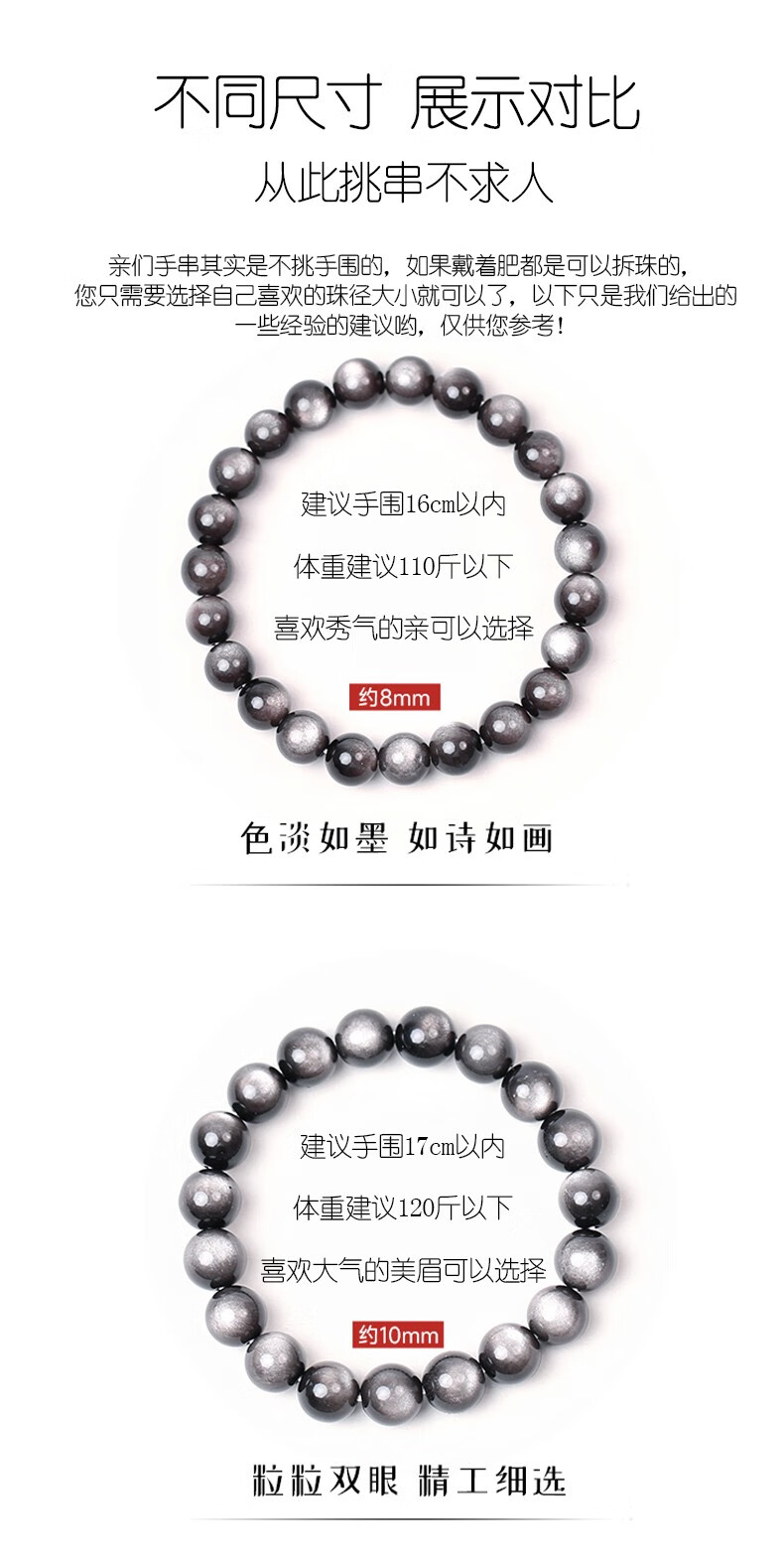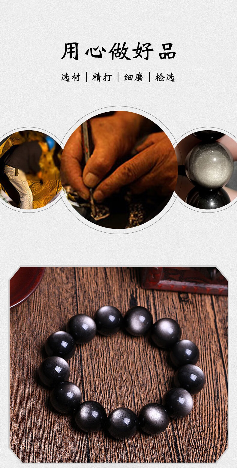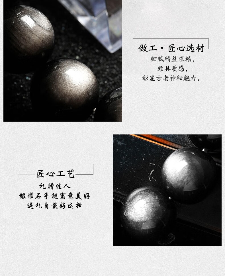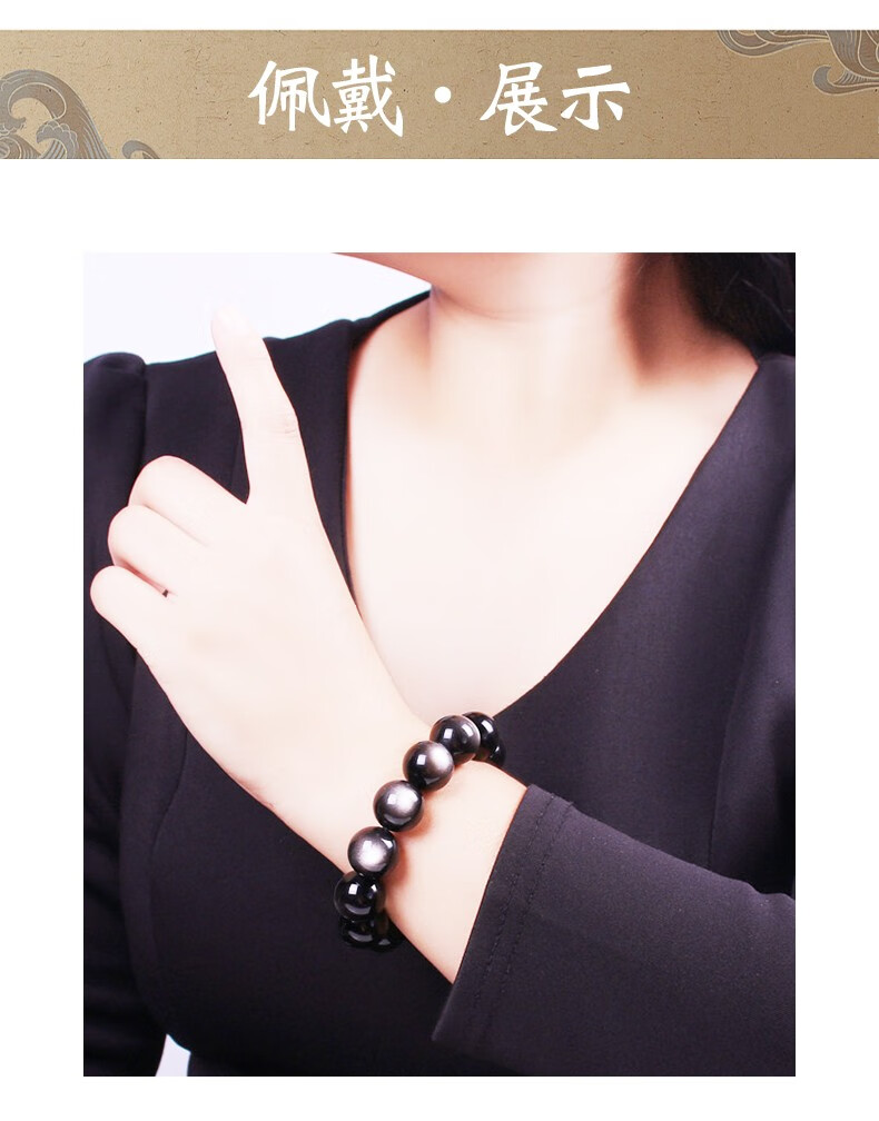 卡薇亚天然银曜石手串男女士情侣款黑曜石手链配证书上岸水晶情人节礼物 珠径16mm左右(建议男款)