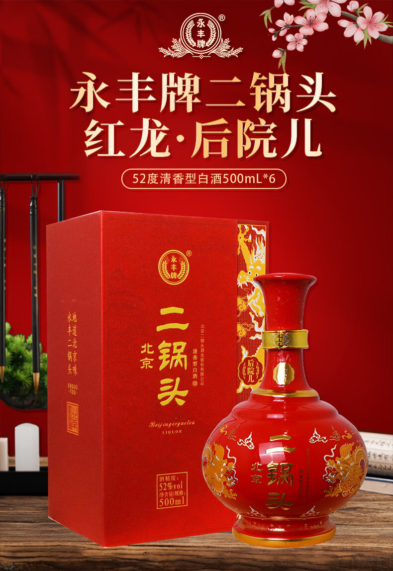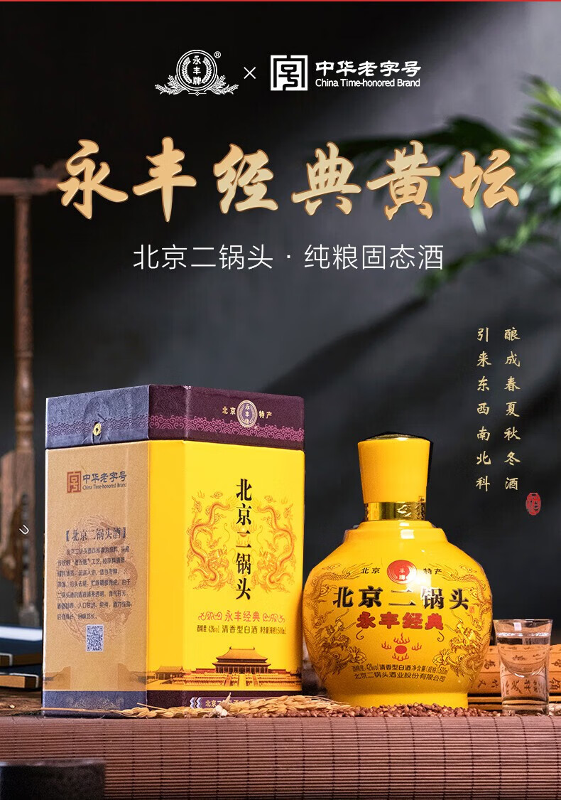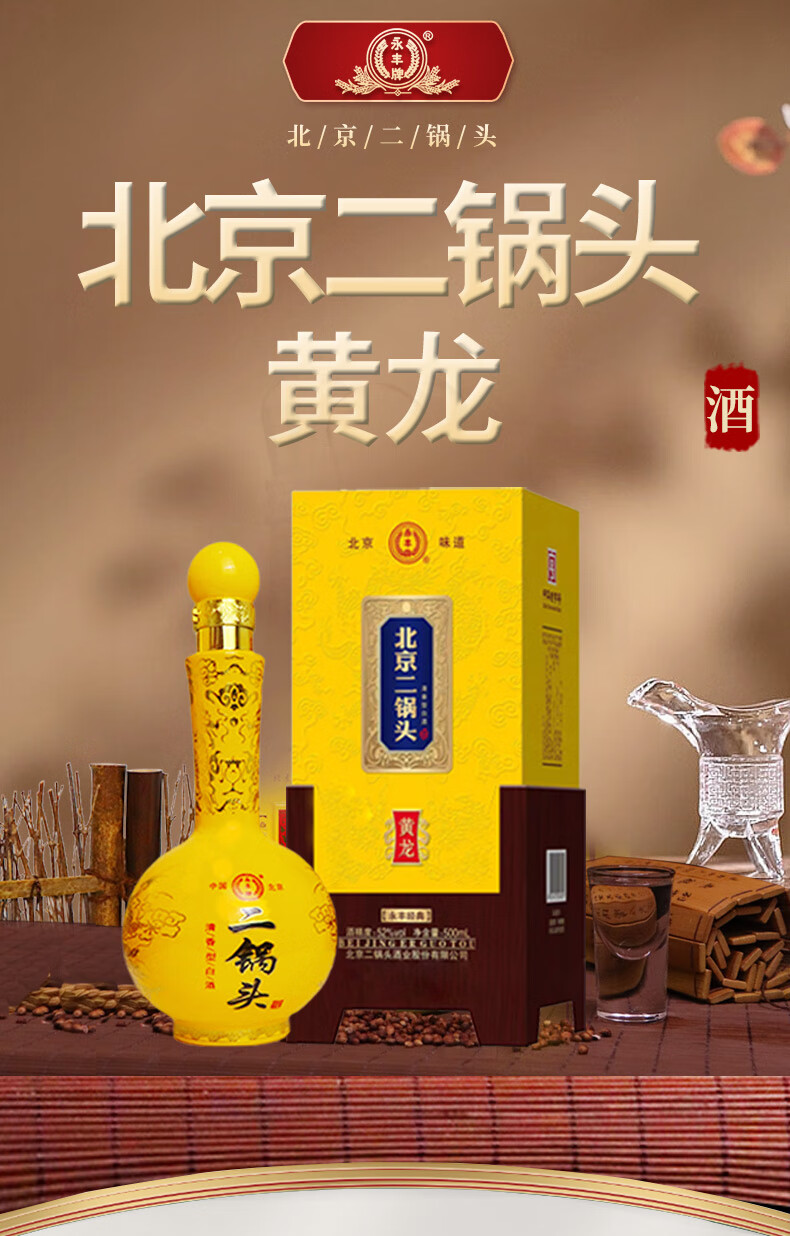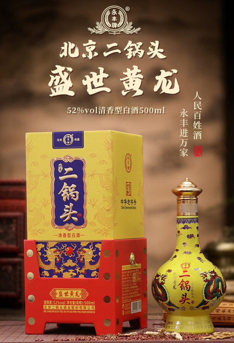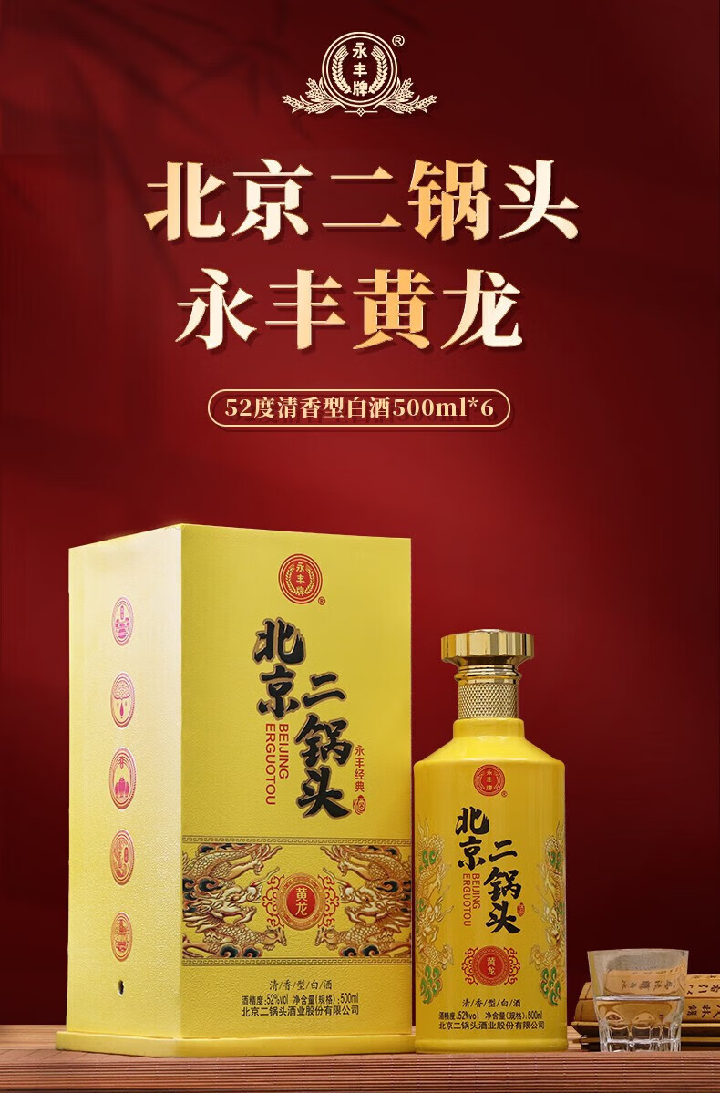 永丰牌北京二锅头永丰牌 清香型白酒 粮食酒 礼盒装 节日礼品 52度 500mL 2瓶 黄龙