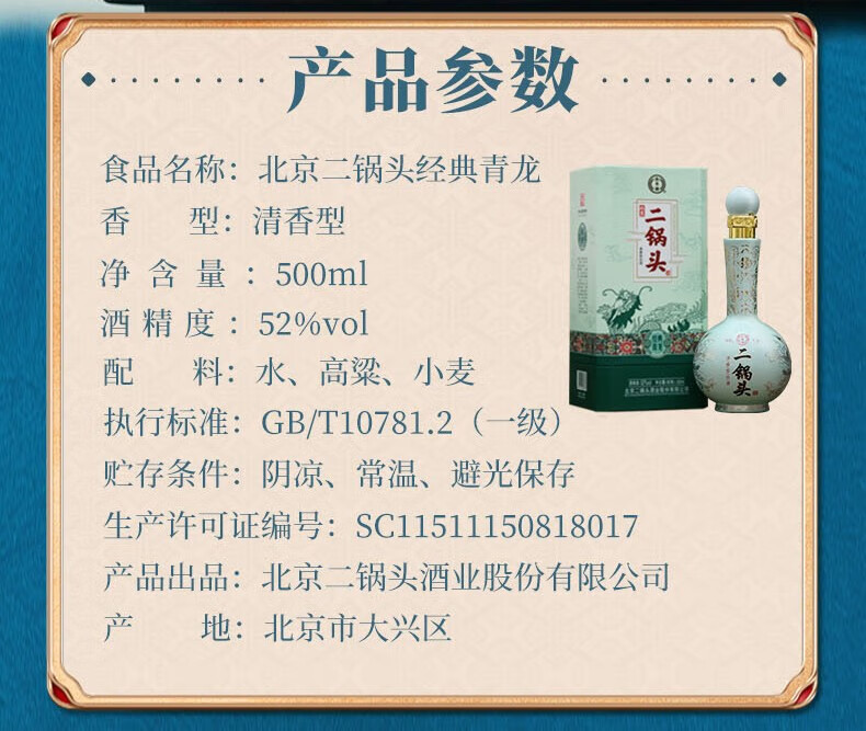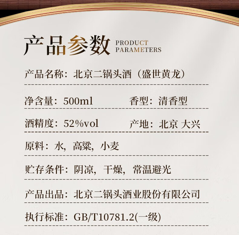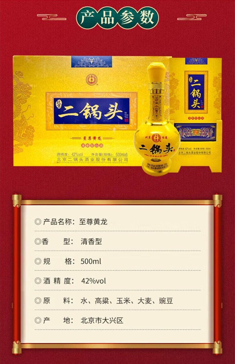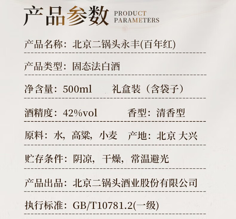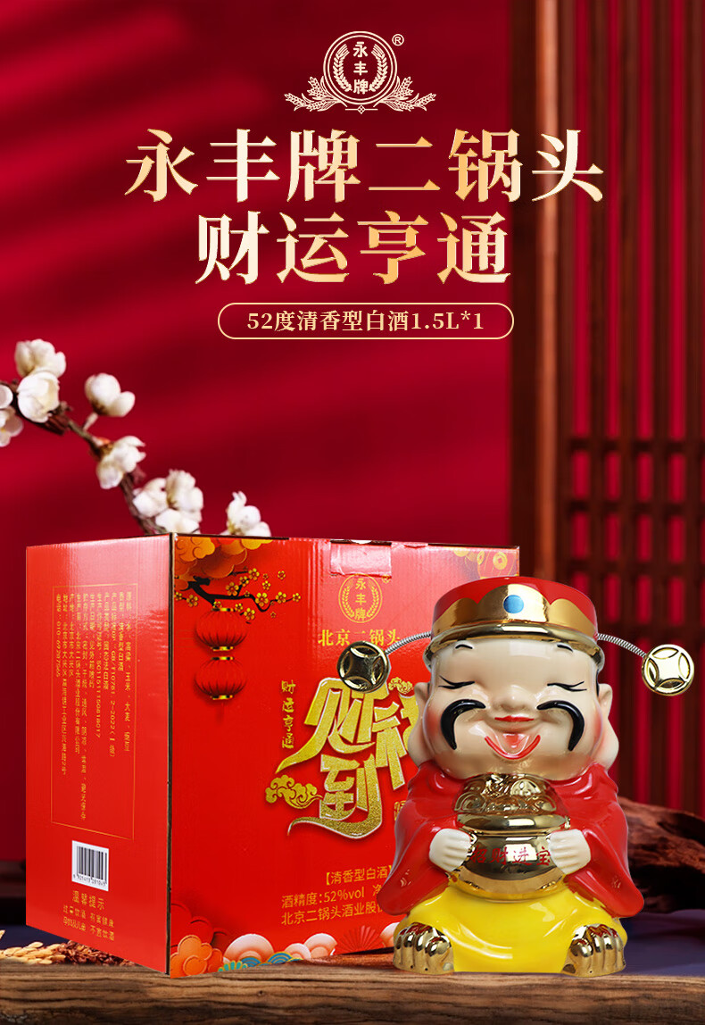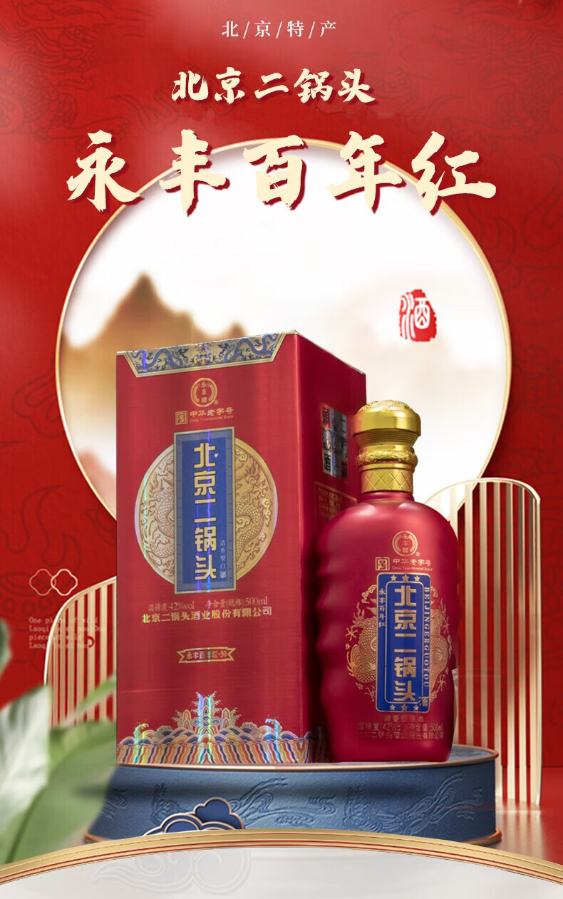 永丰牌北京二锅头永丰牌 清香型白酒 粮食酒 礼盒装 节日礼品 52度 500mL 2瓶 黄龙