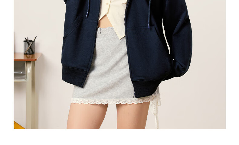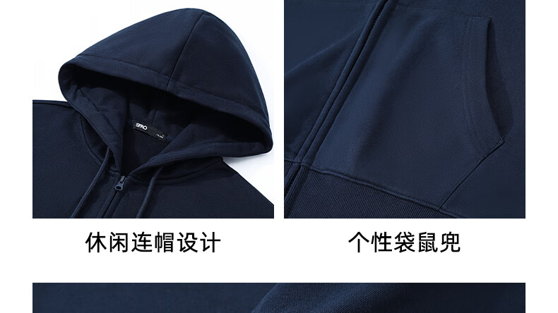 SPAO韩国同款连帽外套男女同款春秋季新款日系通勤风卫衣SPWY25SS08LD 藏青#SP复古徽章 XL