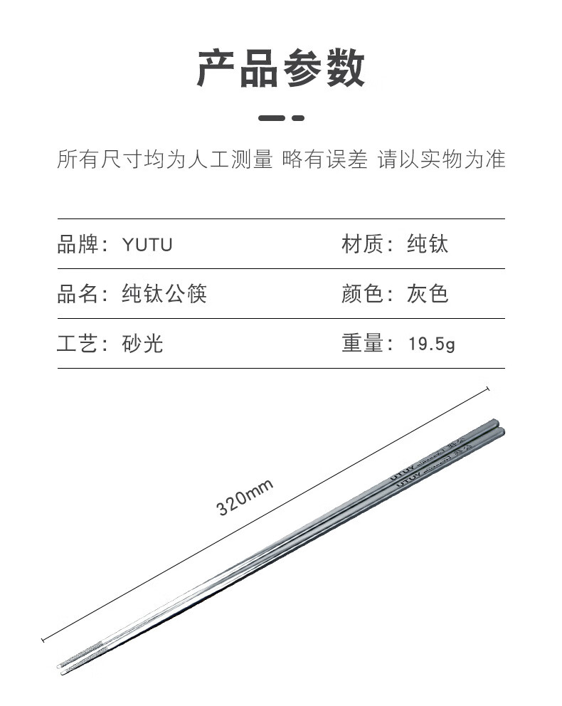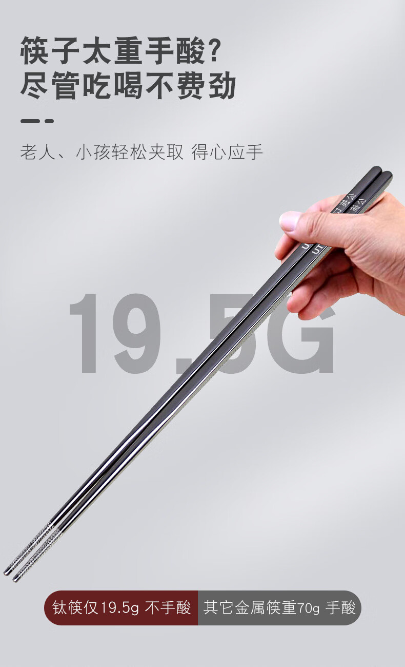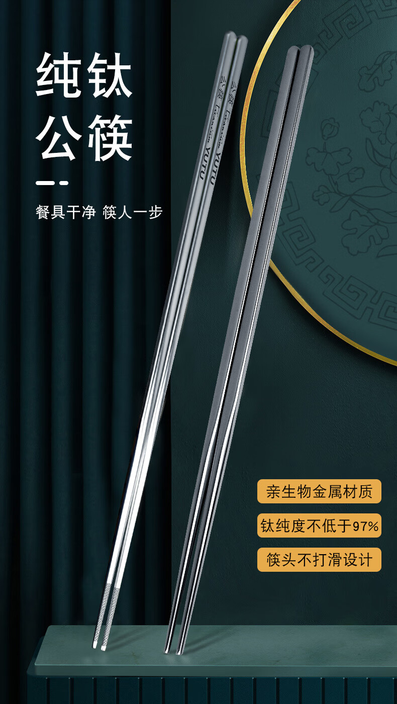 胖東来品质纯钛公筷超轻加长TA1酒店餐厅分餐筷子户外野营火锅油 纯钛公筷32厘米(经典灰)