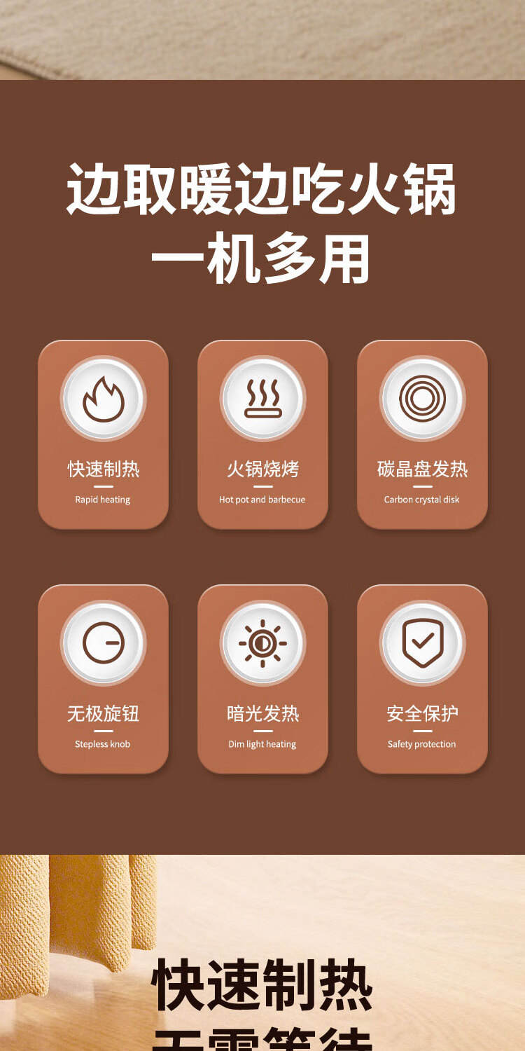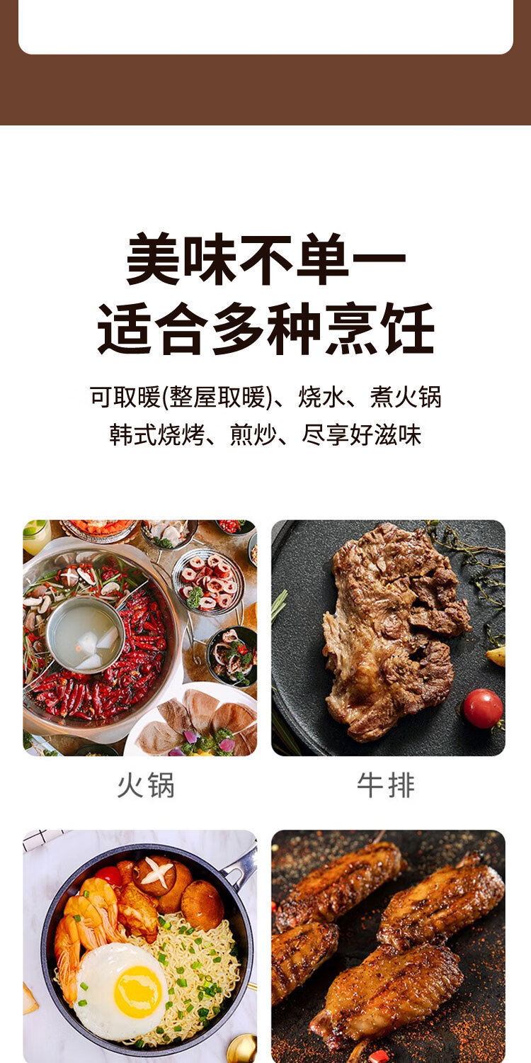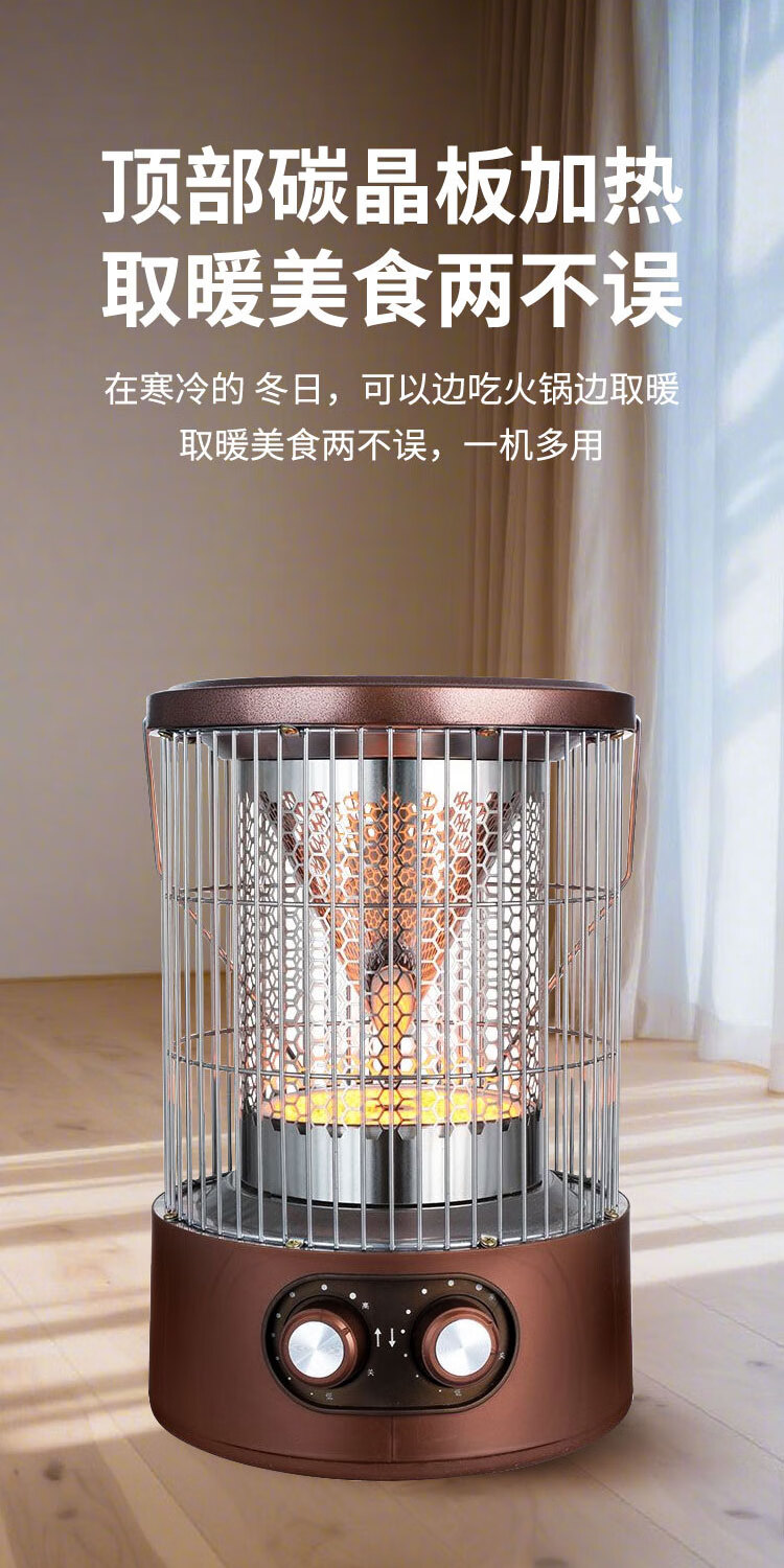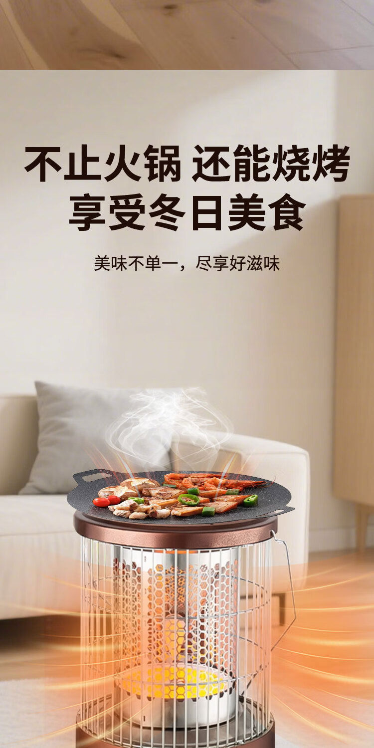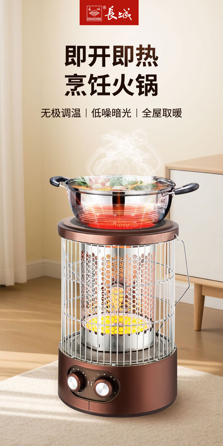 长城(CHANGCHENG)取暖器家用电暖器小太阳围炉煮茶多功能烤火炉电暖气卧室省电取暖炉火锅型电暖炉 豪华款(可烧烤)无极灯管LXT-200