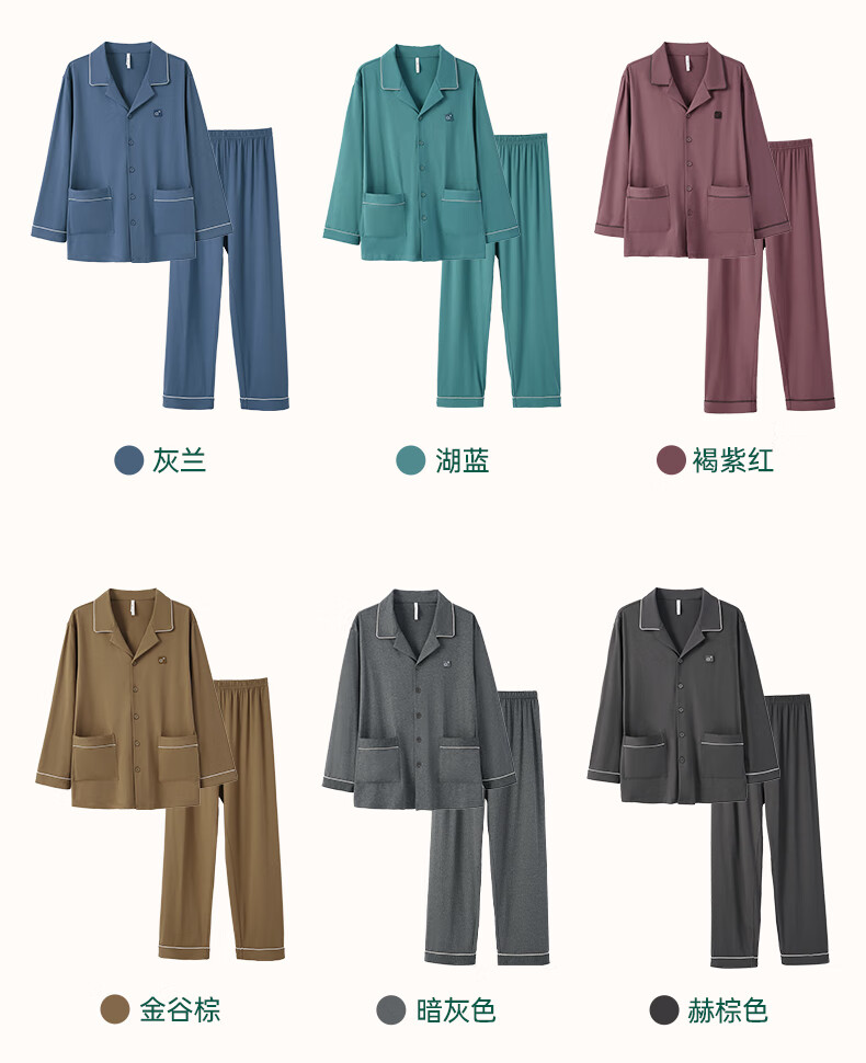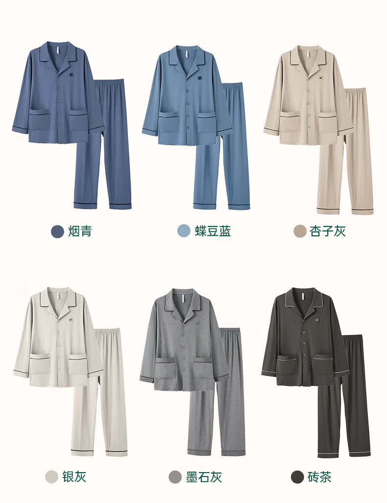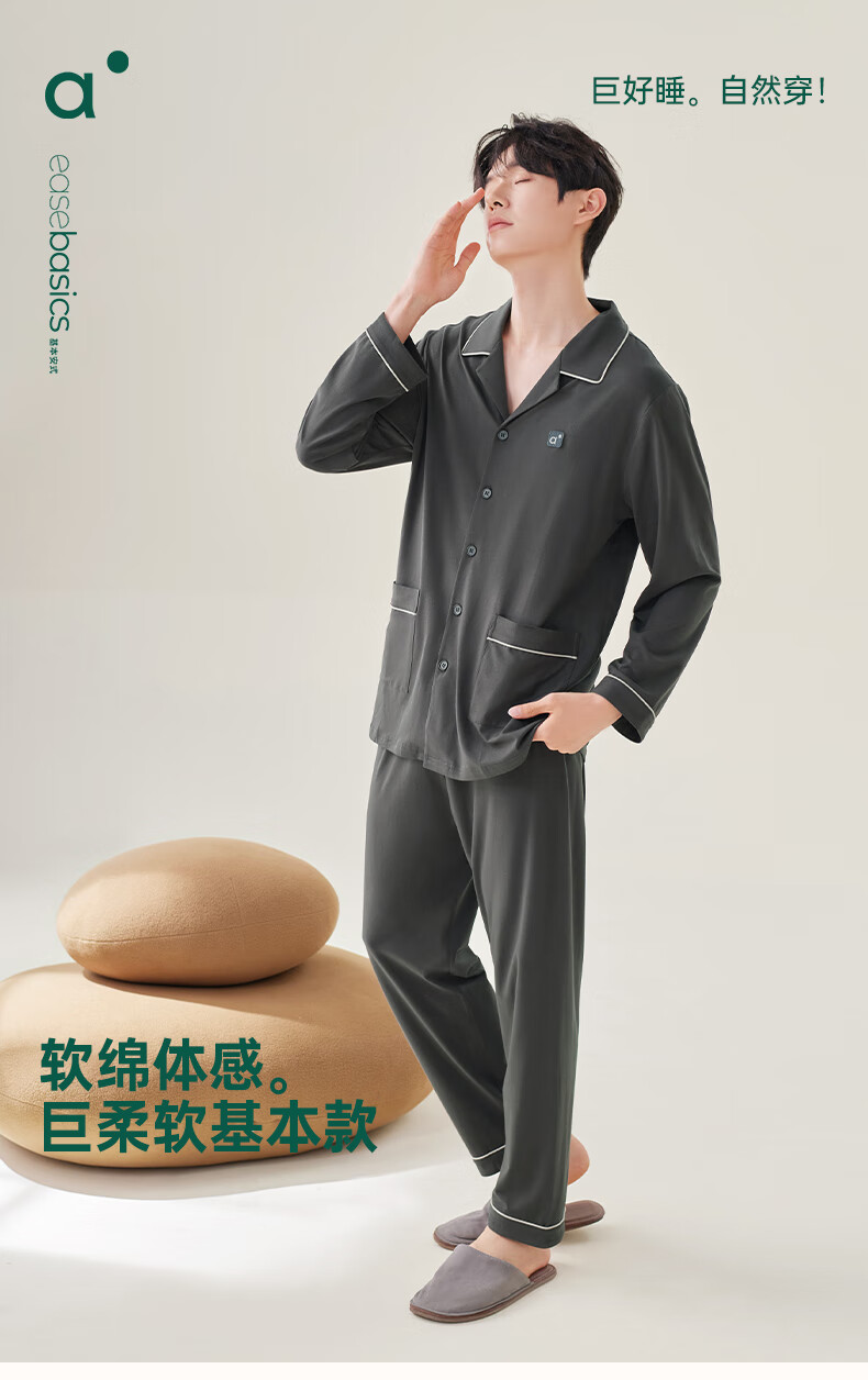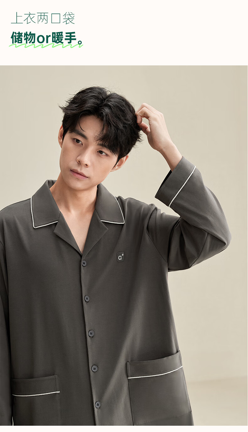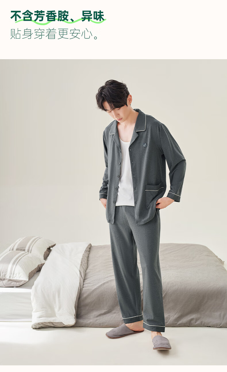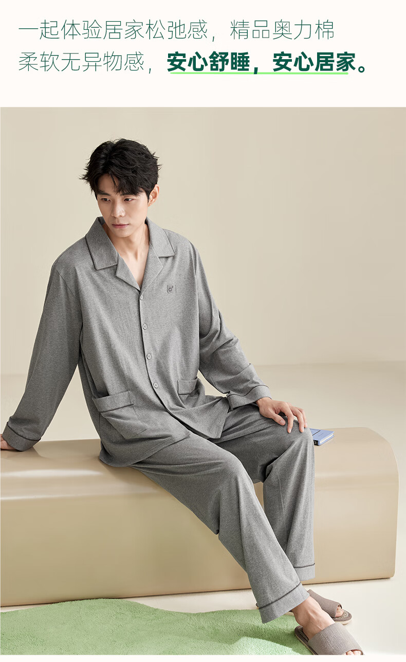 安之伴2025睡衣男春秋冬季亲肤弹弹棉休闲纯色基本款家居服套装可外穿 暗灰色(超柔软5%氨纶有弹力) L
