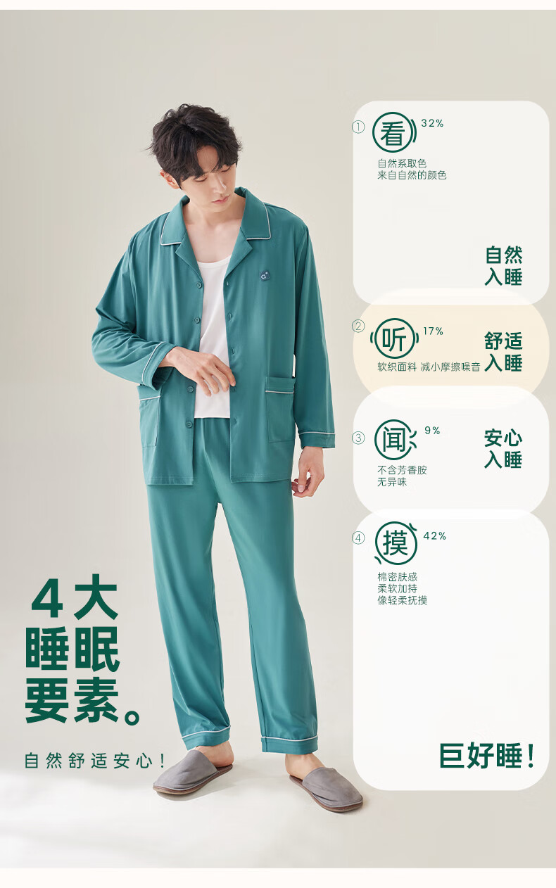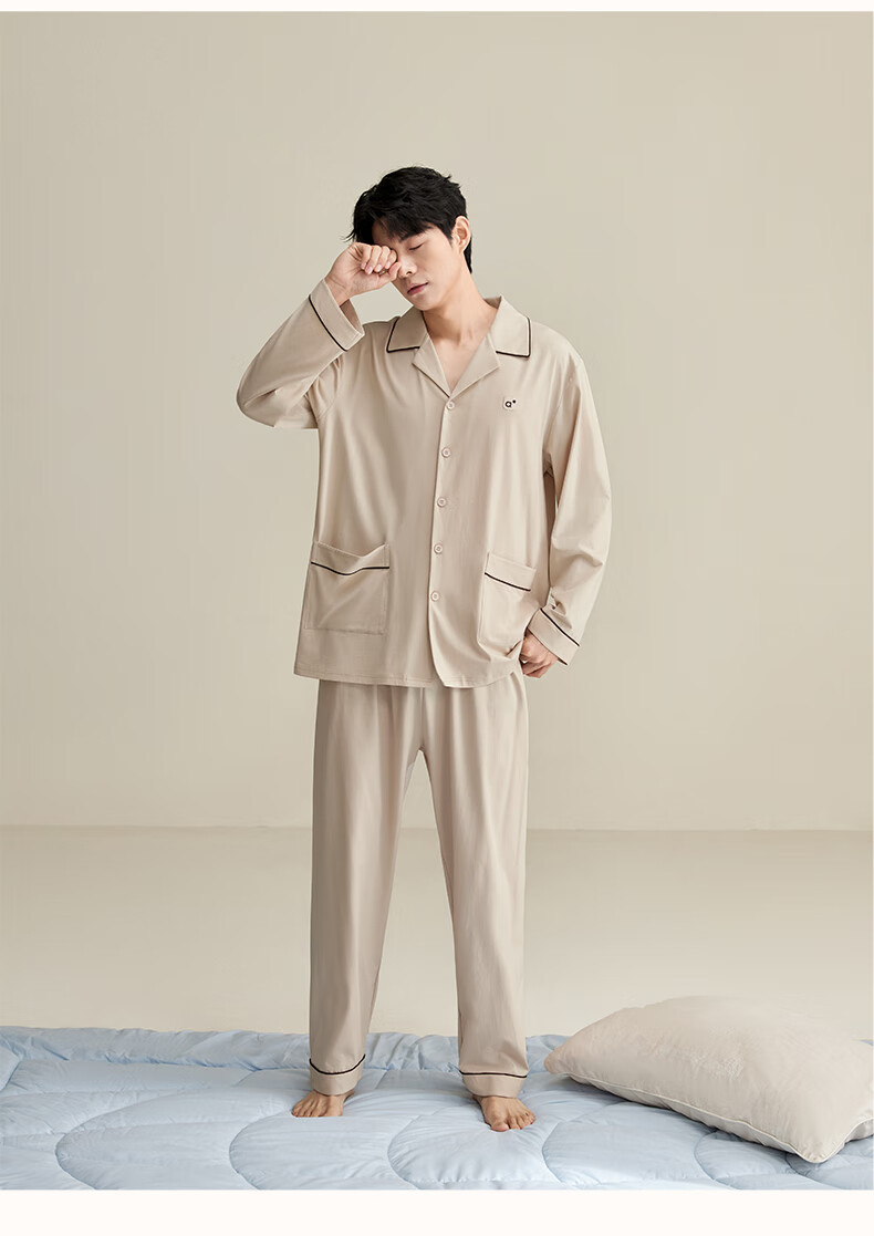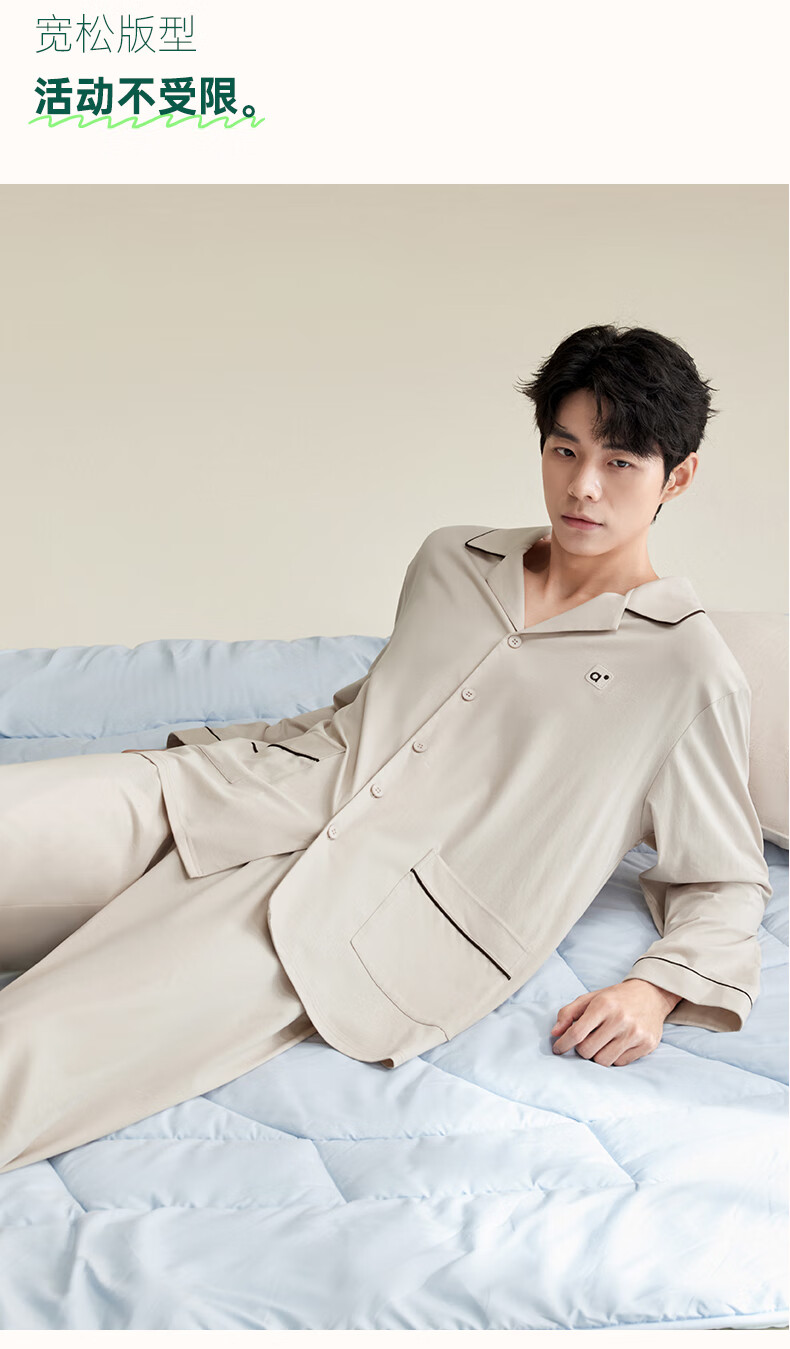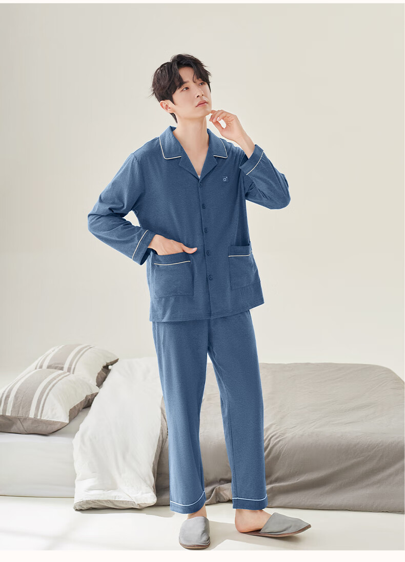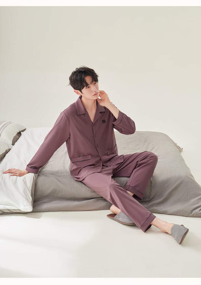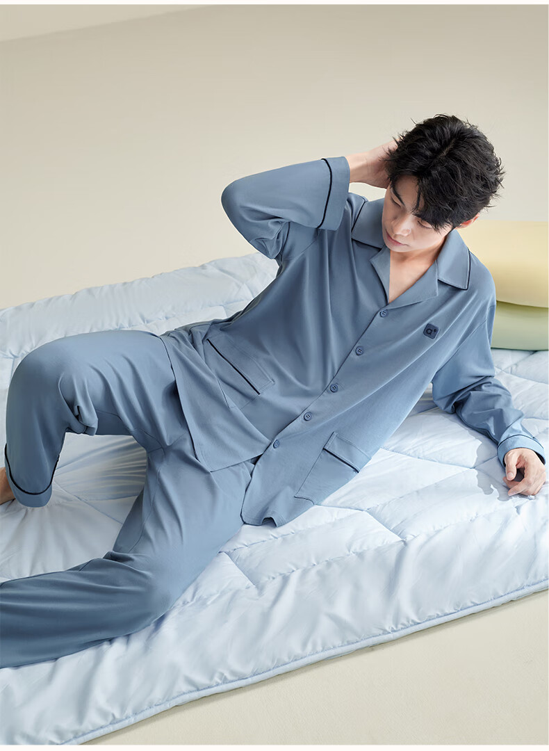 安之伴2025睡衣男春秋冬季亲肤弹弹棉休闲纯色基本款家居服套装可外穿 暗灰色(超柔软5%氨纶有弹力) L