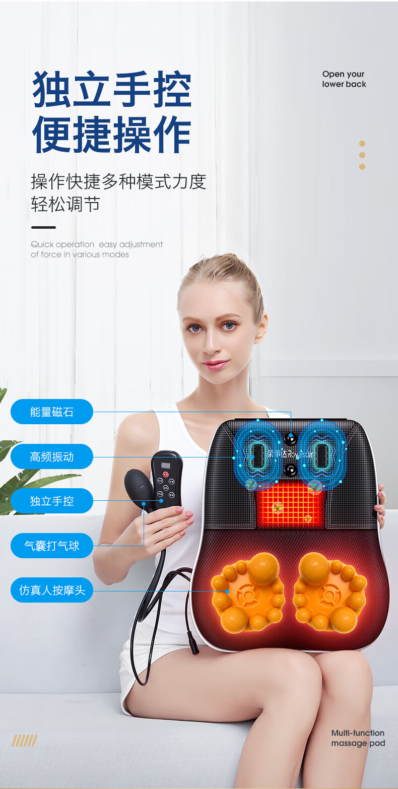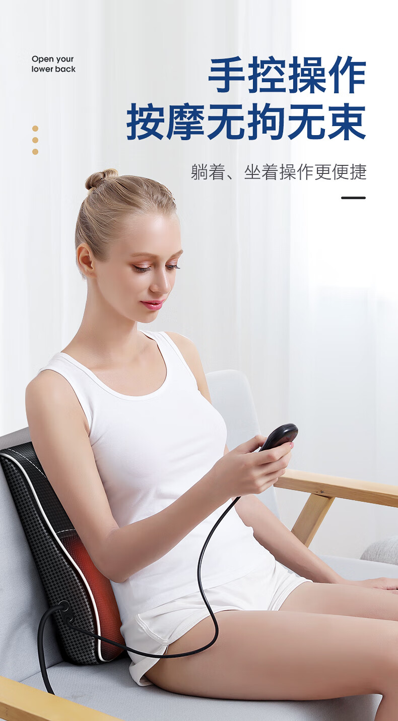 荣事达颈椎按摩器肩颈腰背臀部全身躺垫多功能按摩枕神器靠垫椅揉捏按摩仪送父母长辈生日节日礼物送老婆 手控款