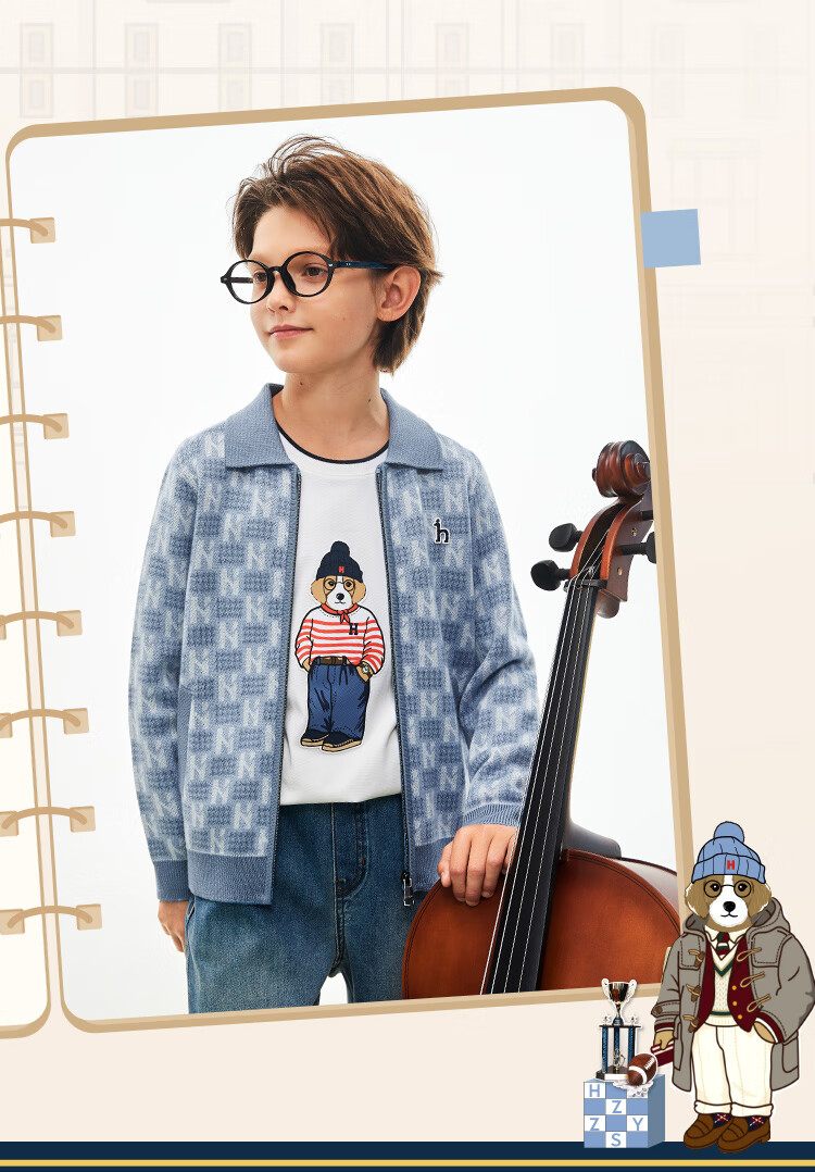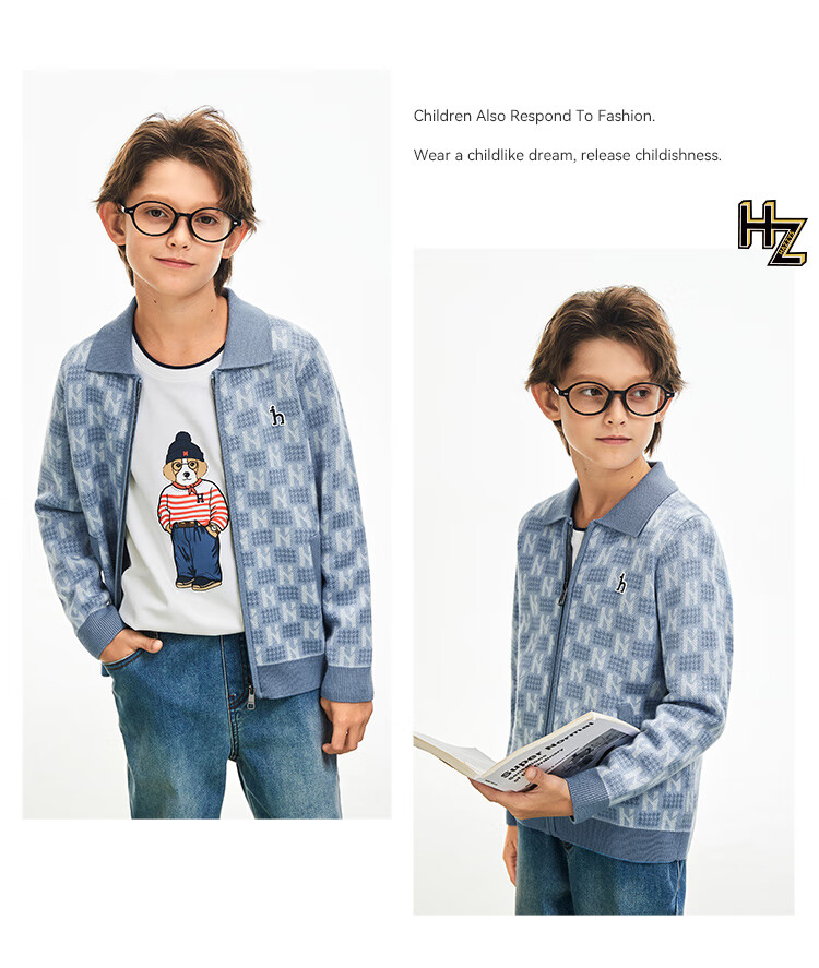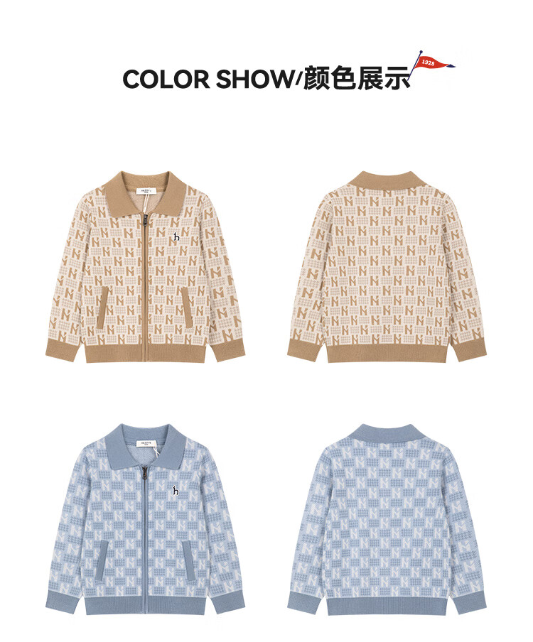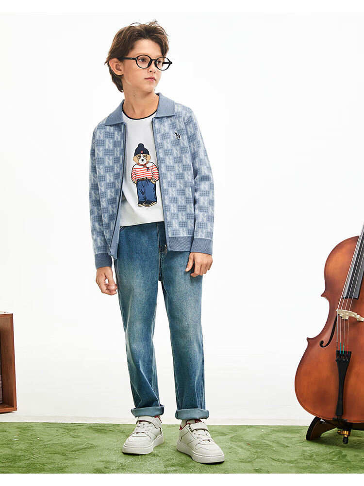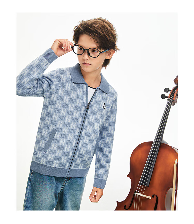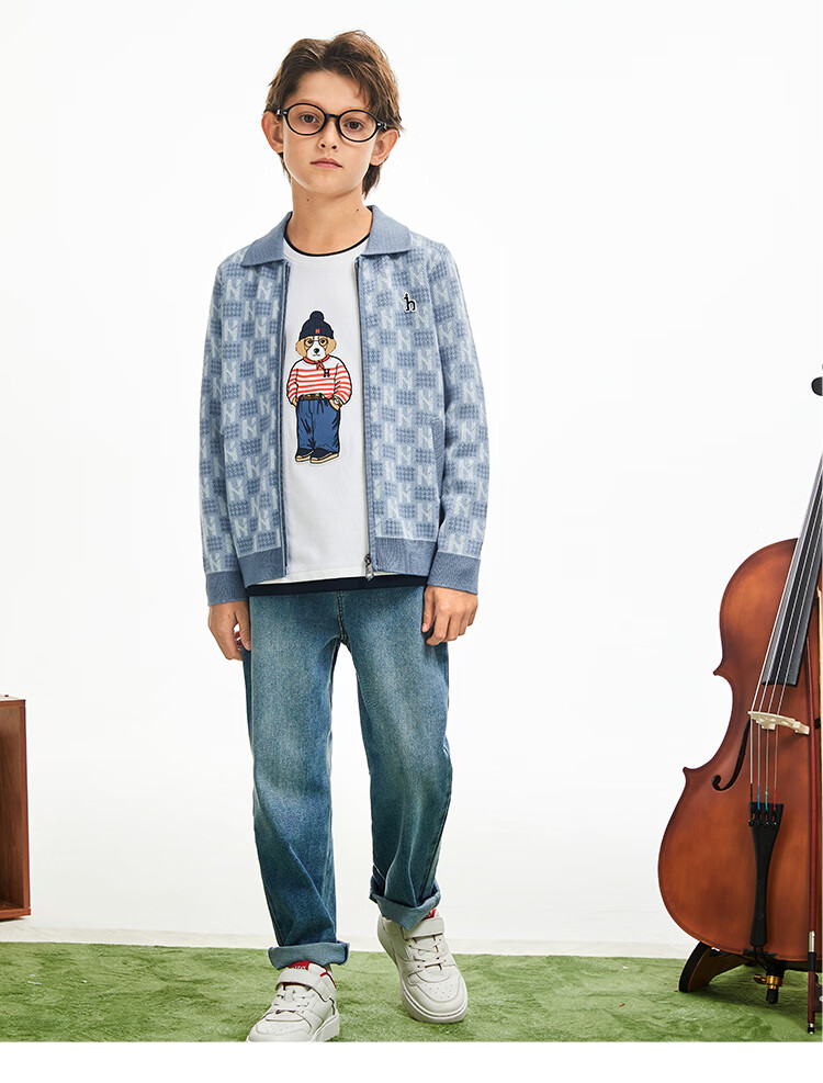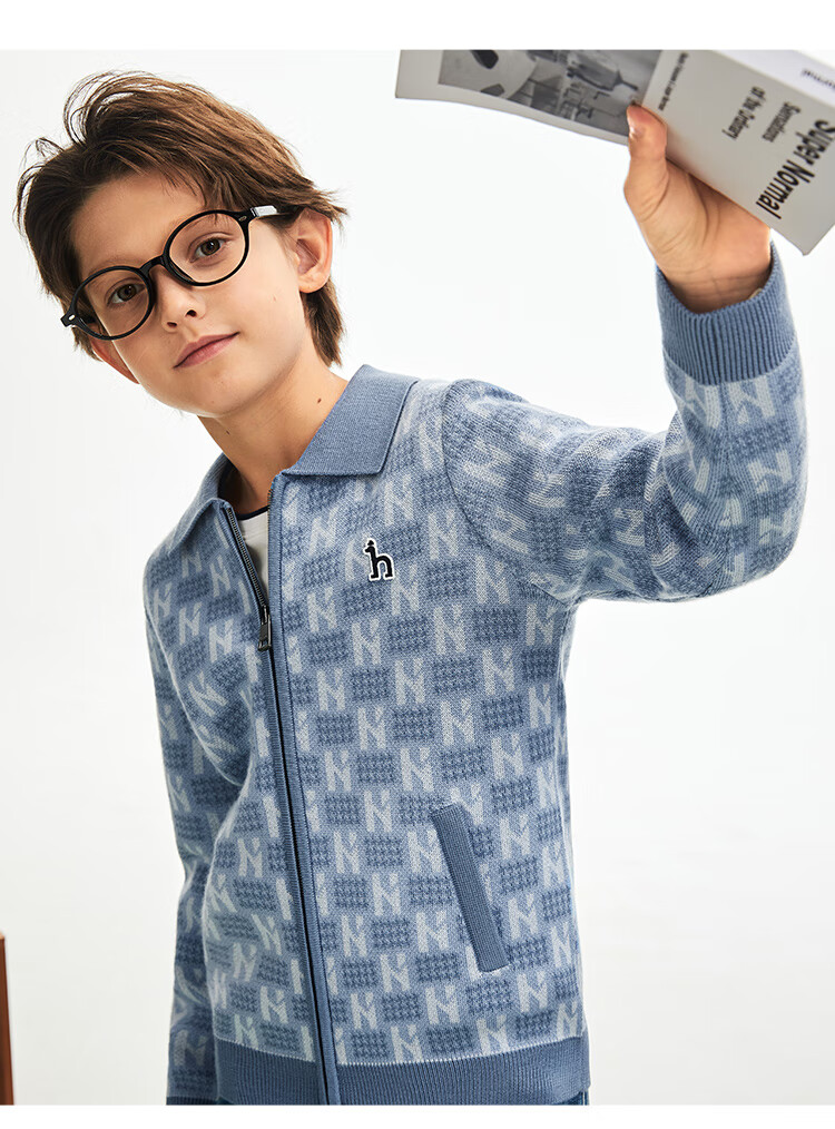 哈吉斯(HAZZYS)童装男童毛衣秋冬含羊毛开身线衣保暖针织衫 秋波蓝 165