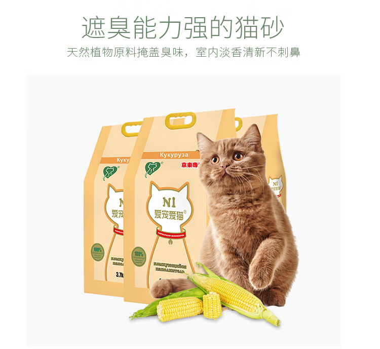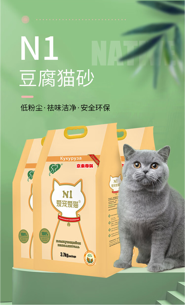 N1 爱宠爱猫N1玉米纯豆腐猫砂3包套装11.1kg升级2.0mm颗粒易结团可冲厕所