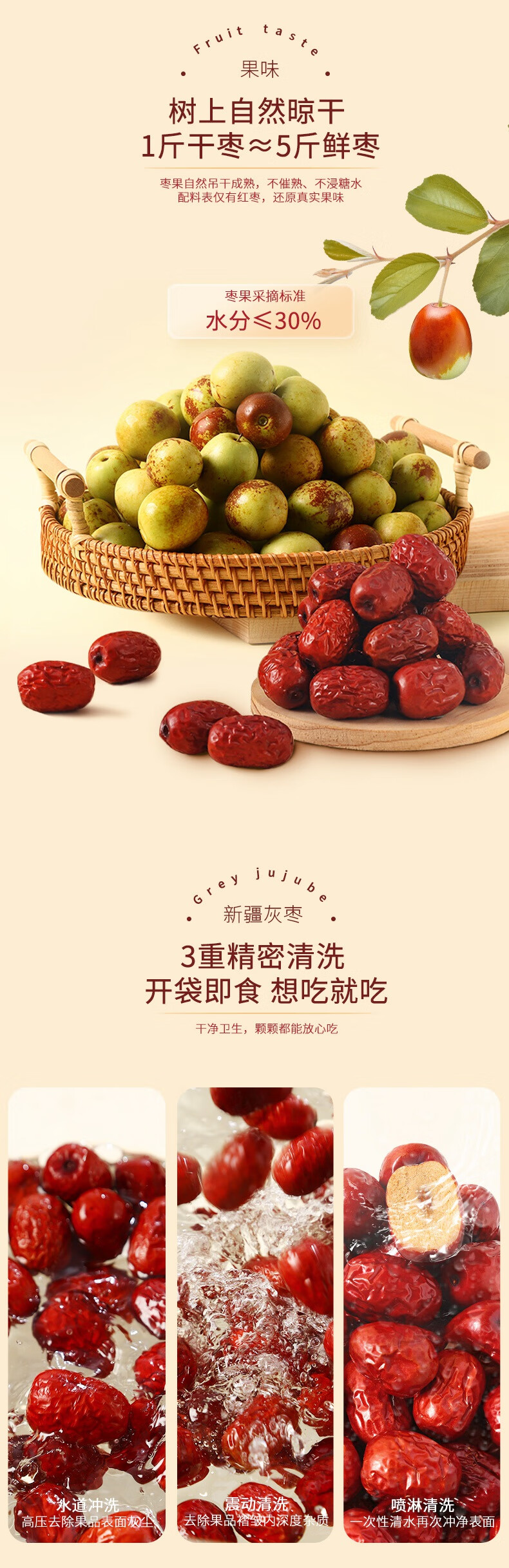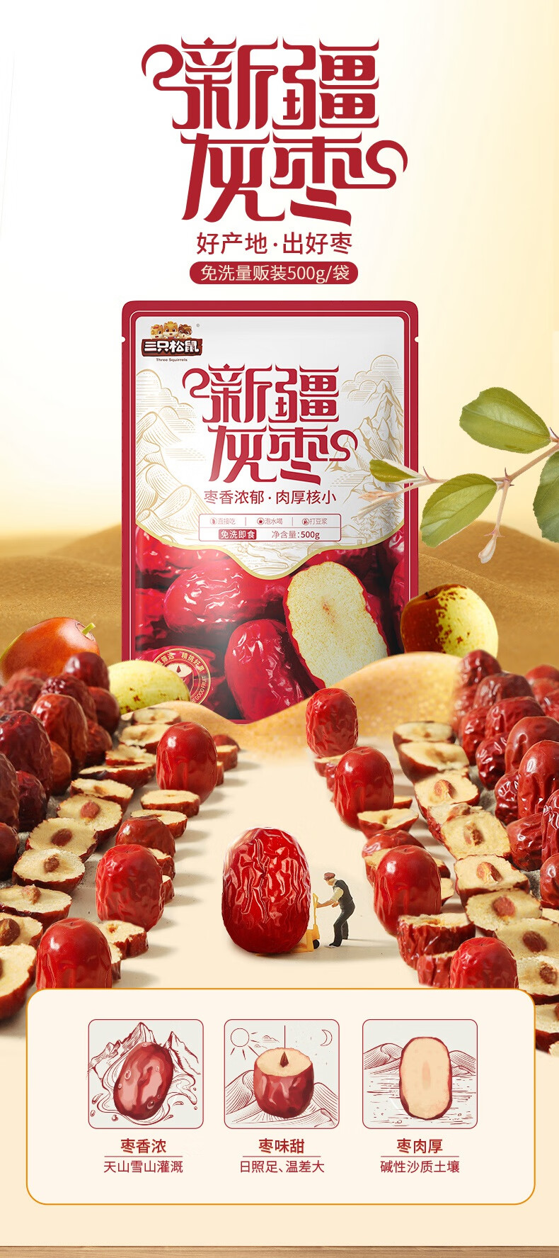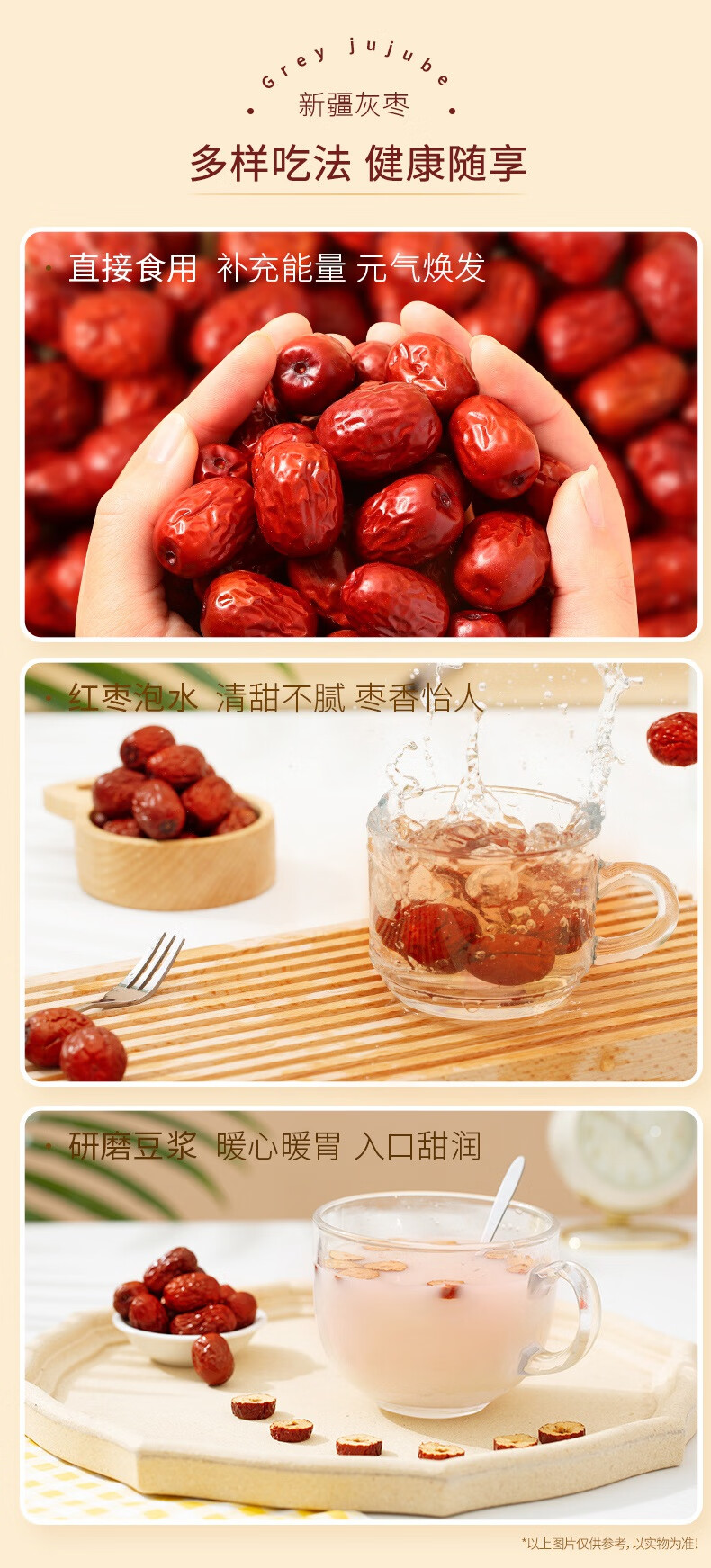 三只松鼠灰枣500g红枣免洗新疆特产大枣蜜饯果干煮粥煲汤即食休闲零食