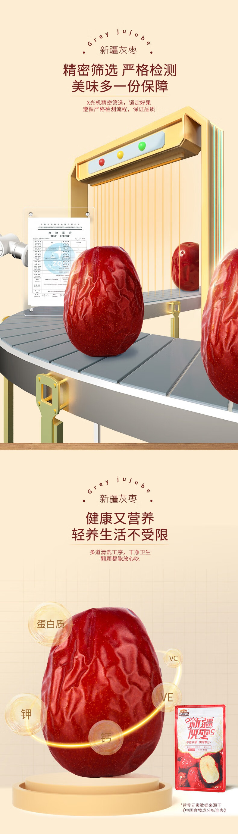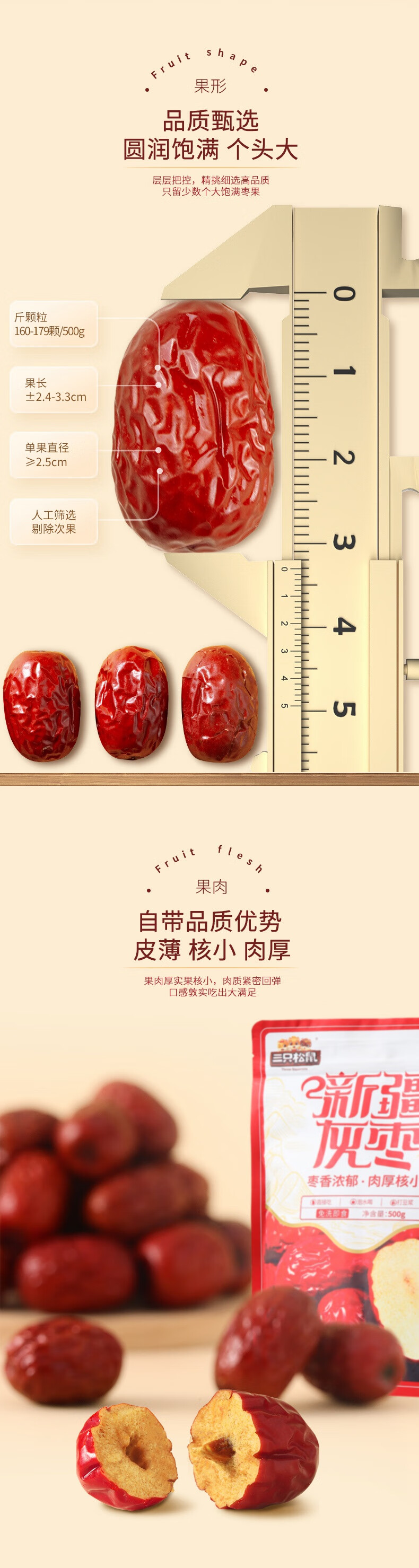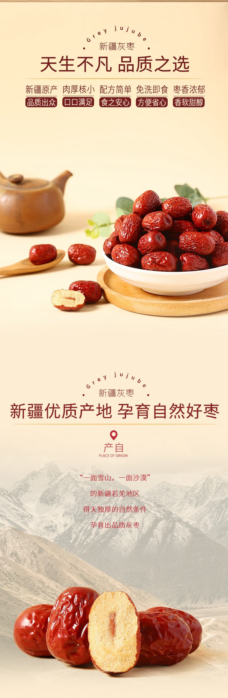 三只松鼠灰枣500g红枣免洗新疆特产大枣蜜饯果干煮粥煲汤即食休闲零食