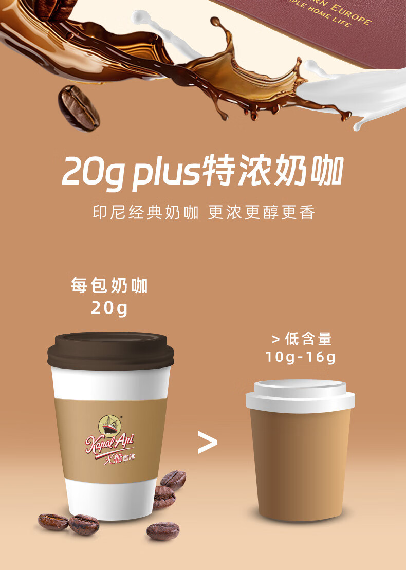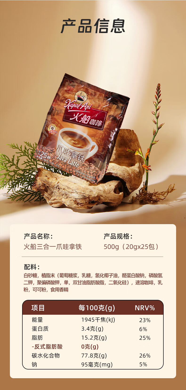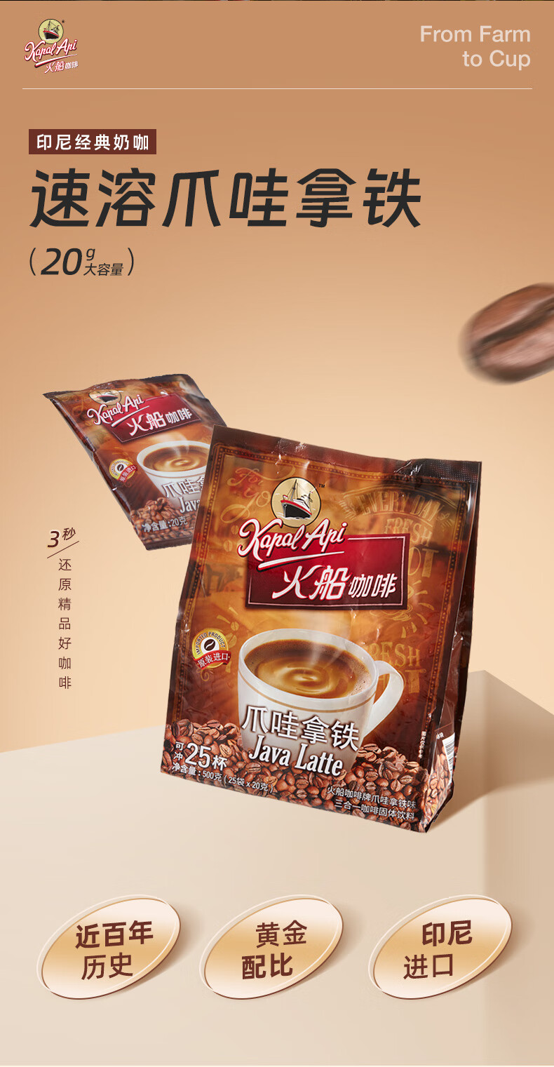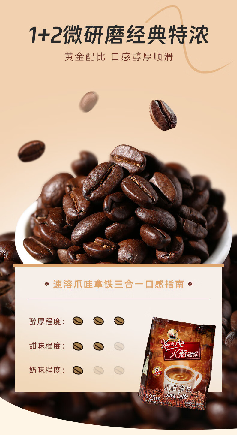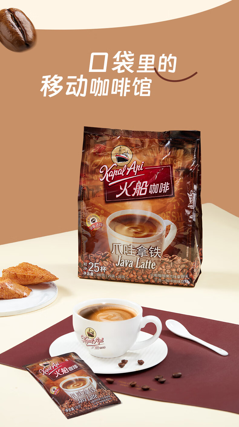 火船 特浓三合一速溶咖啡 原装进口 拿铁咖啡25条500g 冲调饮品