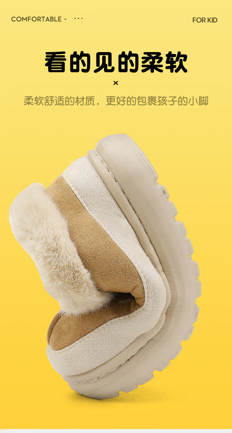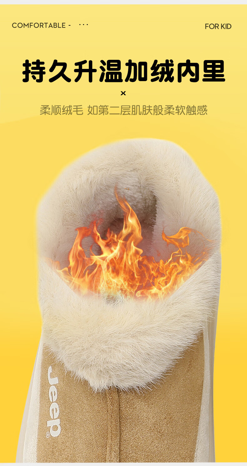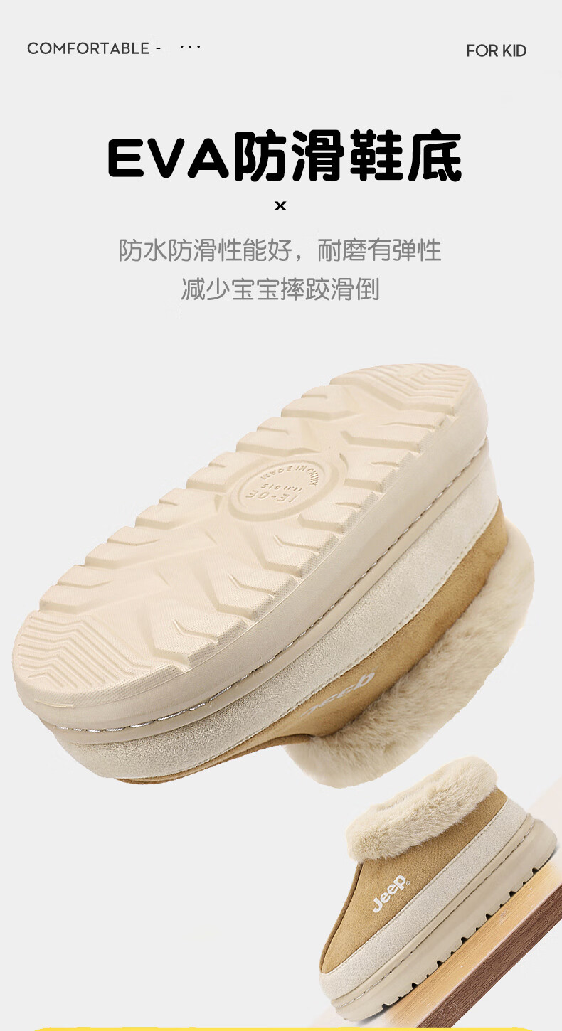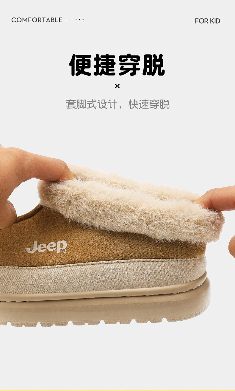 JEEP儿童棉拖鞋冬季男女童室内外穿保暖加绒棉鞋 咖啡34