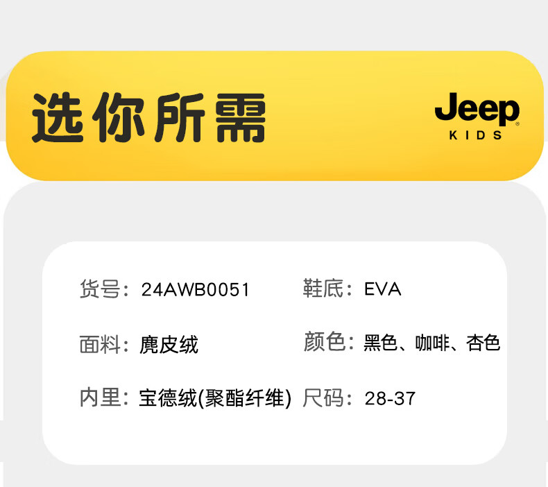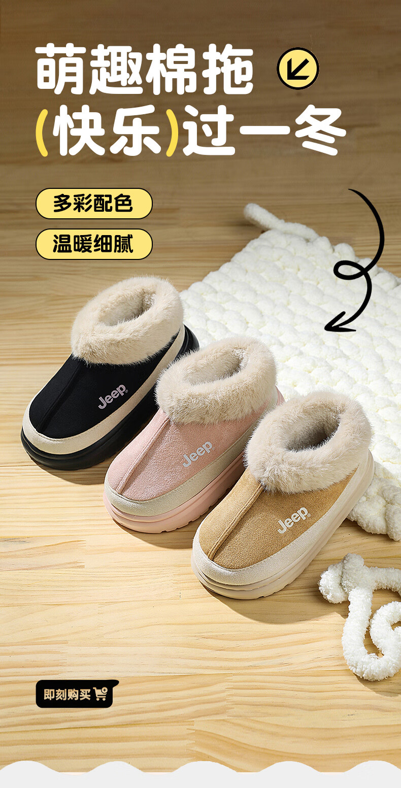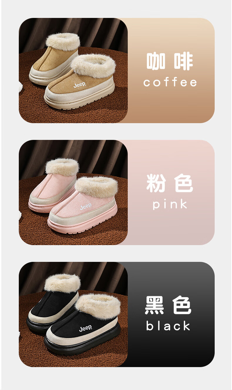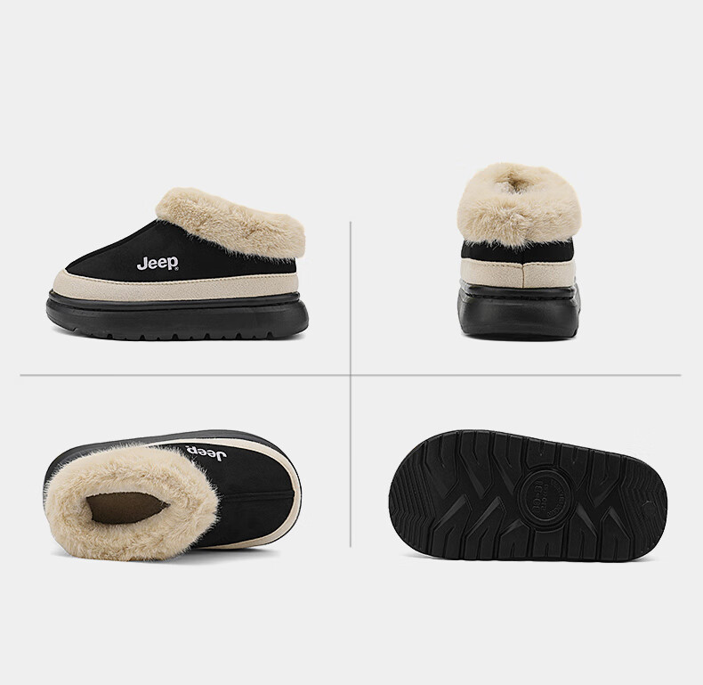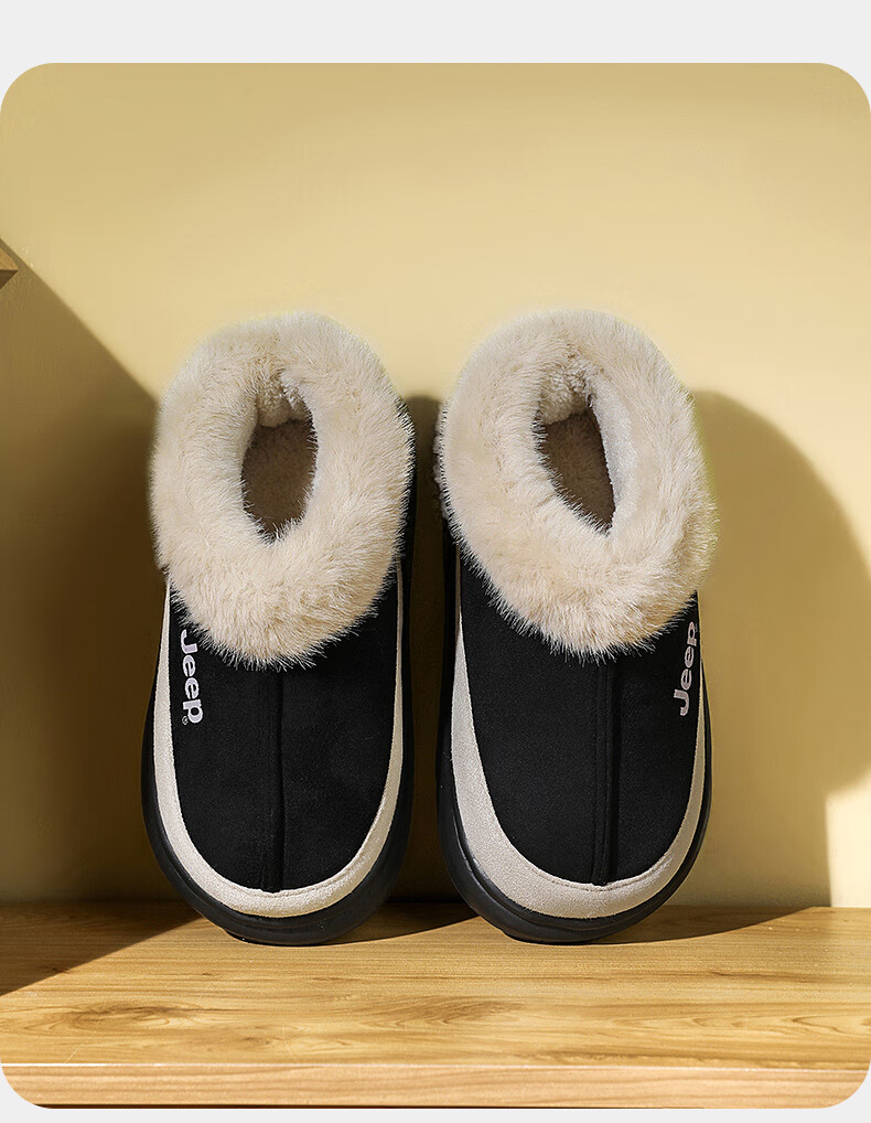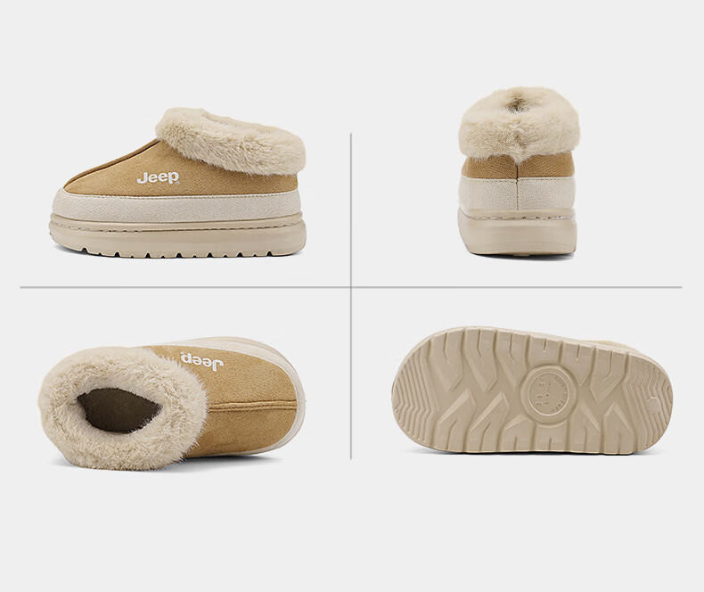 JEEP儿童棉拖鞋冬季男女童室内外穿保暖加绒棉鞋 咖啡34