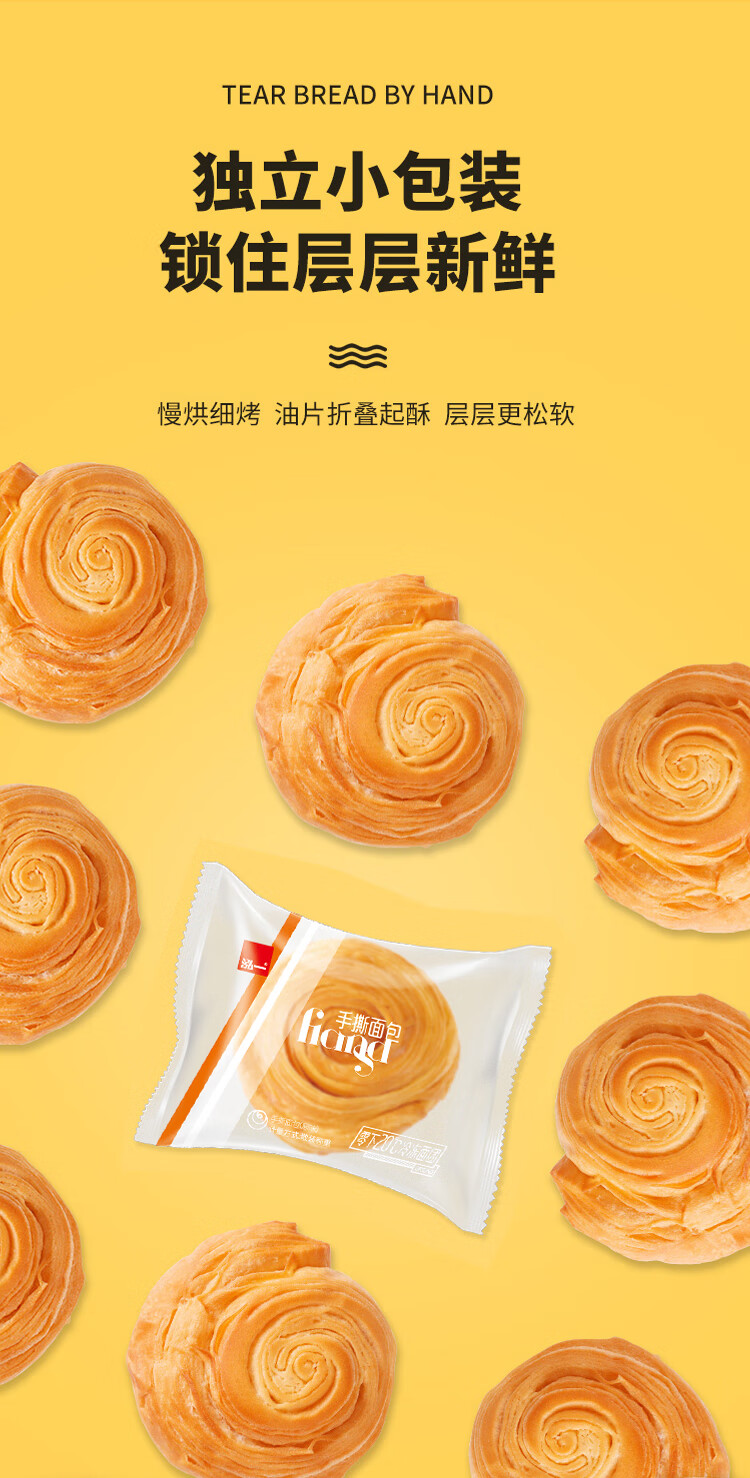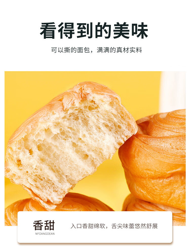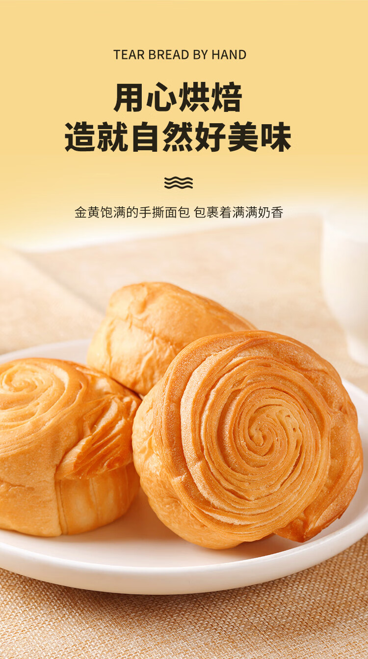 泓一手撕面包1000g 早餐面包吐司休闲零食营养代餐饱腹下午茶