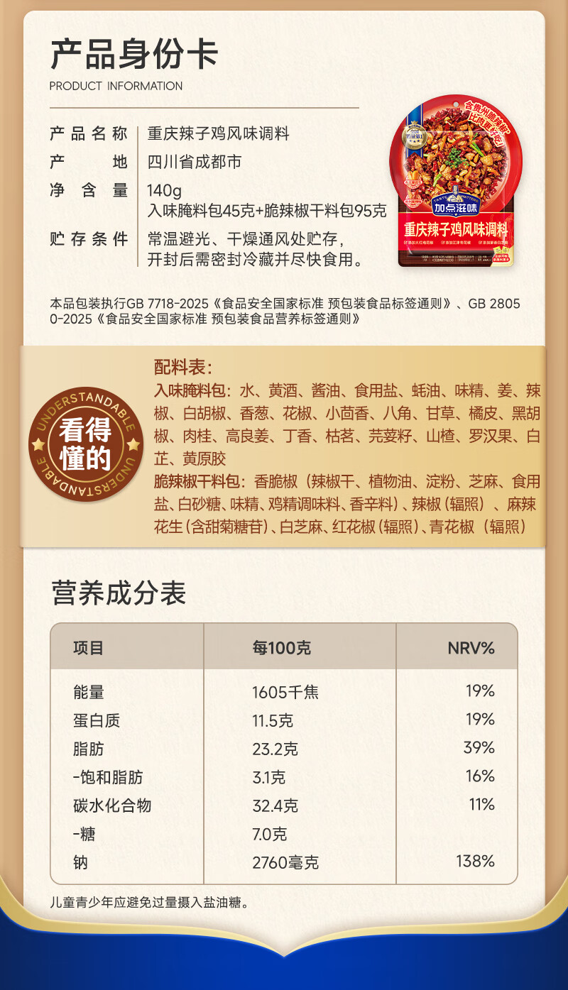 加点滋味重庆辣子鸡风味调料140g含贵州脆辣椒0添加防腐剂双料包