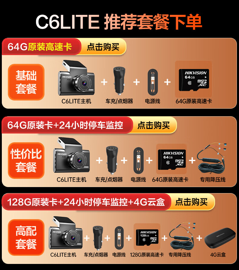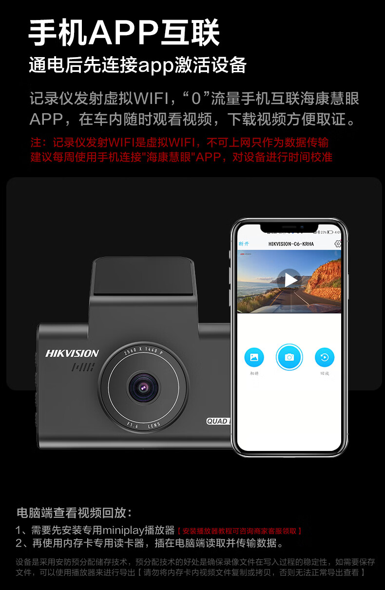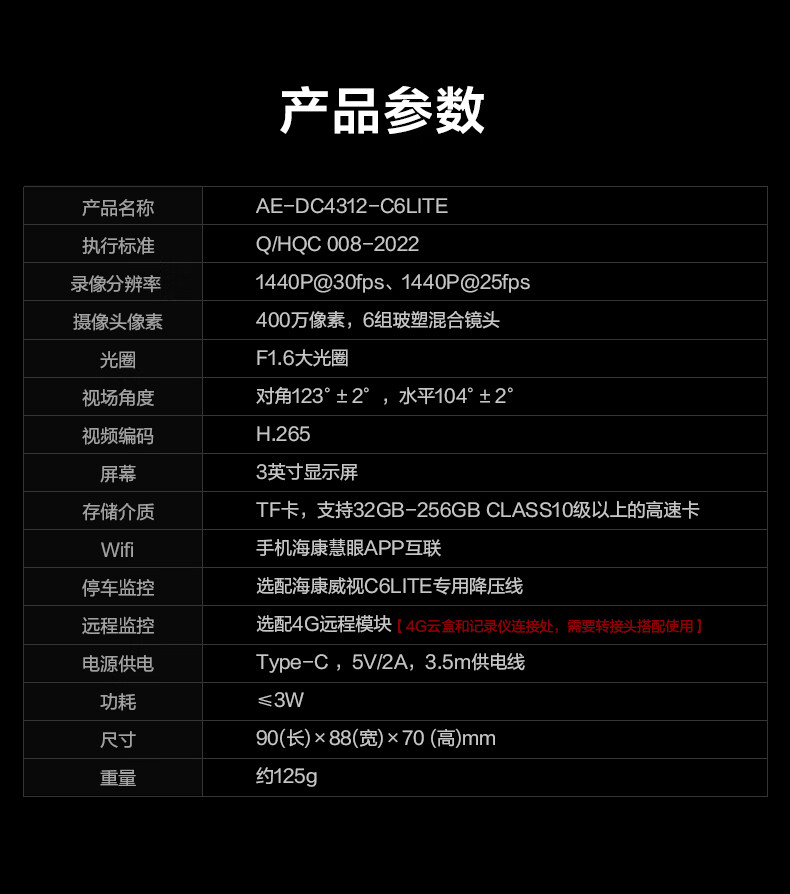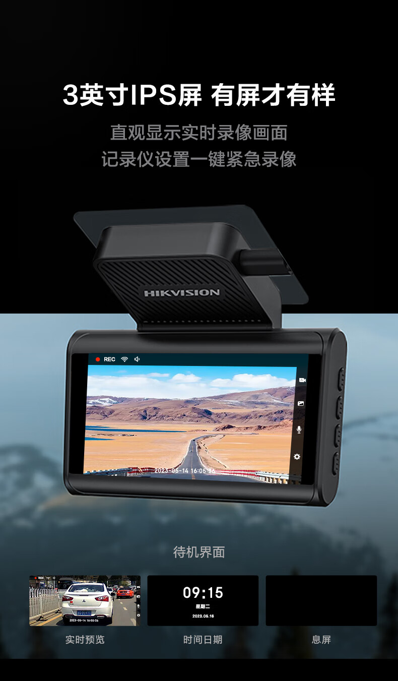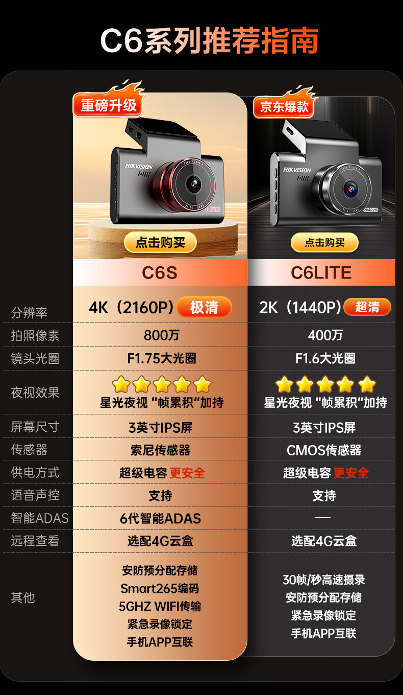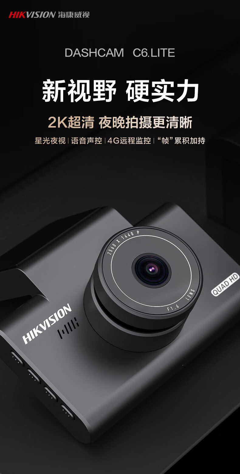 HIKVISION 海康威视行车记录仪C6LITE 2K超高清星光夜视 语音声控远程查看