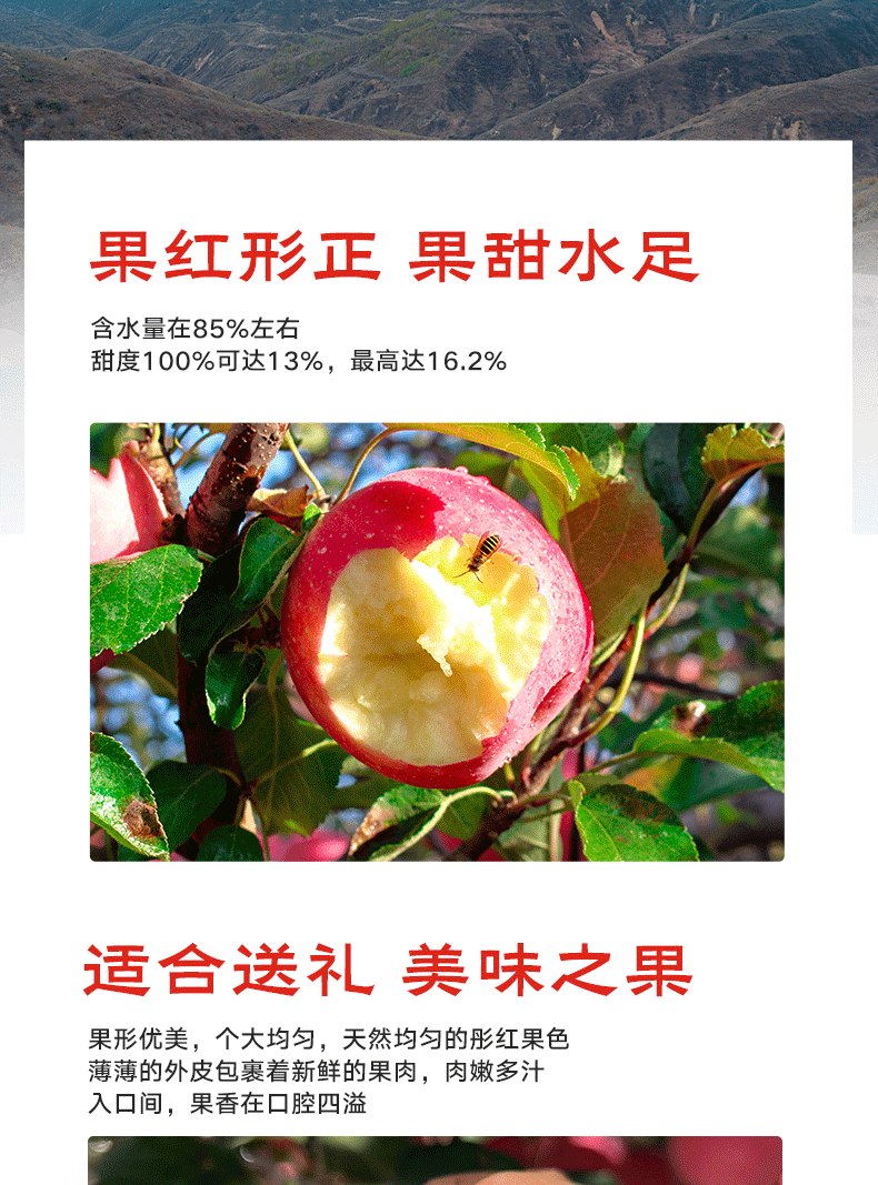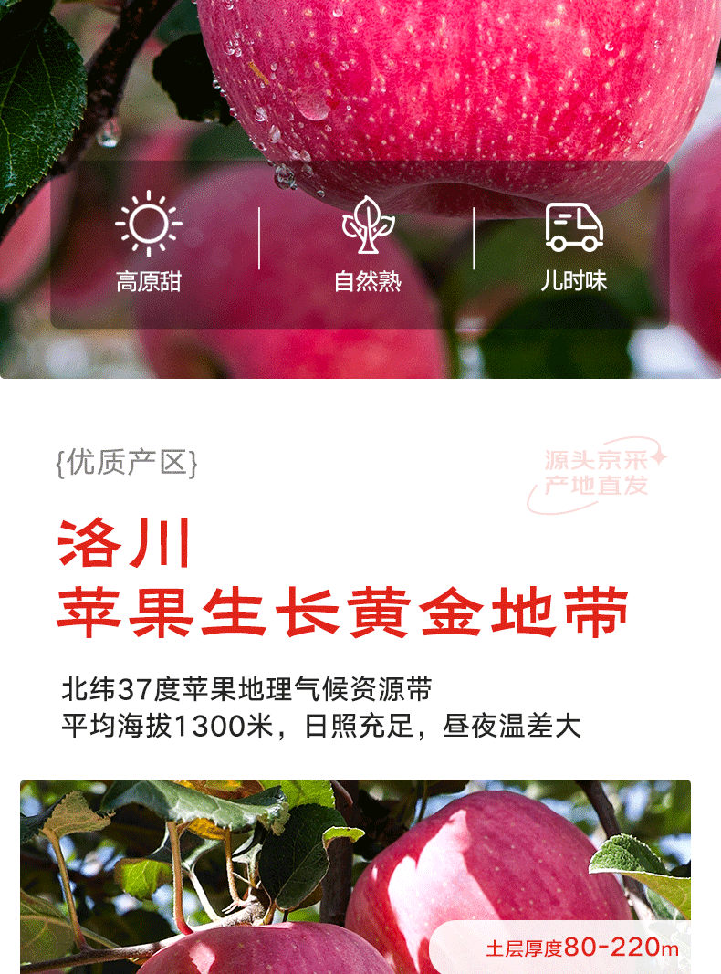 京鲜生 陕西洛川红富士苹果 净重5斤85-90mm 单果250g+新鲜水果源头直发