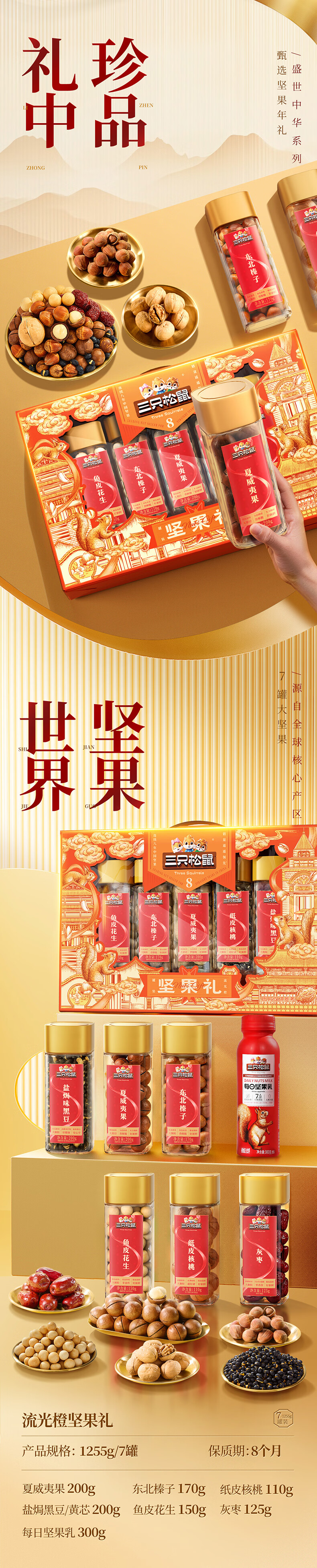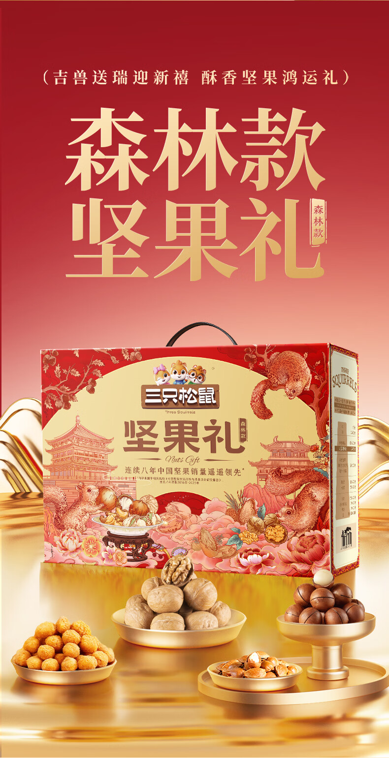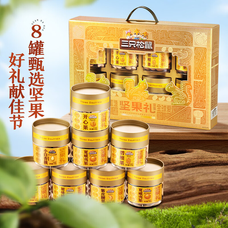 三只松鼠罐装坚果礼盒零食大礼包年货节日送礼送长辈坚果干果年货礼盒团购 【2斤重】坚果礼盒龙跃款1035g/8袋*2箱