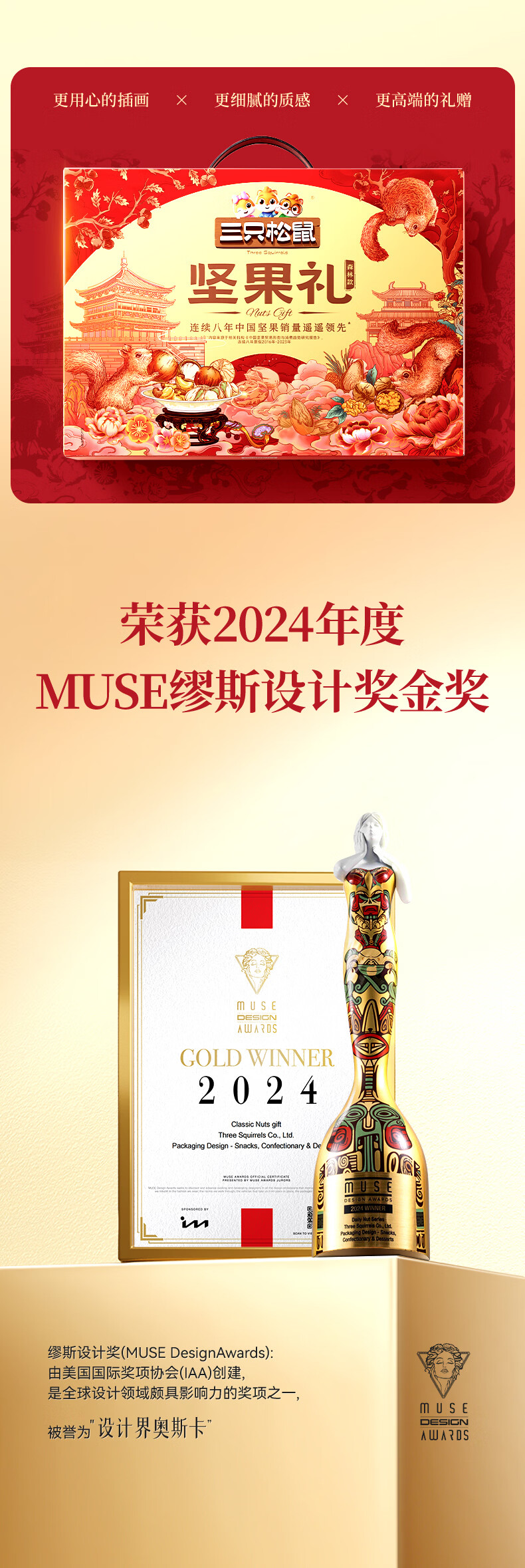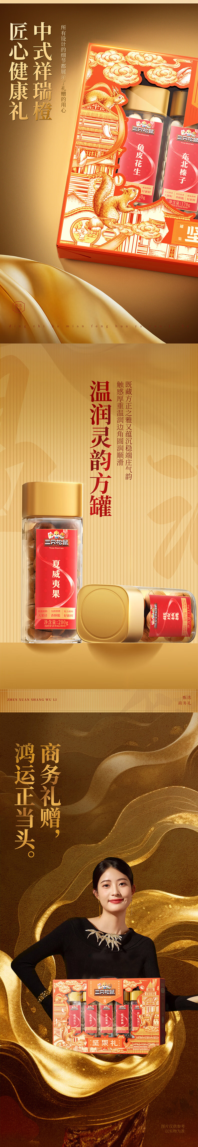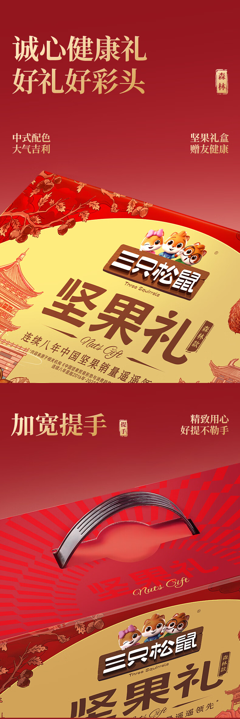 三只松鼠罐装坚果礼盒零食大礼包年货节日送礼送长辈坚果干果年货礼盒团购 【2斤重】坚果礼盒龙跃款1035g/8袋*2箱