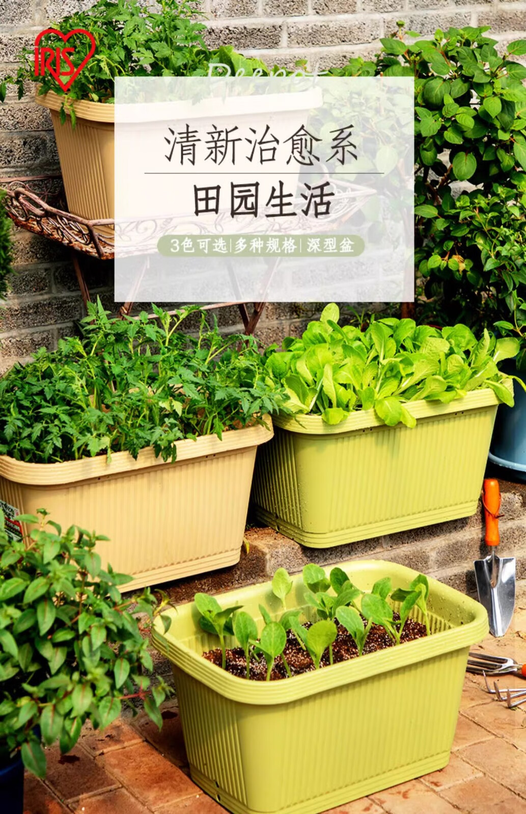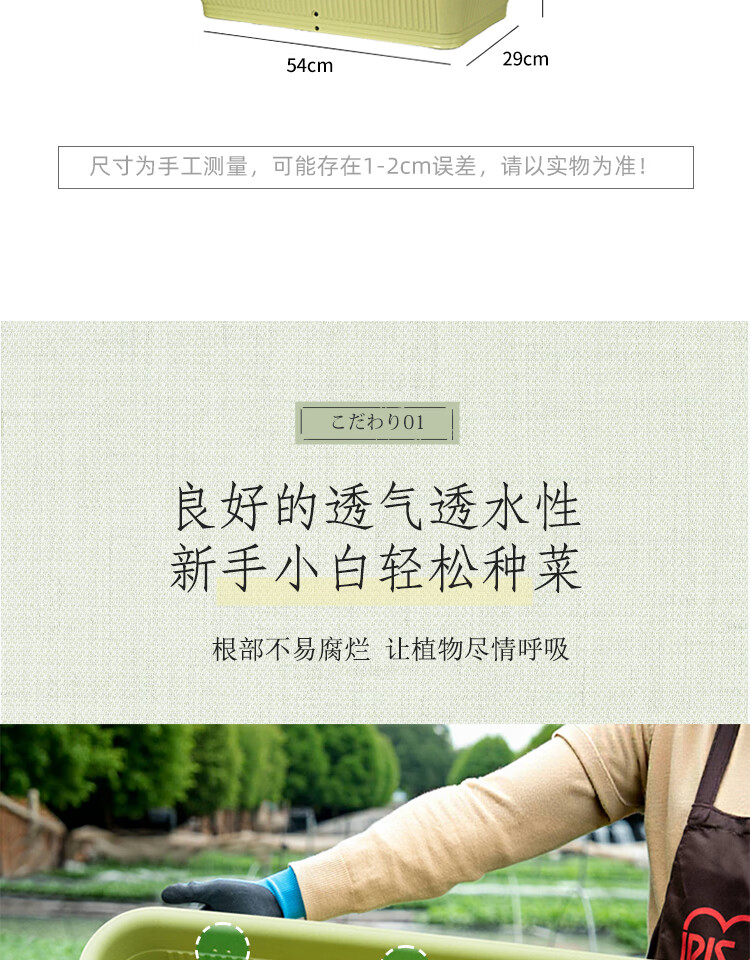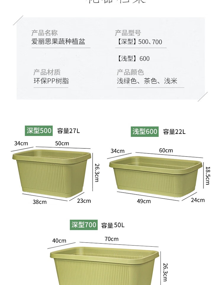 爱丽思(IRIS)阳台种菜盆种菜箱草莓种植盆长条花盆塑料蔬菜种植箱种菜专用盆 【3个装】深型700绿色