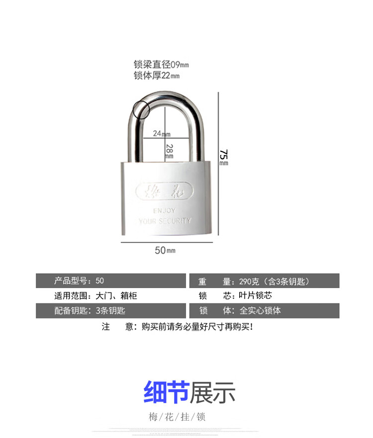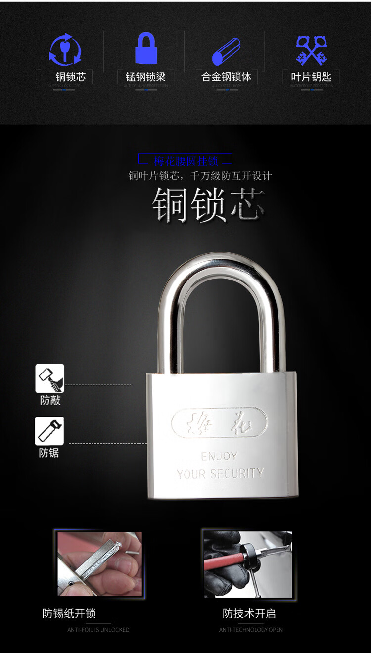 梅花(BLOSSOM)挂锁 防盗叶片锁芯门锁大门家用仓库商铺门锁防水防锈锁LS2950