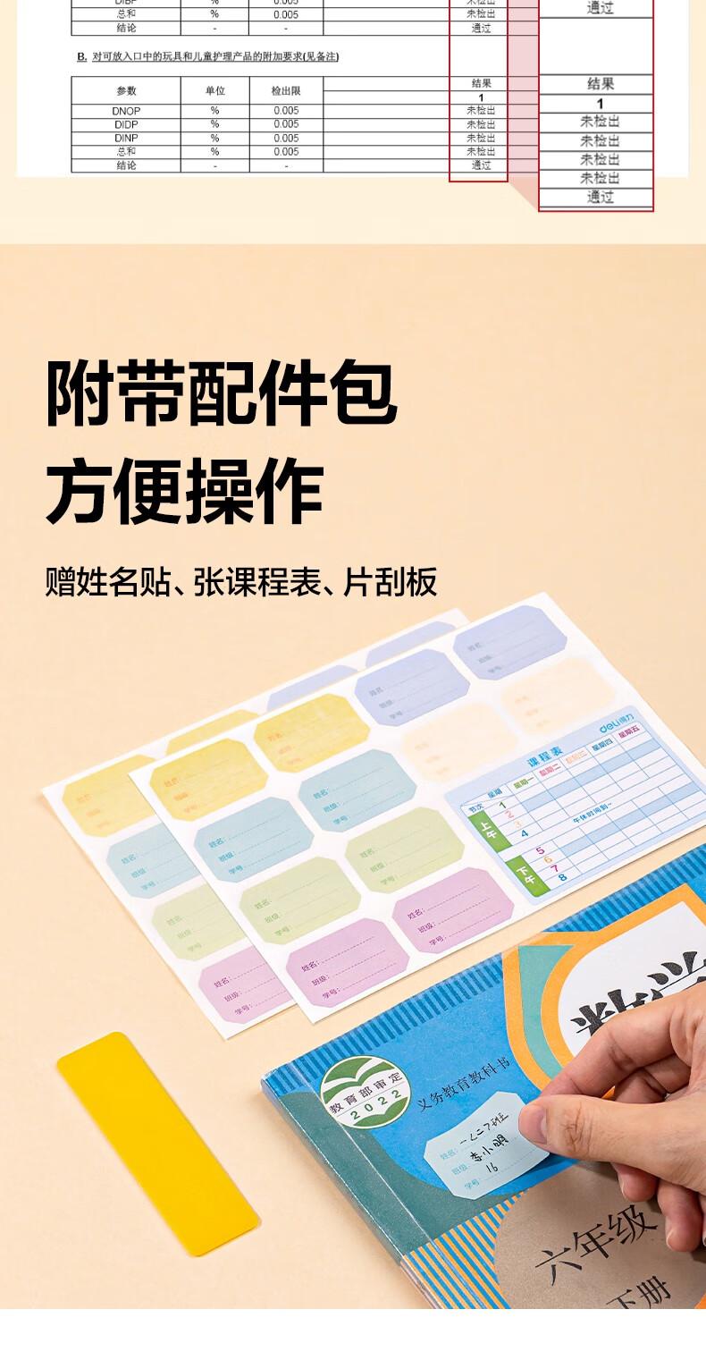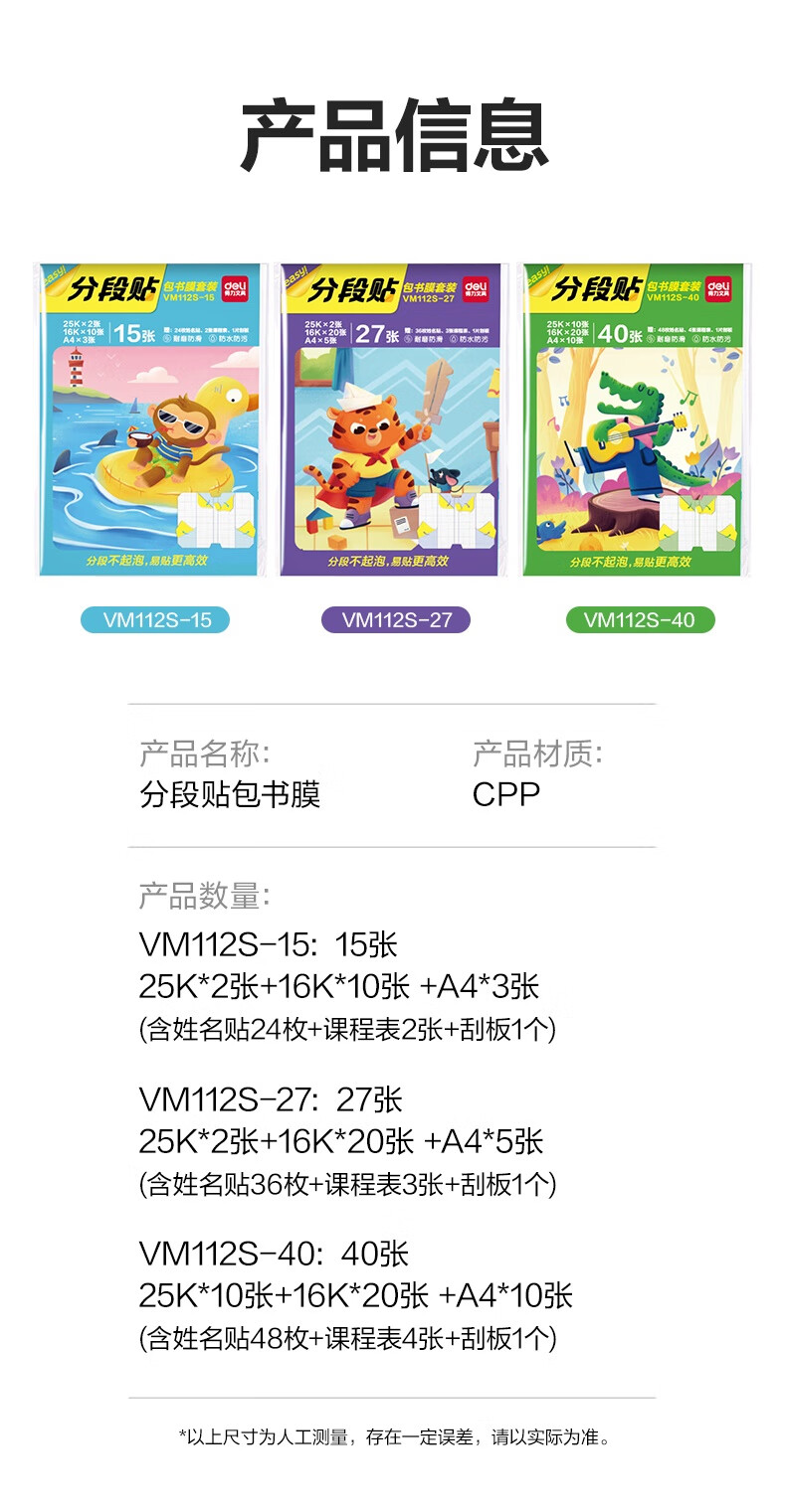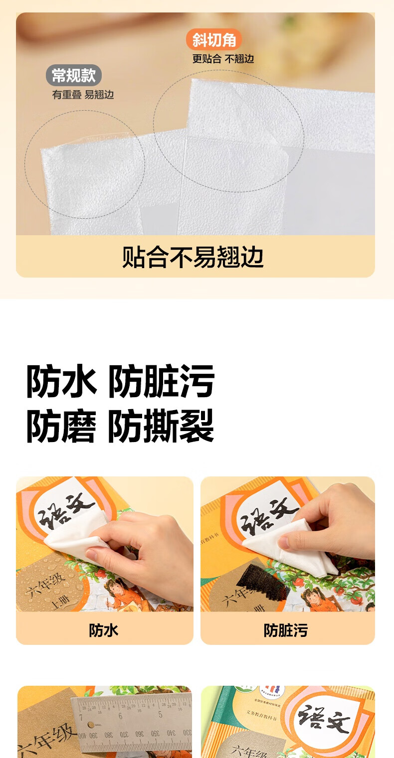 得力(deli)全新分段式包书皮 10张25K/小号分段包书膜分段易撕/防水防磨 赠刮板*1/姓名贴*12/课程表*1