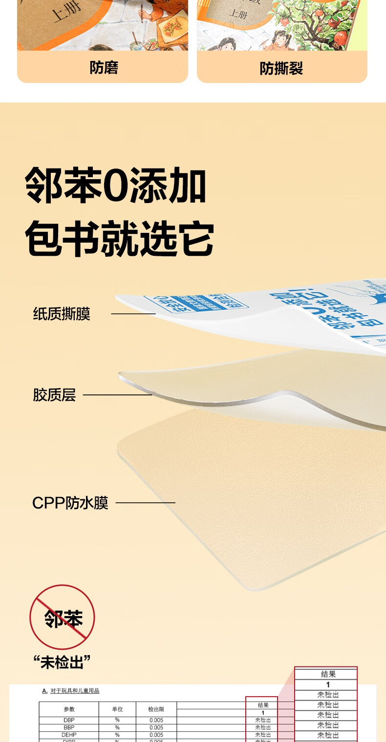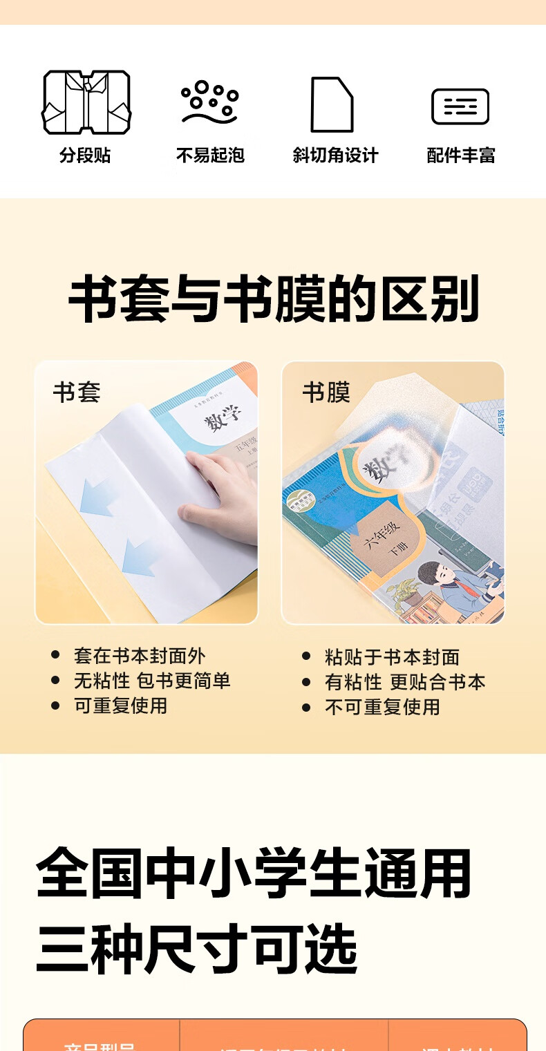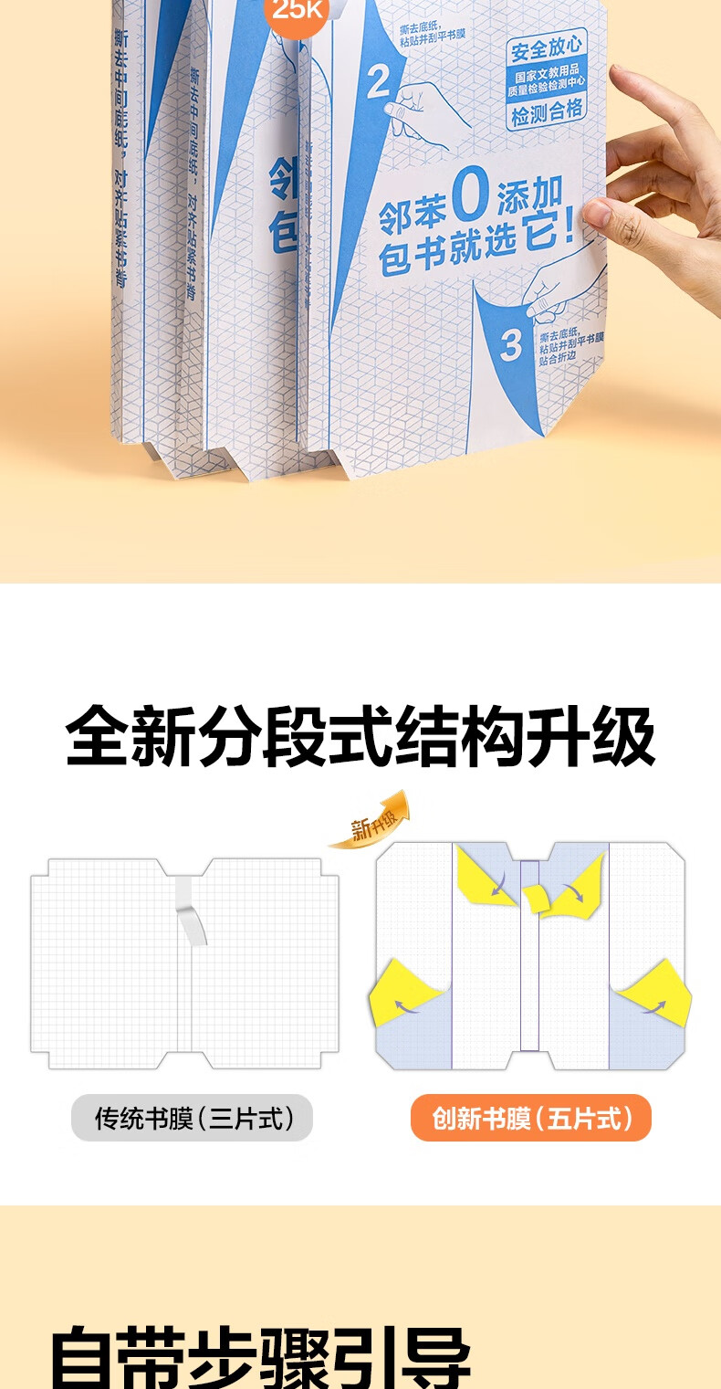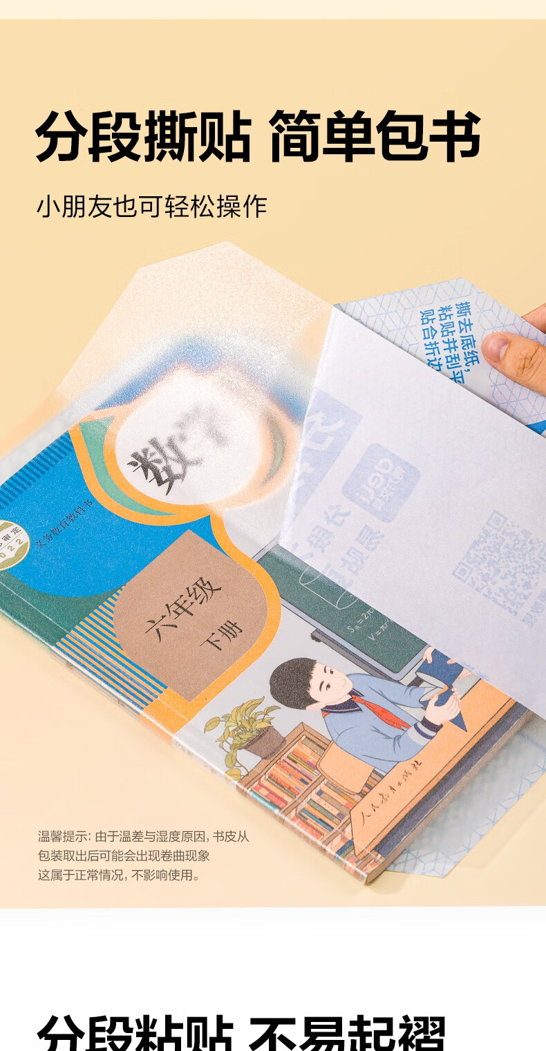 得力(deli)全新分段式包书皮 10张25K/小号分段包书膜分段易撕/防水防磨 赠刮板*1/姓名贴*12/课程表*1