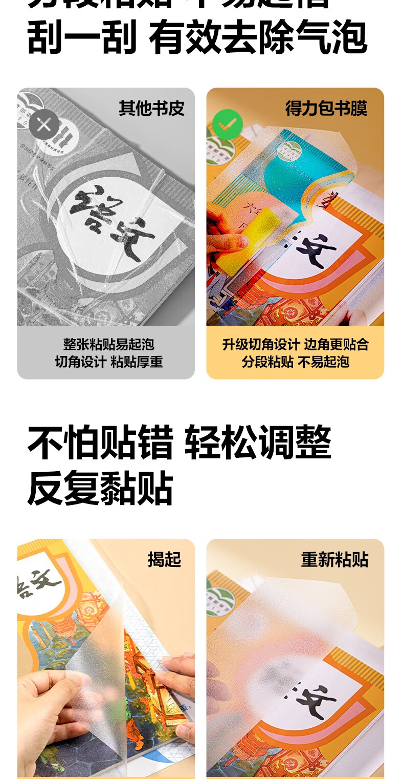 得力(deli)全新分段式 27张多规格分段包书膜包书皮 课本保护套 分段易撕/防水防磨 赠刮板姓名贴课程表