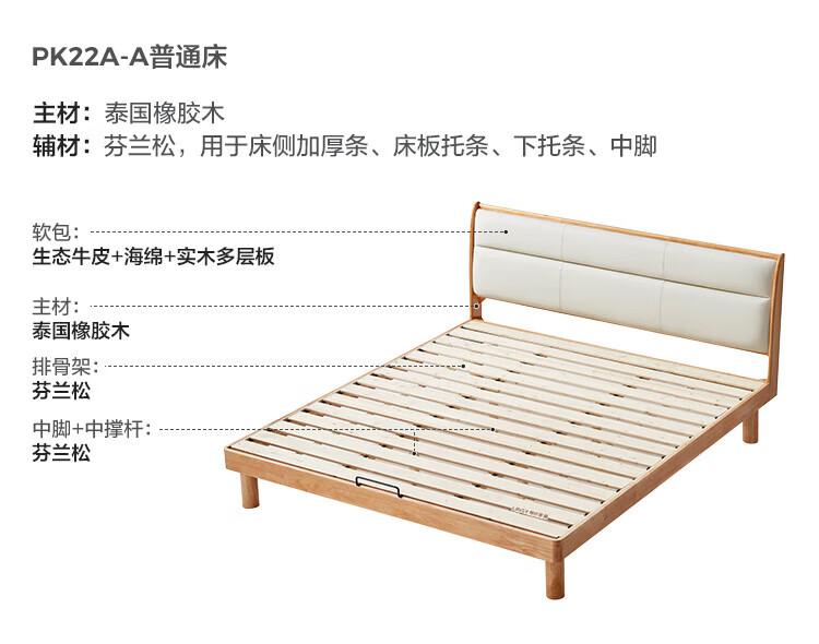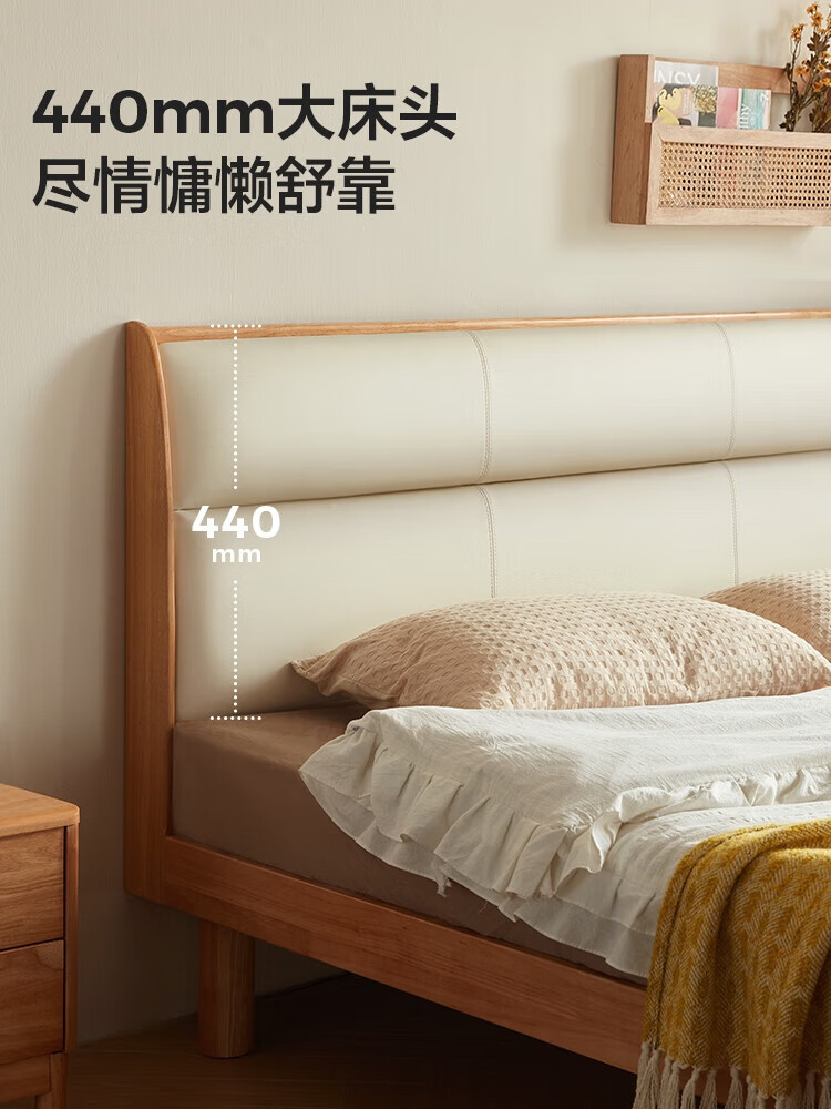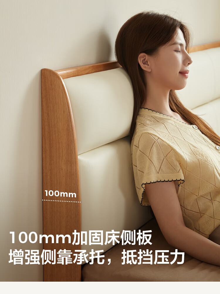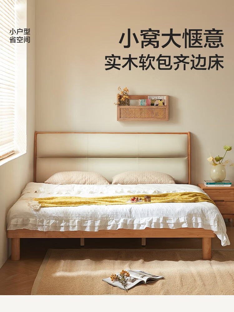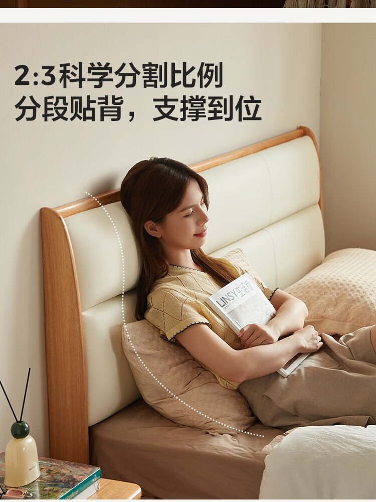 林氏家居原木风实木软包齐边床小户型单人床1米2床架木业小满系列PK22A 生态牛皮|实木床 1200mm*2000mm