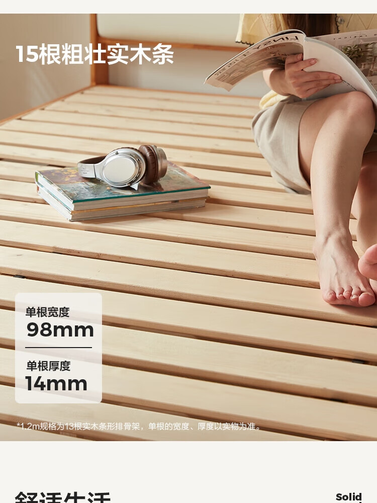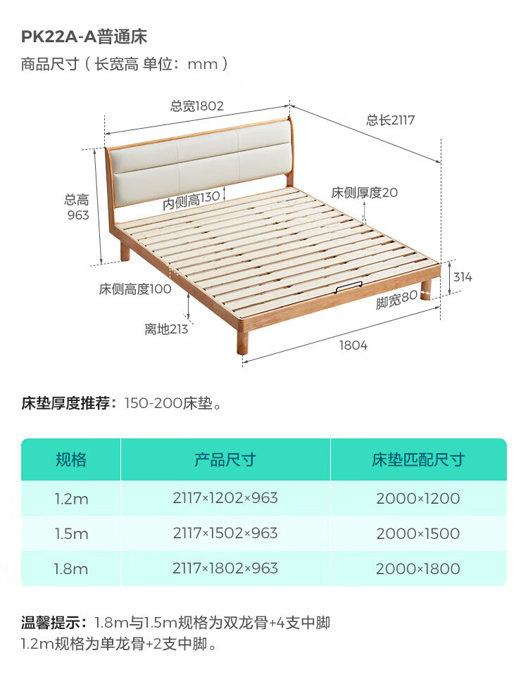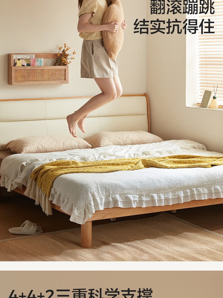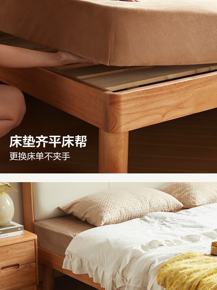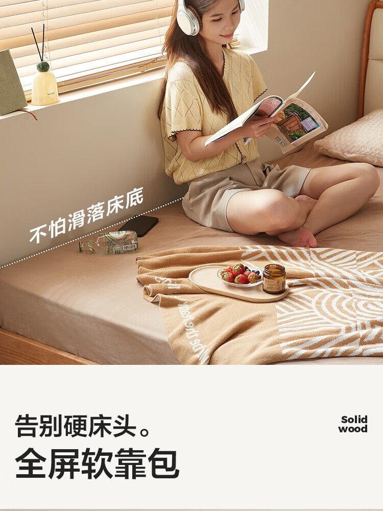 林氏家居原木风实木软包齐边床小户型单人床1米2床架木业小满系列PK22A 生态牛皮|实木床 1200mm*2000mm