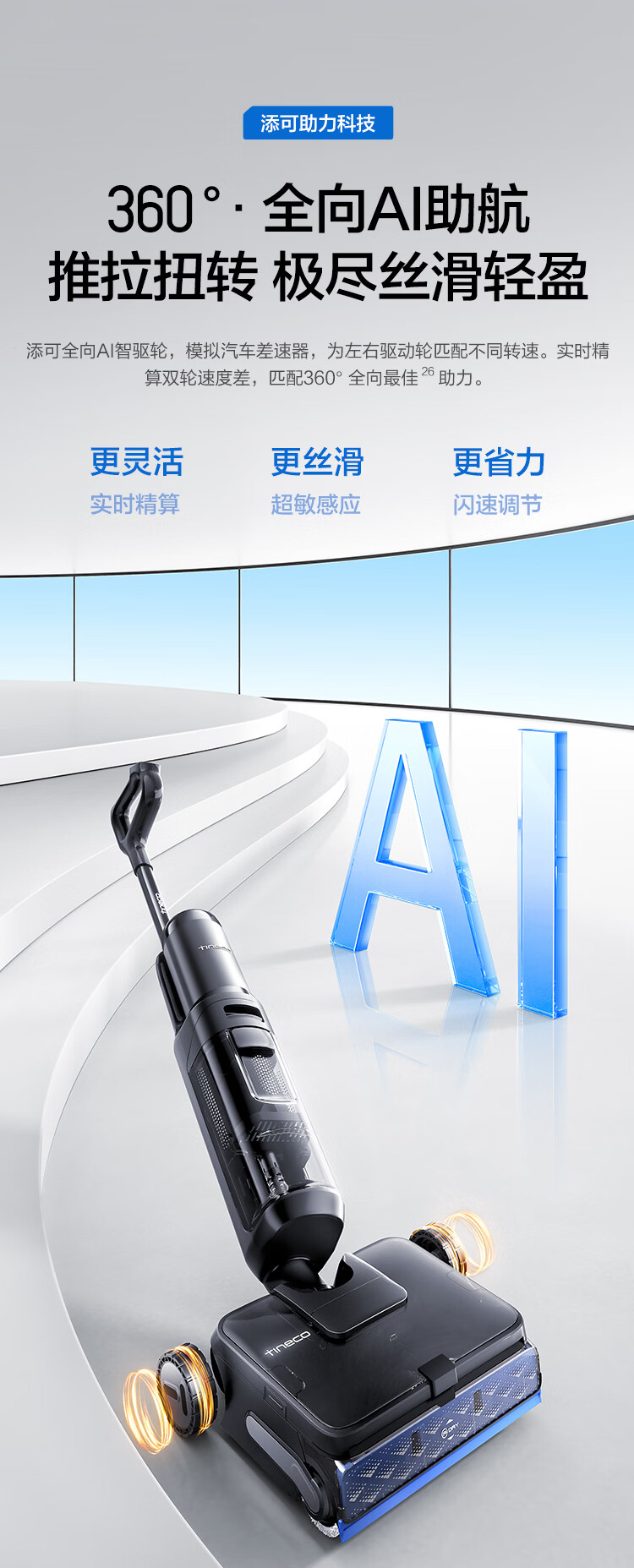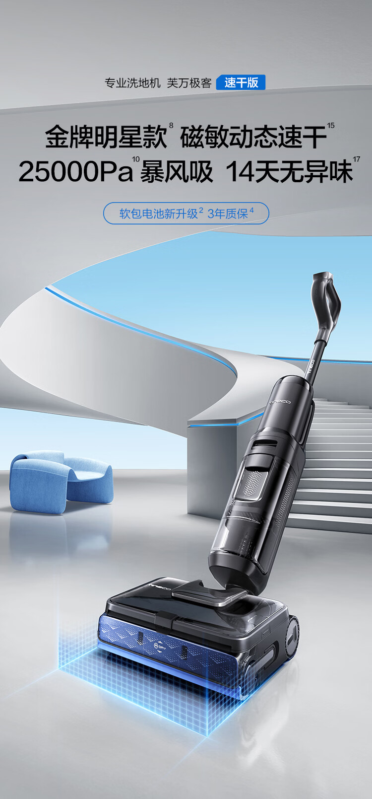 添可极客曜夜 速干版【回拉速干 25Kpa暴风吸】AI全向助力真防臭0缠毛躺平洗地机吸拖一体扫地机器人