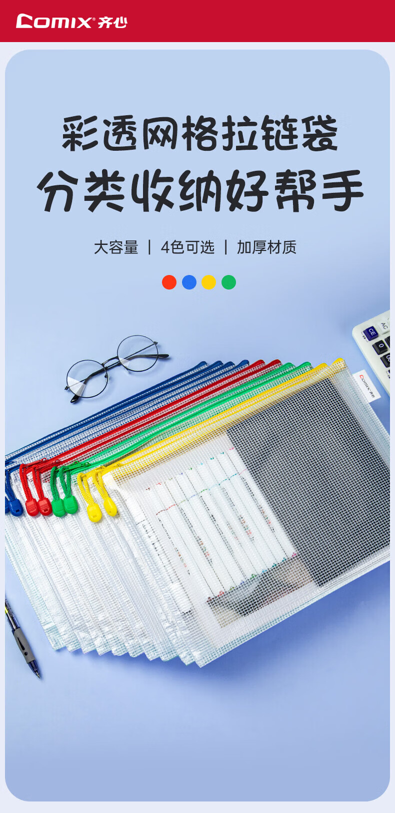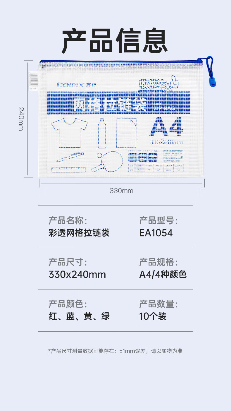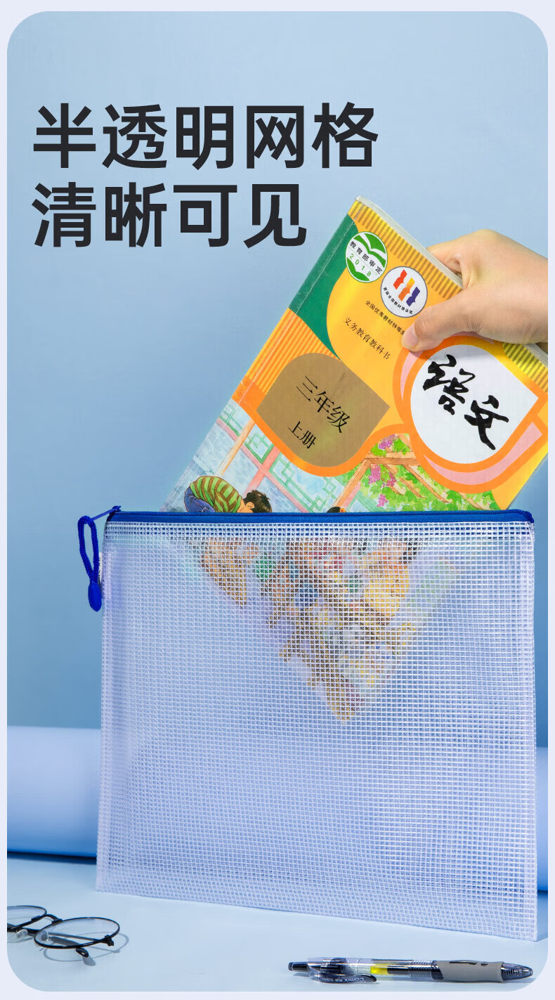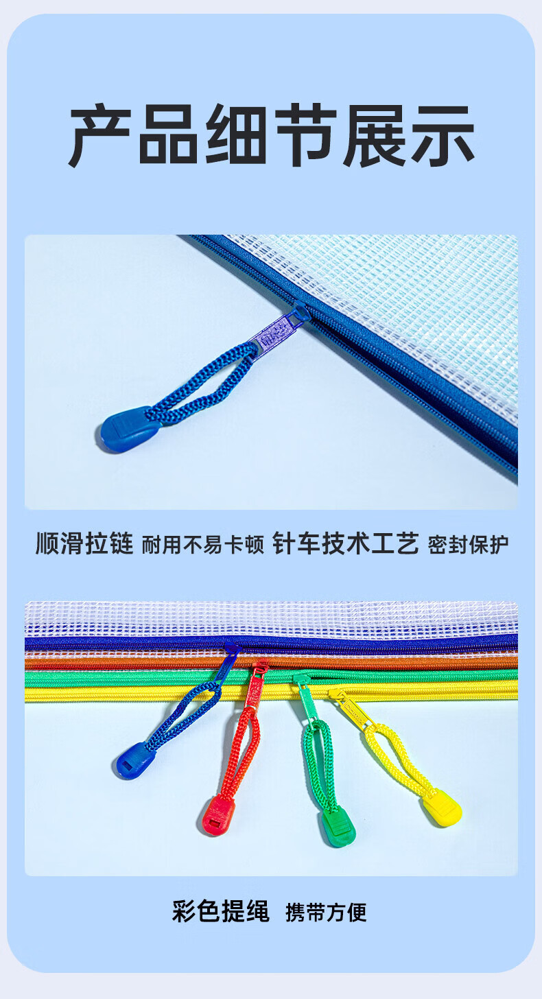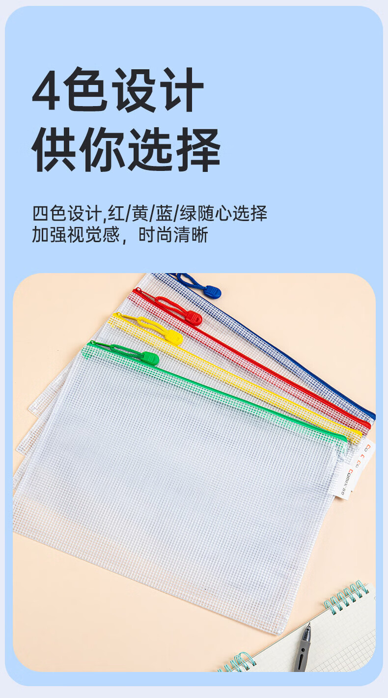 齐心(COMIX)A4学科目分类袋/科目袋/文件袋/拉链袋/作业科目收纳袋/透明拉链袋作业资料考试袋 语数英综作 【热卖经典】加厚材质 A4-10只装 EA1054