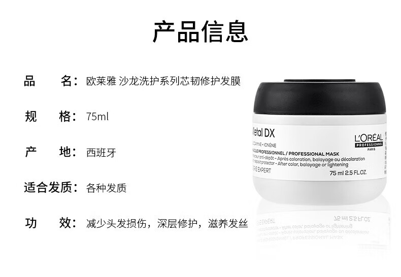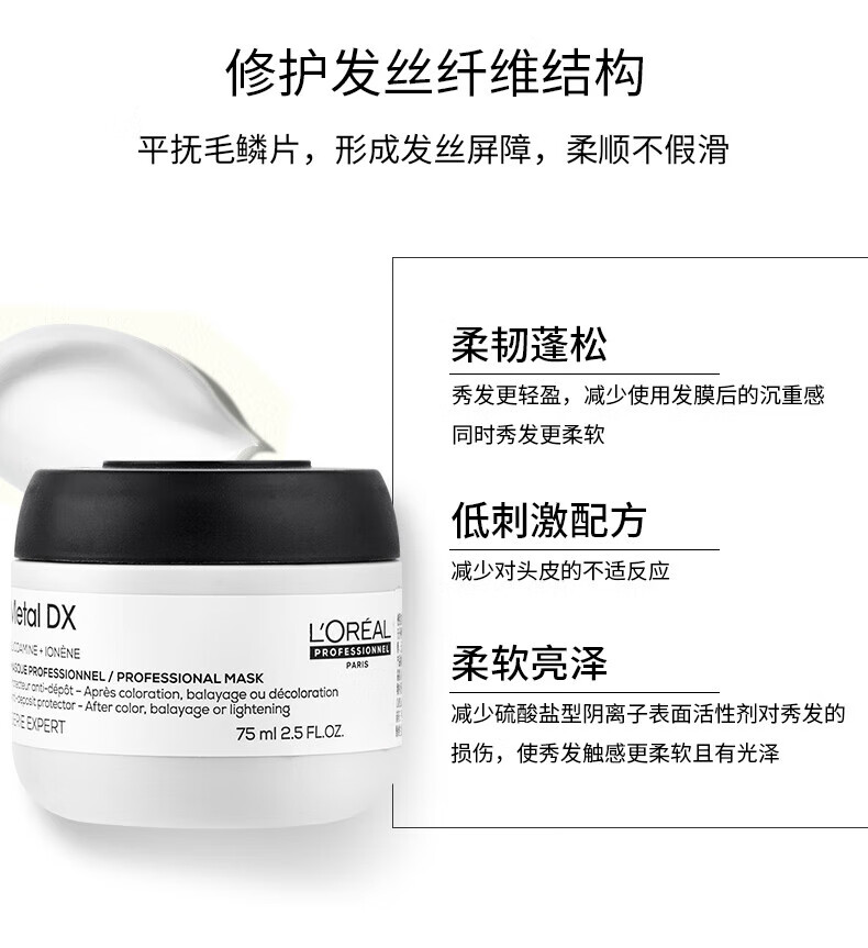 欧莱雅PRO芯韧修护发膜75ml 瞬顺发膜烫染修护吸金【临期清仓】