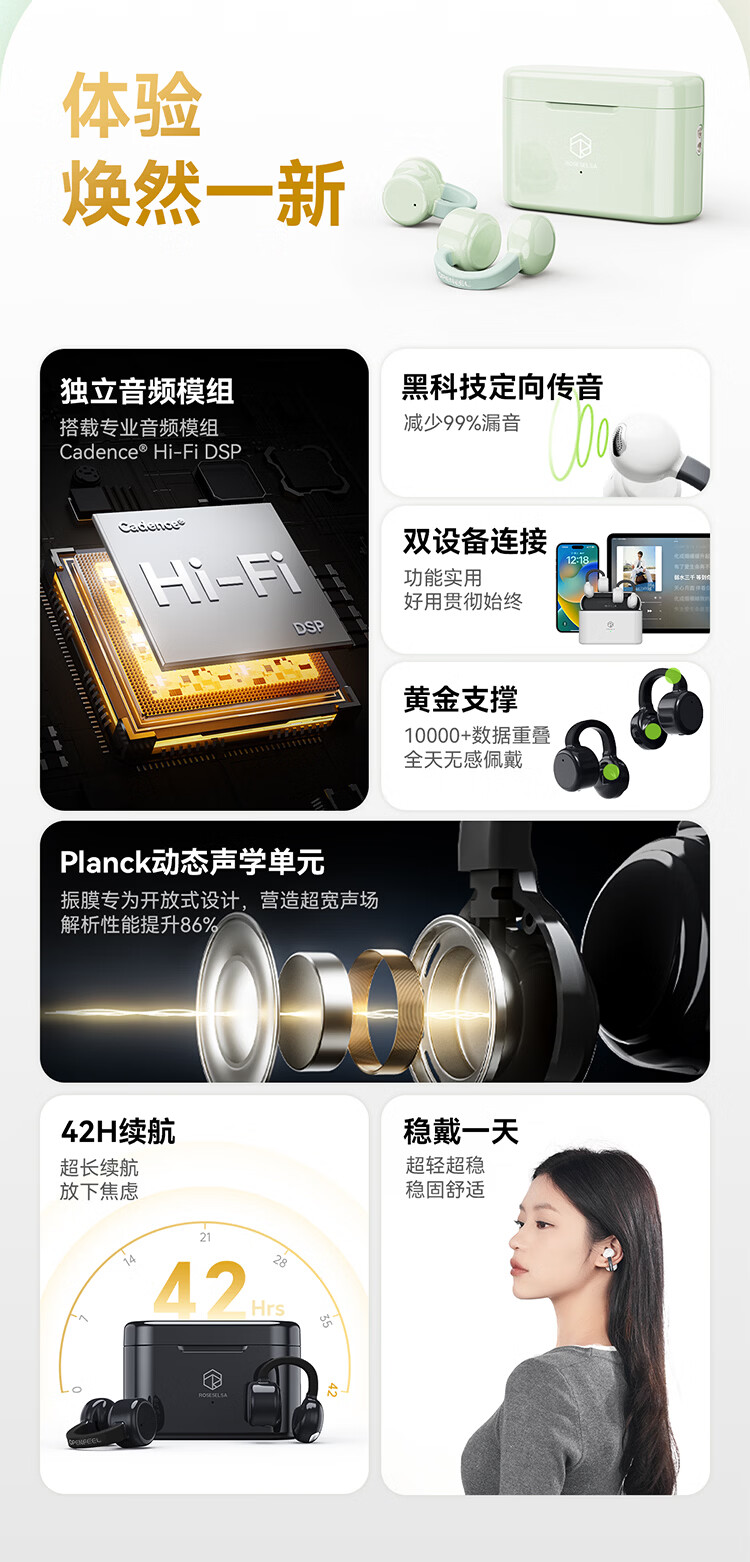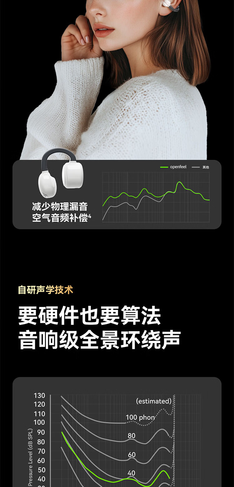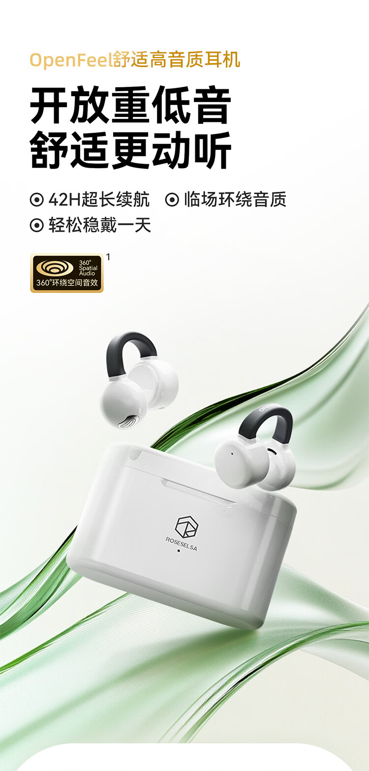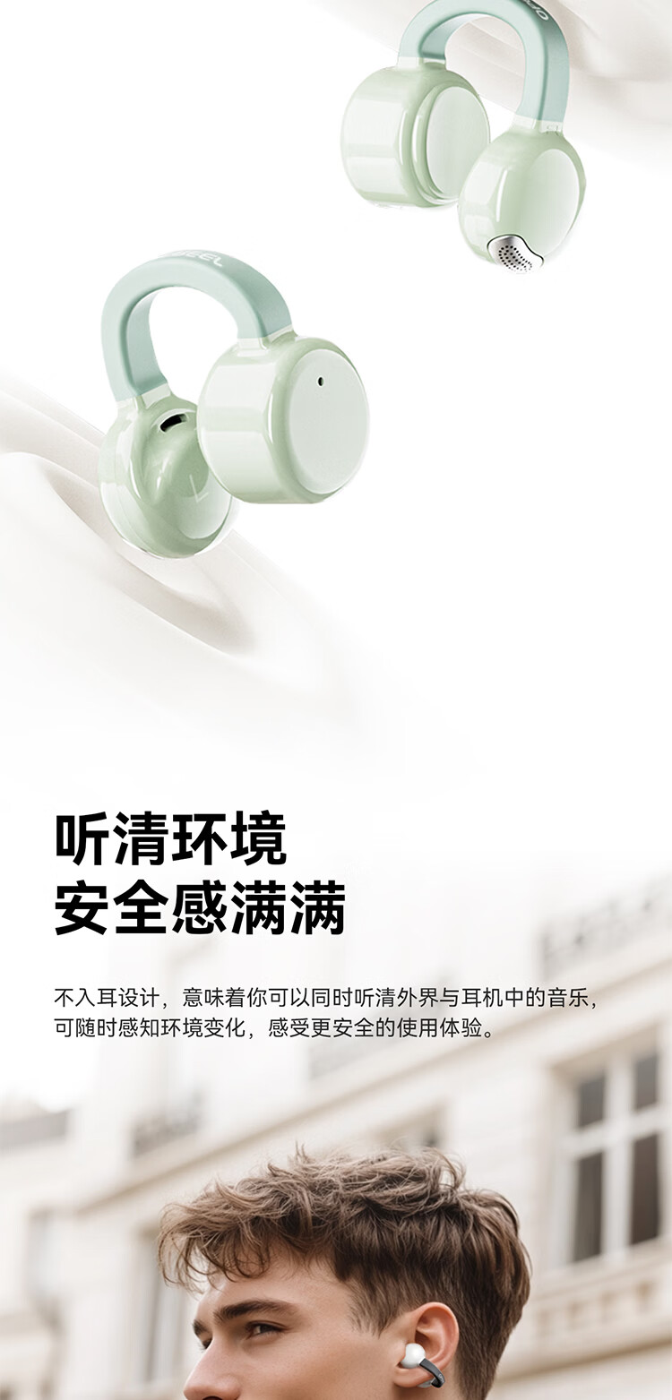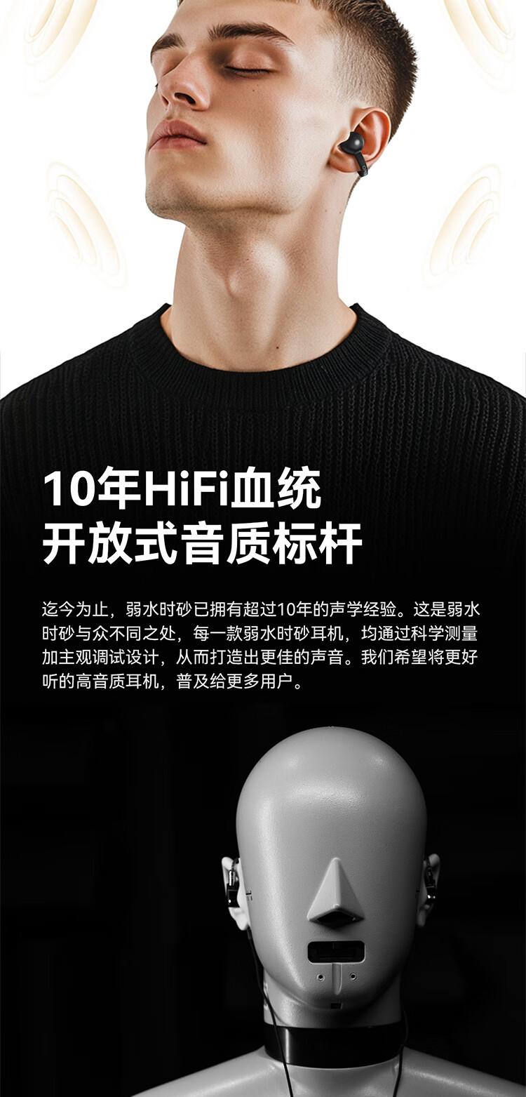 弱水时砂OpenFeel【2025新款】蓝牙耳机耳夹式 气骨传导概念不入耳真无线HIFi 通话降噪挂耳运动跑步开放式
