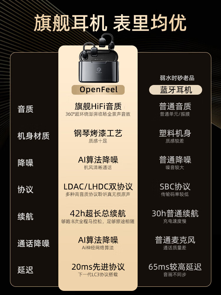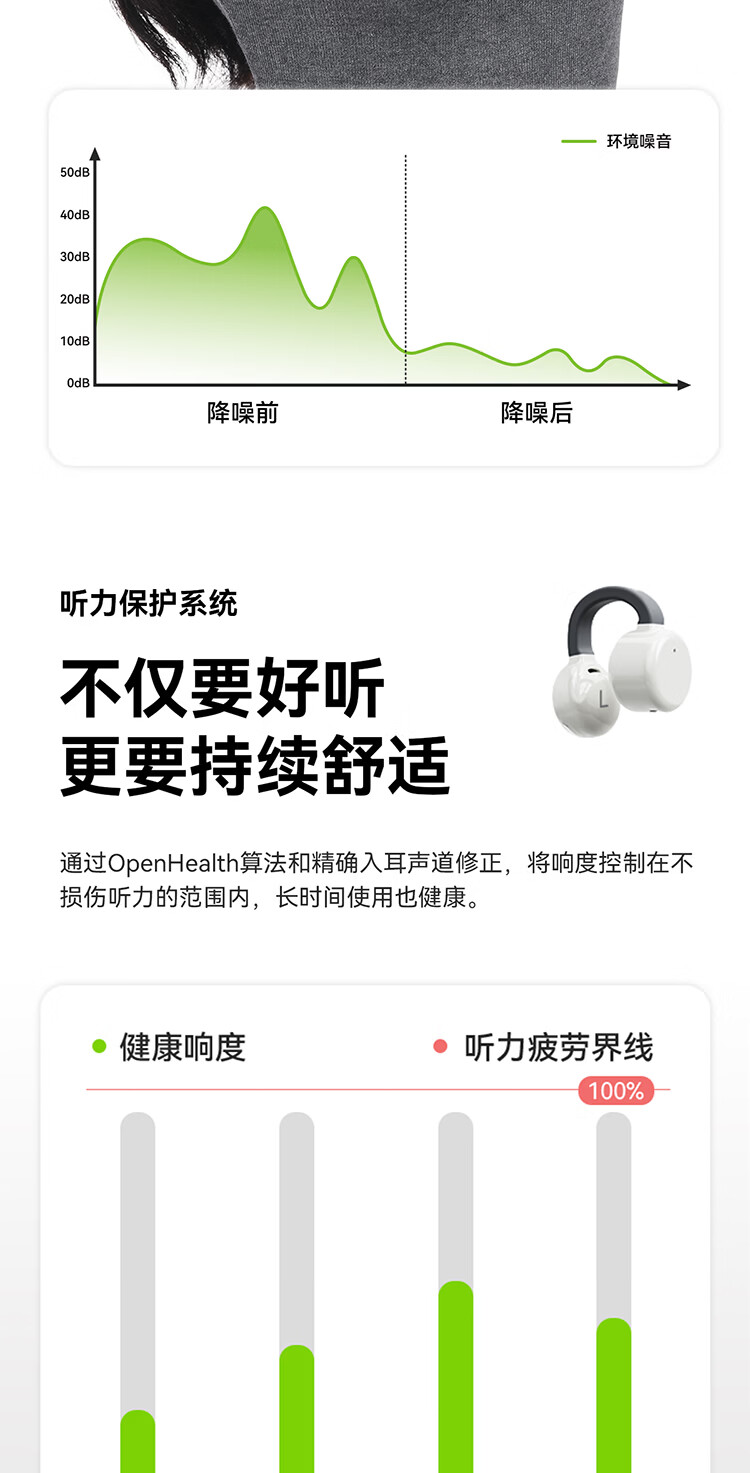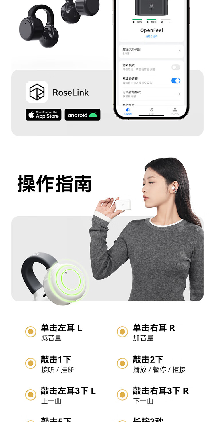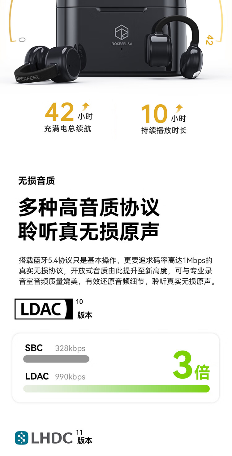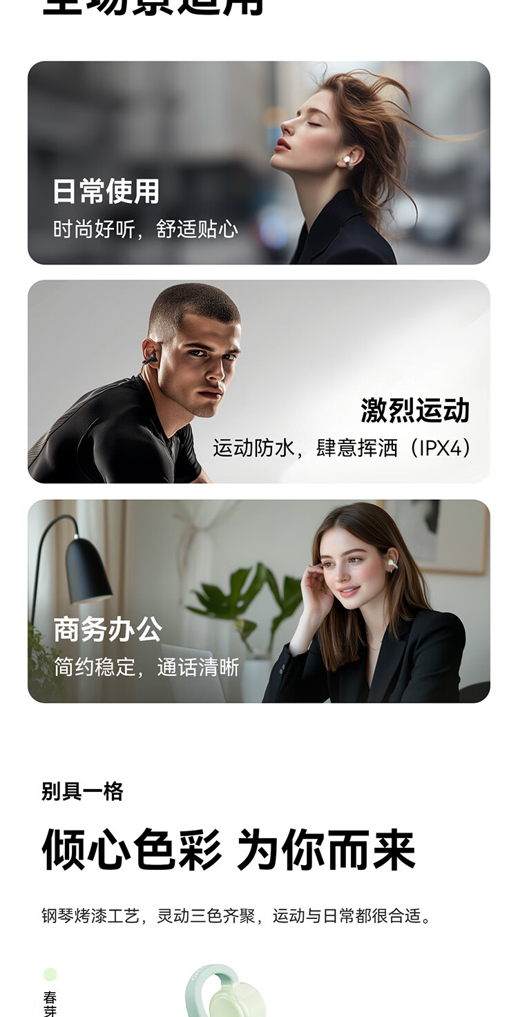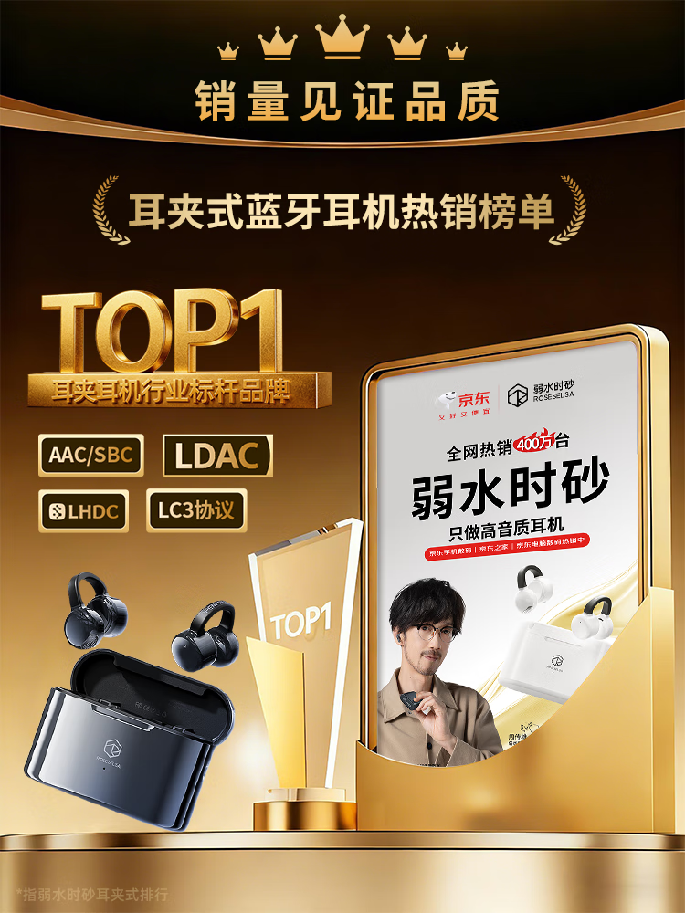 弱水时砂OpenFeel【2025新款】蓝牙耳机耳夹式 气骨传导概念不入耳真无线HIFi 通话降噪挂耳运动跑步开放式