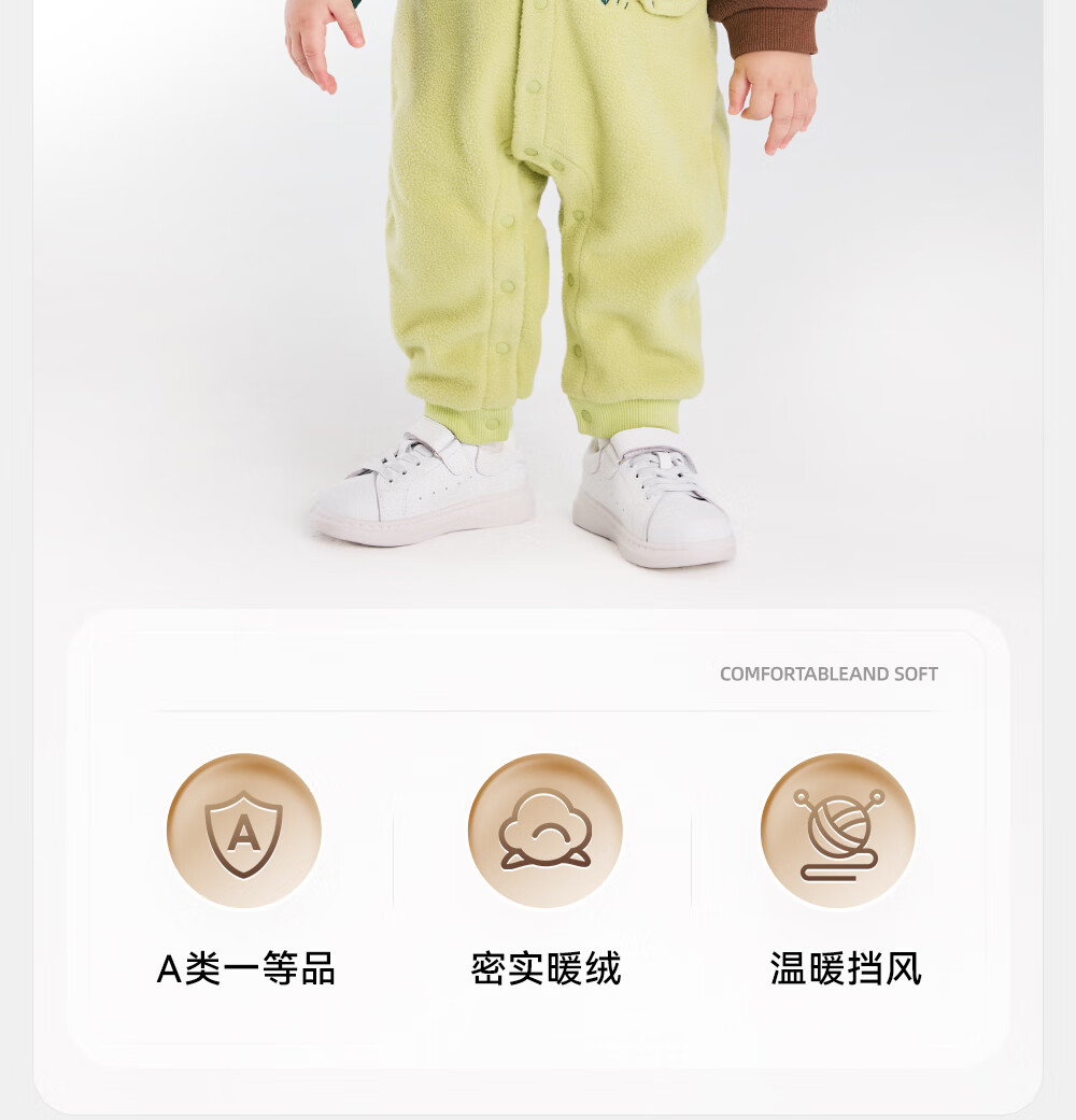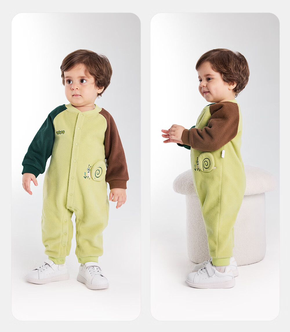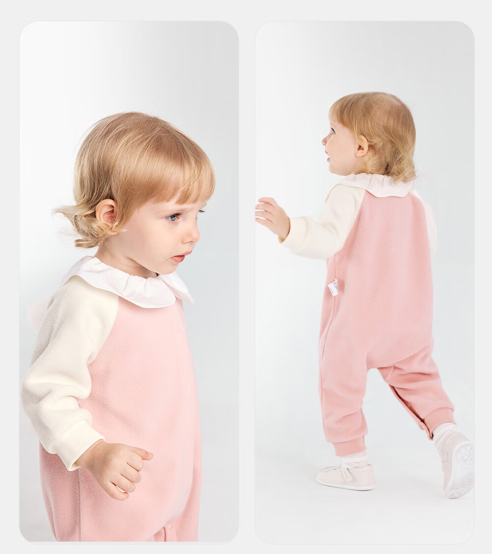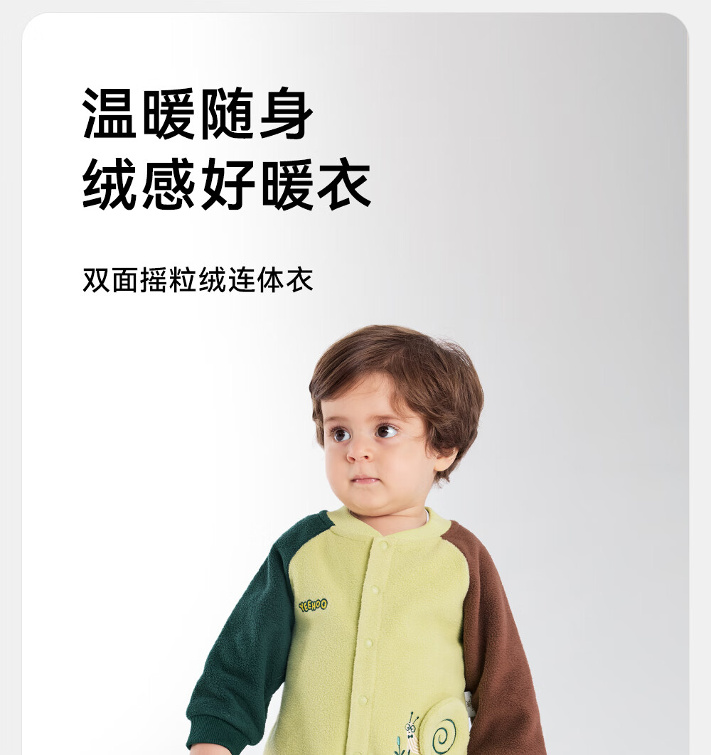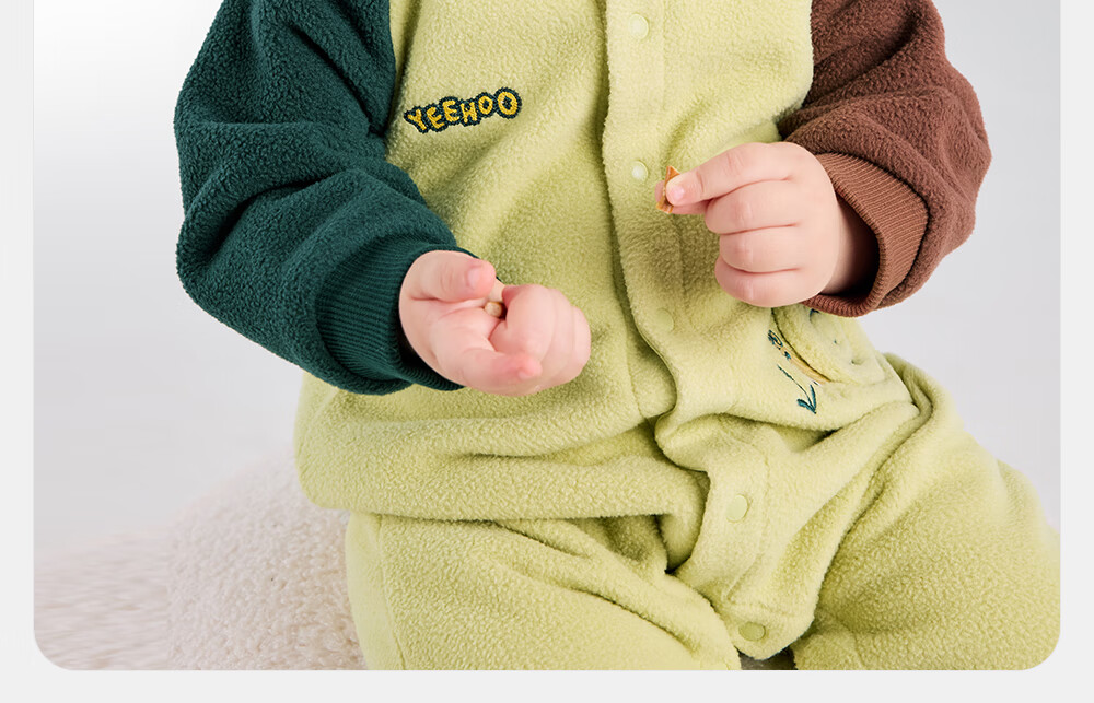 英氏婴儿连体衣秋冬长袖摇粒绒保暖男童女童衣服