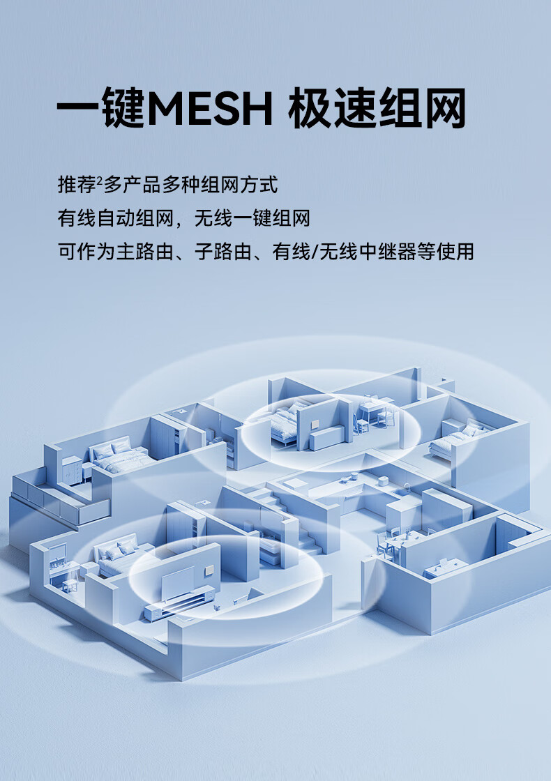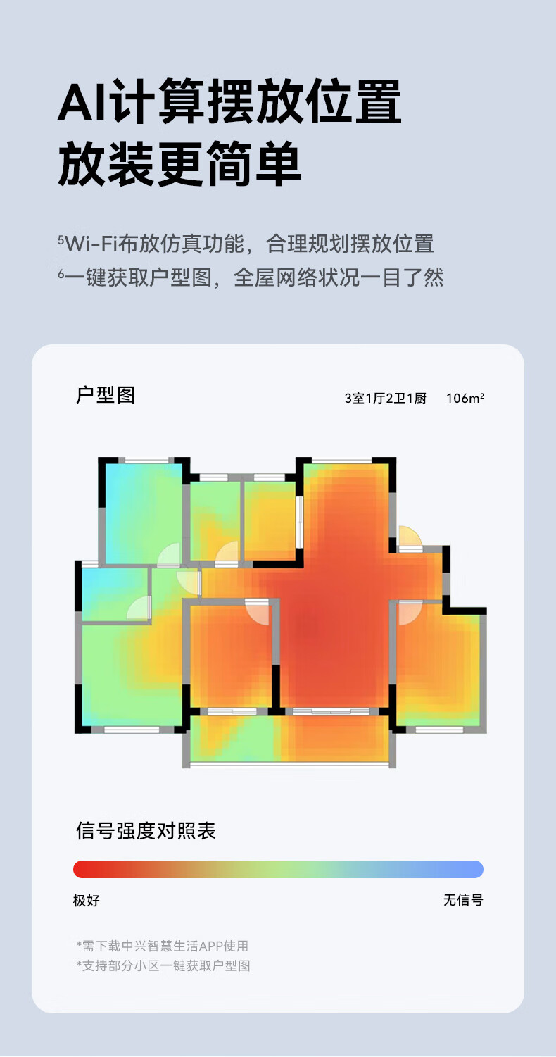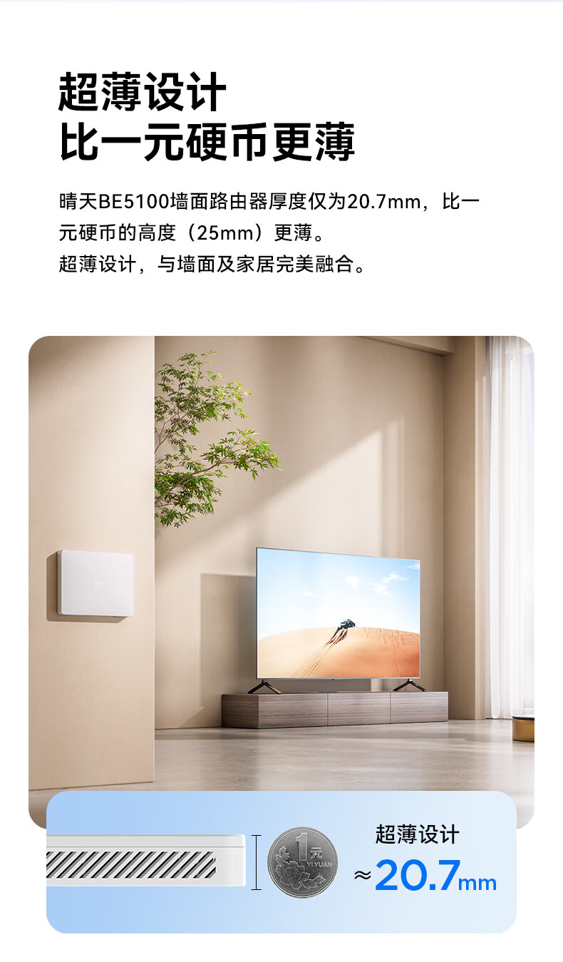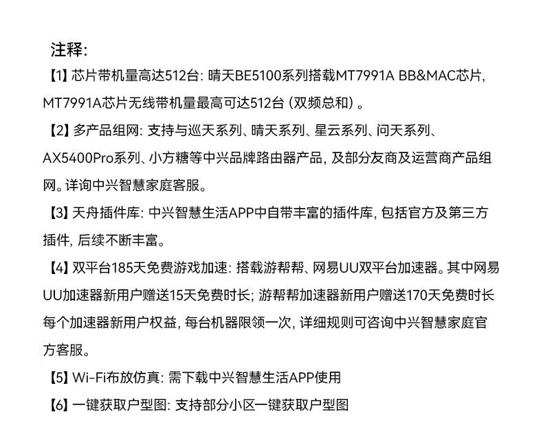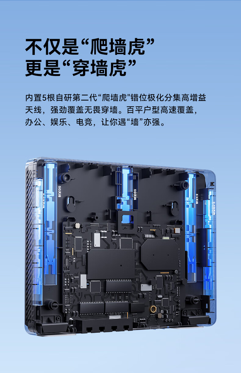 中兴(ZTE)【晴天墙面路由器】BE5100 自研芯WiFi7 千兆双频 全屋组网 5颗信号放大器兼容WiFi6游戏加速