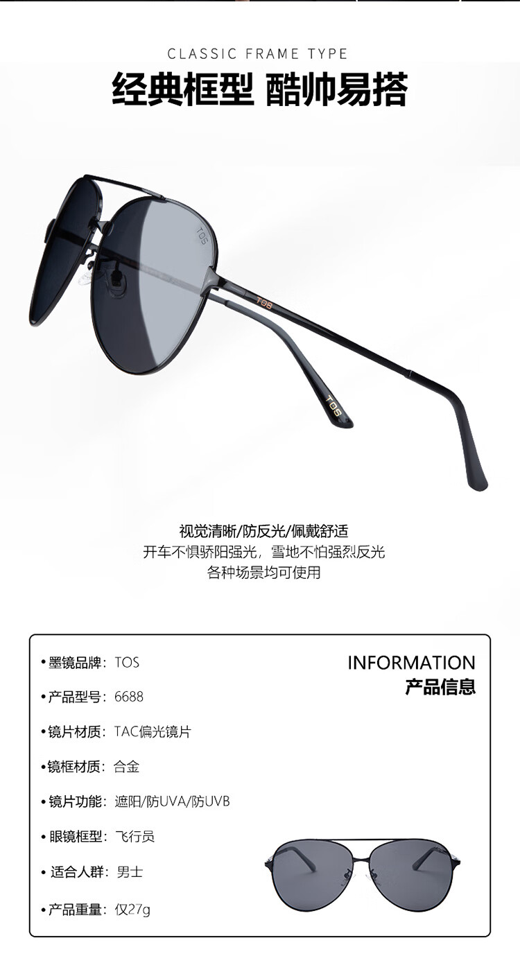 TOS蛤蟆镜男款飞行员太阳眼镜复古墨镜偏光开车专用防紫外线